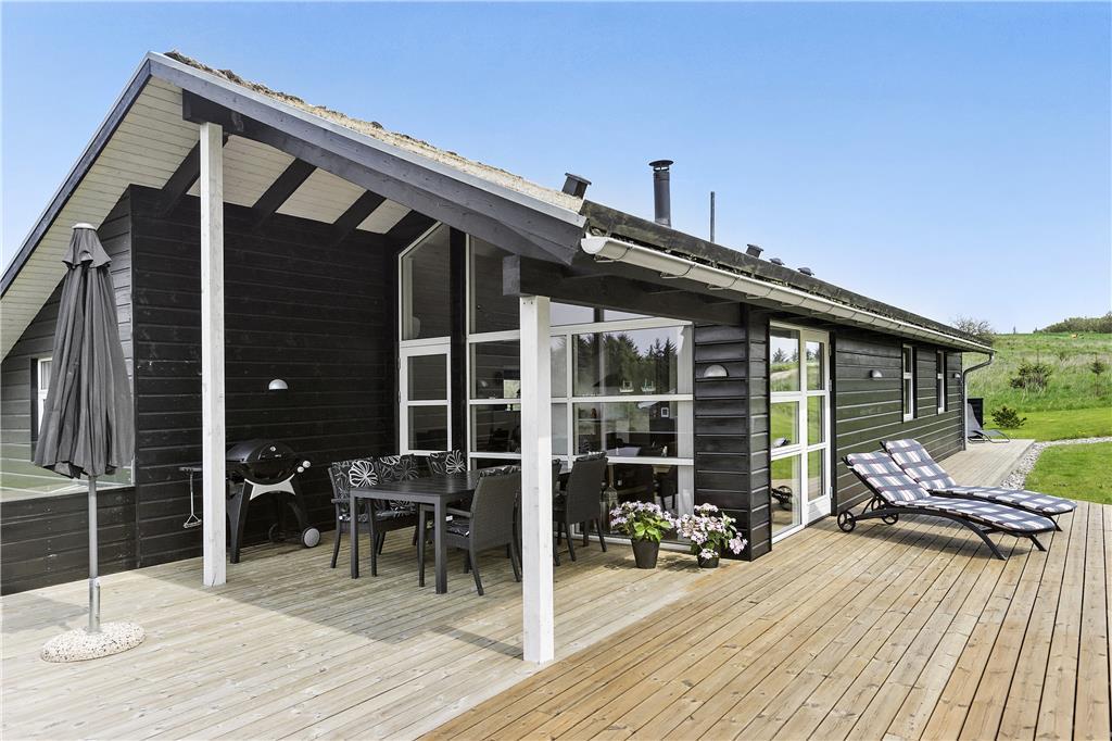 Udenfor kan I virkelig komme tættere på naturen. Den store terrasse indbyder til solrige stunder, hvor I kan nyde det udendørs liv. Her er der rig mulighed for både afslapning og aktivitet, og med den store naturgrund er der masser af plads til leg. Om aftenen kan I tænde op i grillen og samles om et festmåltid under åben himmel, mens børnene leger på græsset eller udforsker den smukke natur, der omgiver sommerhuset. Området er perfekt til en ferie, hvor både afslapning og aktivitet kan være en del af hverdagen.