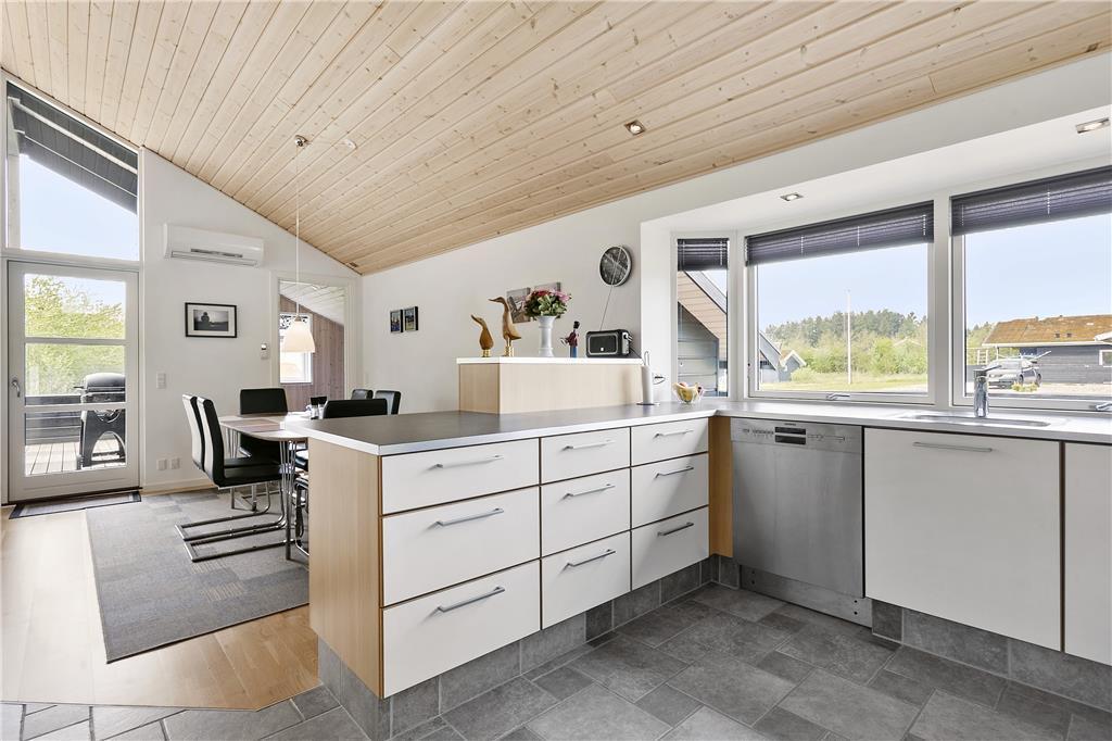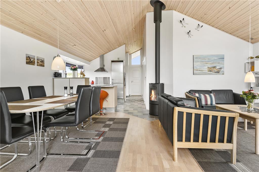 Når I træder indenfor i sommerhuset, bliver I mødt af en varm og indbydende atmosfære, der gør det nemt at føle sig hjemme. Den hyggelige stue med brændeovn indbyder til lange, afslappede aftener med en god bog eller film foran flammerne. Stuen er både rummelig og komfortabel, og her kan hele familien samles til hygge og spil. Køkkenet er funktionelt og giver mulighed for at tilberede alt fra små snacks til festmåltider. Der er masser af plads til, at alle kan være sammen uden at føle sig trangt, og den varme stemning i huset giver jer et perfekt udgangspunkt for en dejlig ferie.