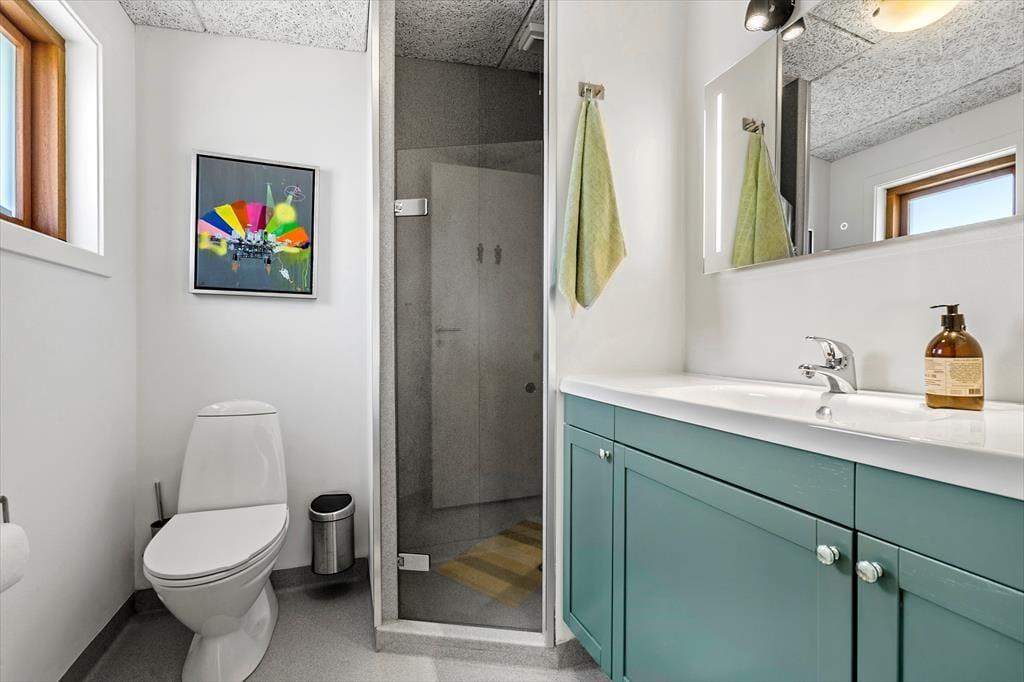 Når du træder ud på den store terrasse, bliver du mødt af naturens skønhed og ro. Den ugenerede terrasse med udendørs bruser er ideel til at slappe af i solen eller tage en forfriskende bruser efter en dag i naturen. Her kan du sidde og lytte til fuglene kvidre, mens du nyder den friske luft og den smukke udsigt over den naturskønne grund. Når aftenen falder på, er det oplagt at tænde op i grillen og tilberede et måltid, mens du ser solen gå ned. Terrassen er et fantastisk sted at tilbringe tid sammen, og den ugenerede beliggenhed sikrer, at du kan slappe af uden forstyrrelser.