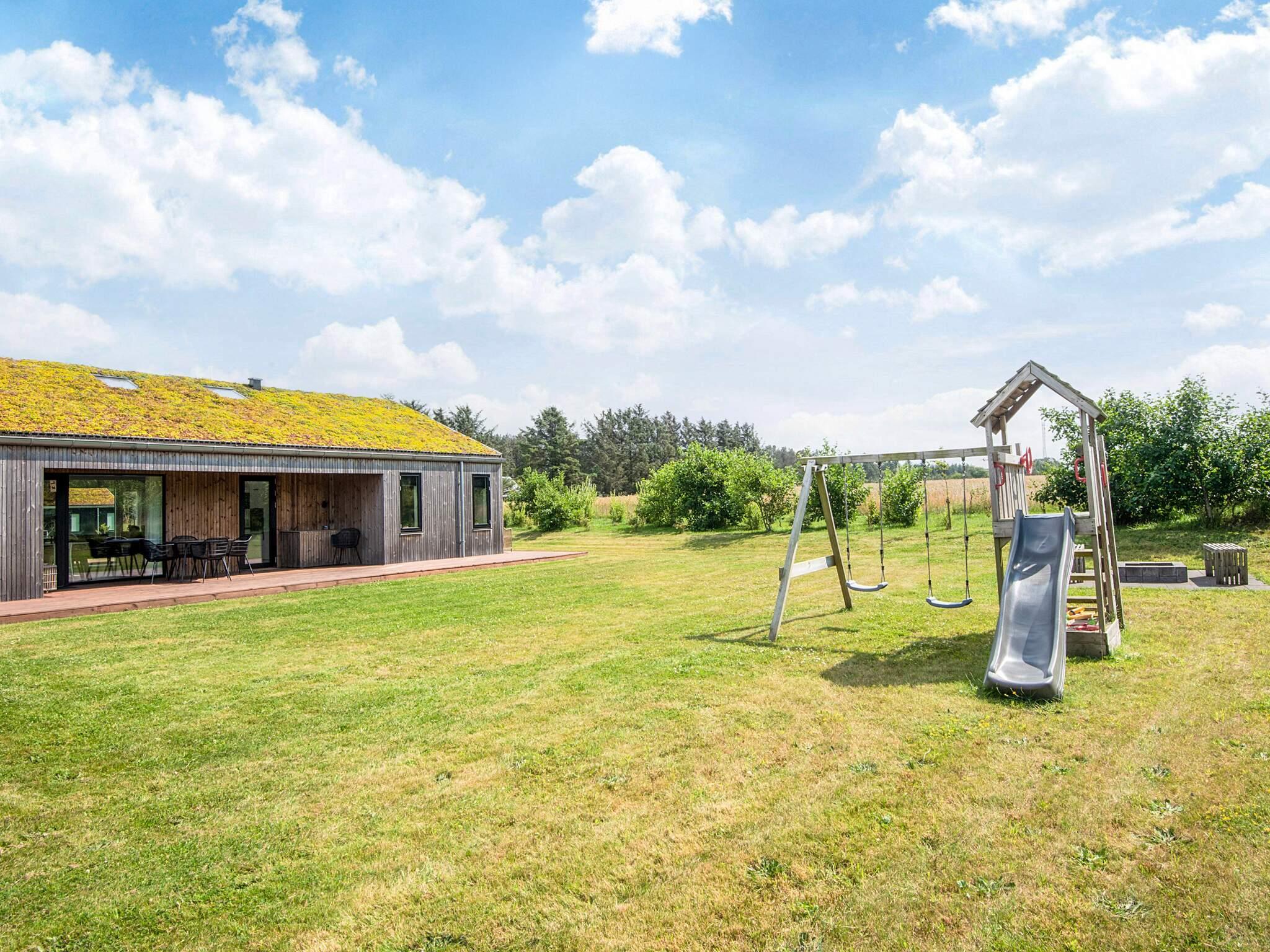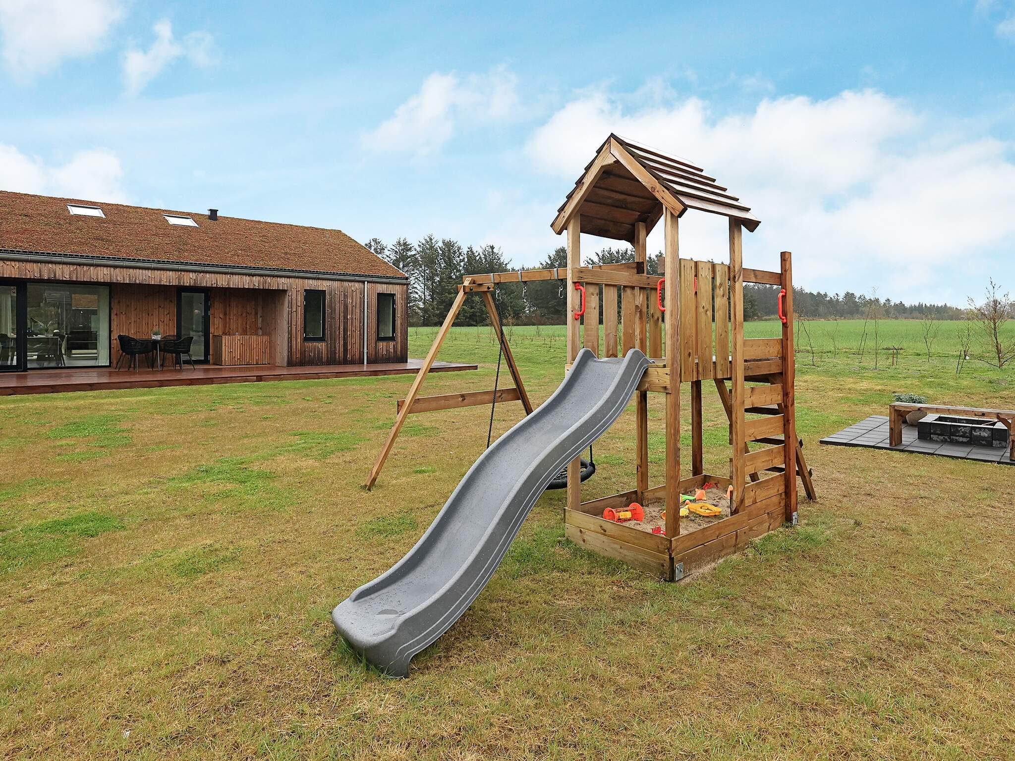 Udendørsgrunden byder på en stor græsplæne til boldspil og leg, med klatretårn, gynge og sandkasse placeret i den ene ende af grunden. Ejendommen er fuldt isoleret, tillader brug året rundt, og giver masser af plads til, at alle kan nyde både indendørs og udendørs aktiviteter. Med sine fremragende faciliteter og nærhed til stranden kombinerer dette feriehus komfort, sjov og afslapning til et mindeværdigt familieophold.
