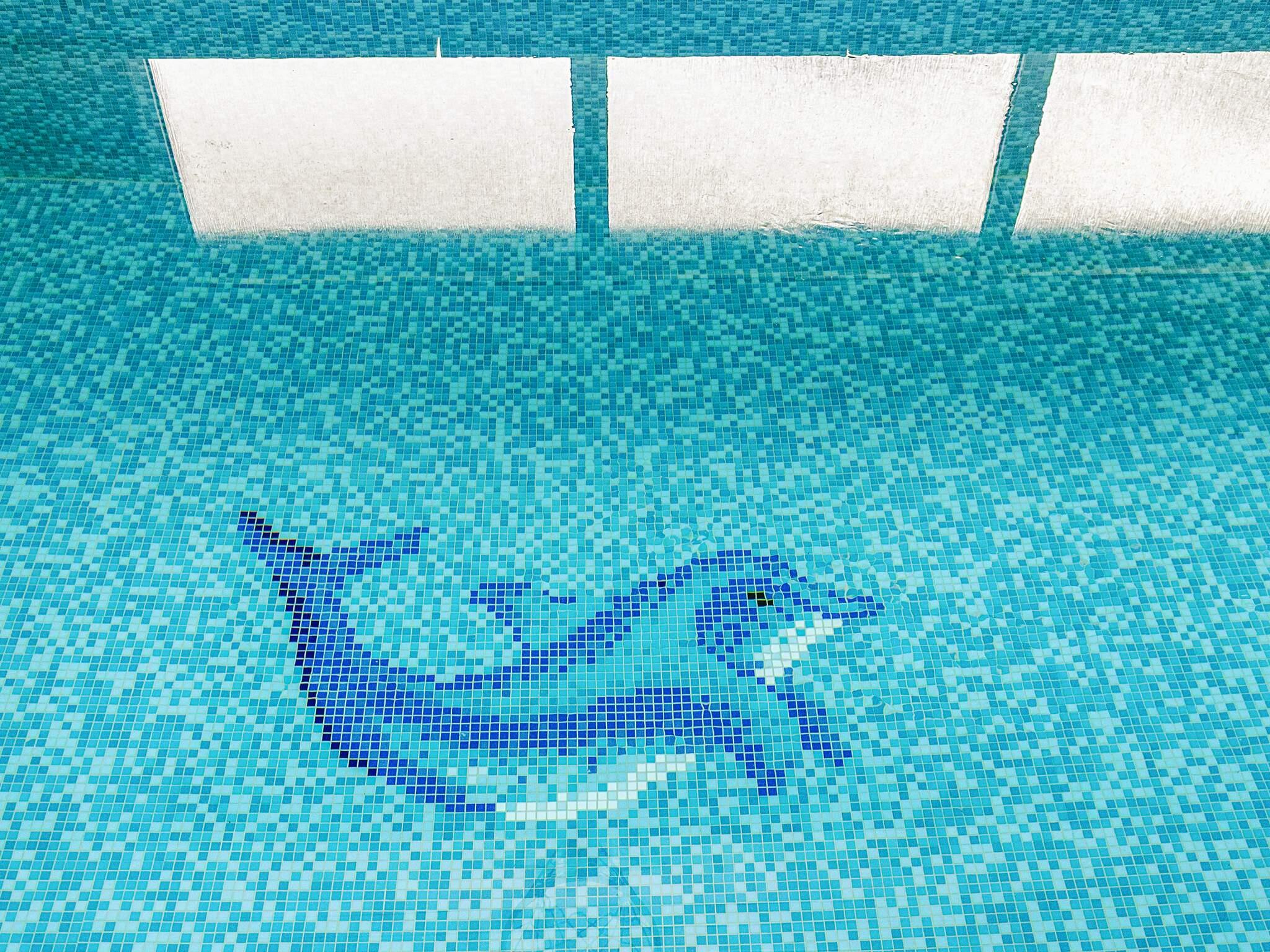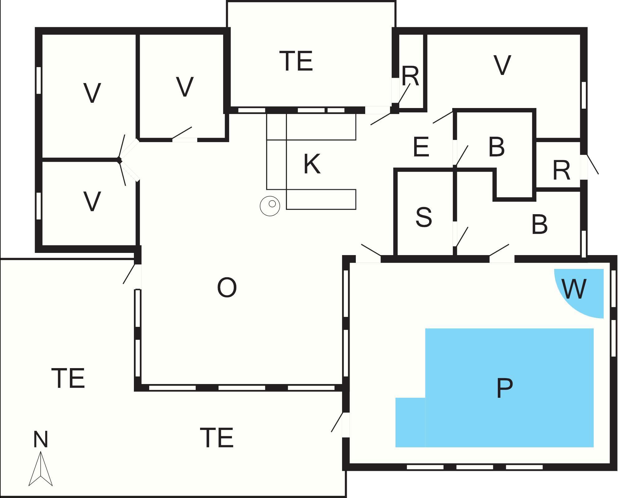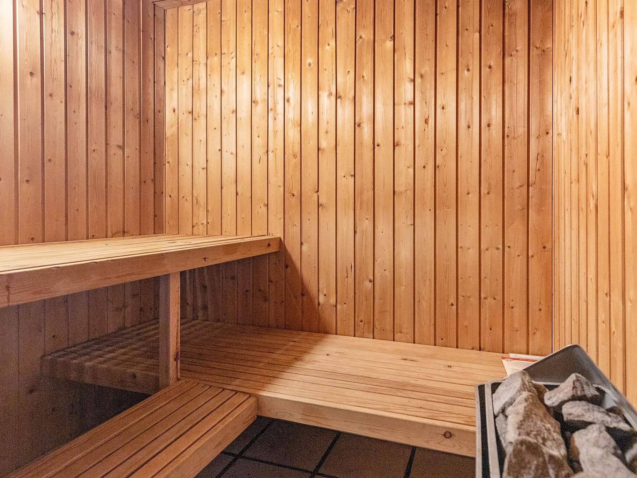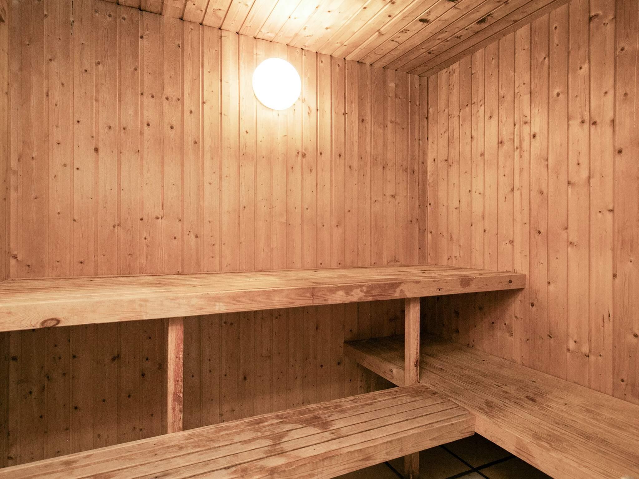 I poolafdelingen er der klinkegulv og stor swimmingpool på ca. 18 m2 med vandrutsjebane. Bemærk poolen opvarmes med varmepumpe. Endvidere er der 2-personers spabad og sauna til 6 personer.