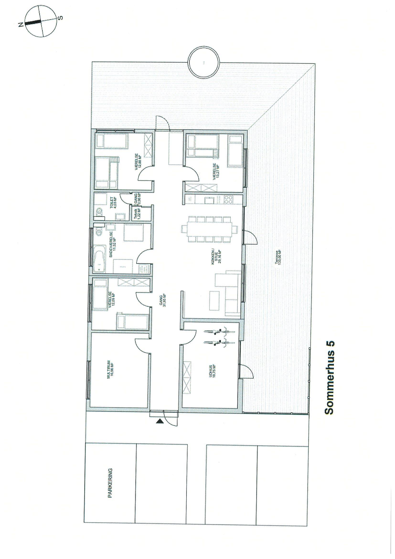 3 Soveværelser: (1DS+2K)+(4K)+(4K)