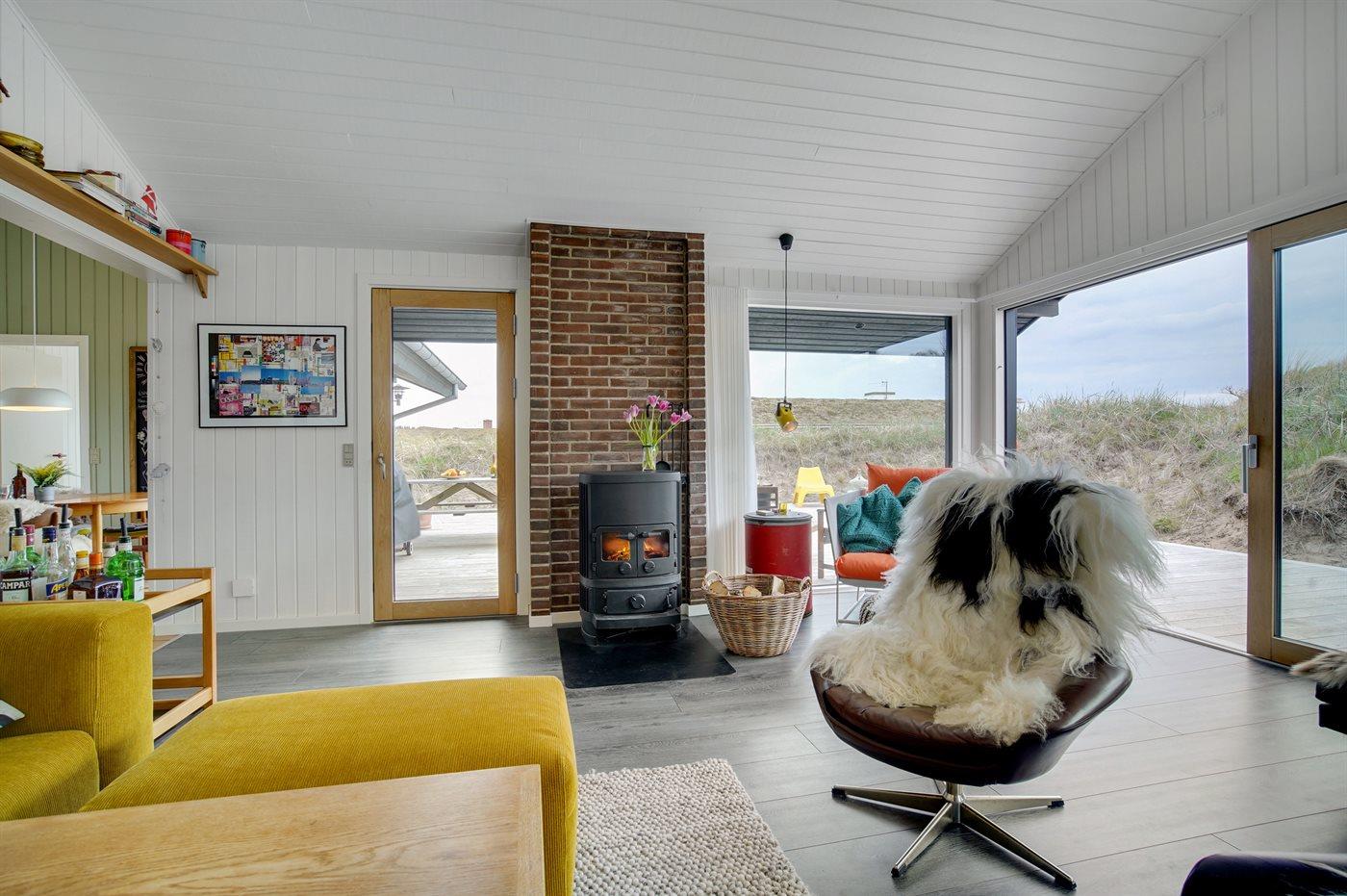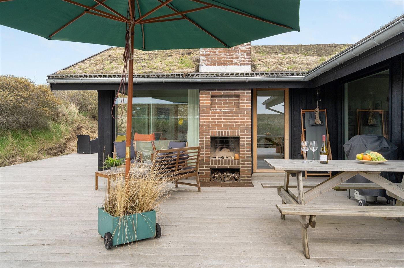 Ferieboligen er beliggende på en 6000 m² stor klitgrund. Der er 140 m til havet. Nærmeste forretning er beliggende i en afstand af 1900 m. Til ferieboligen hører åbent terrasseareal. Udendørs bruser. På lune aftener sørger en udendørs pejs for hyggelig stemning. Grill til rådighed. Parkering ved ferieboligen.