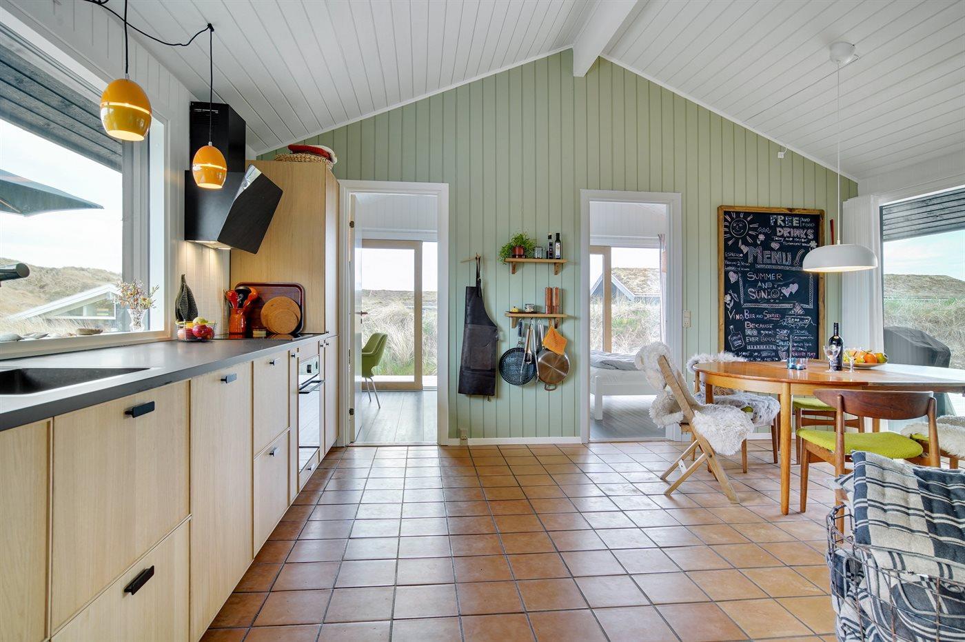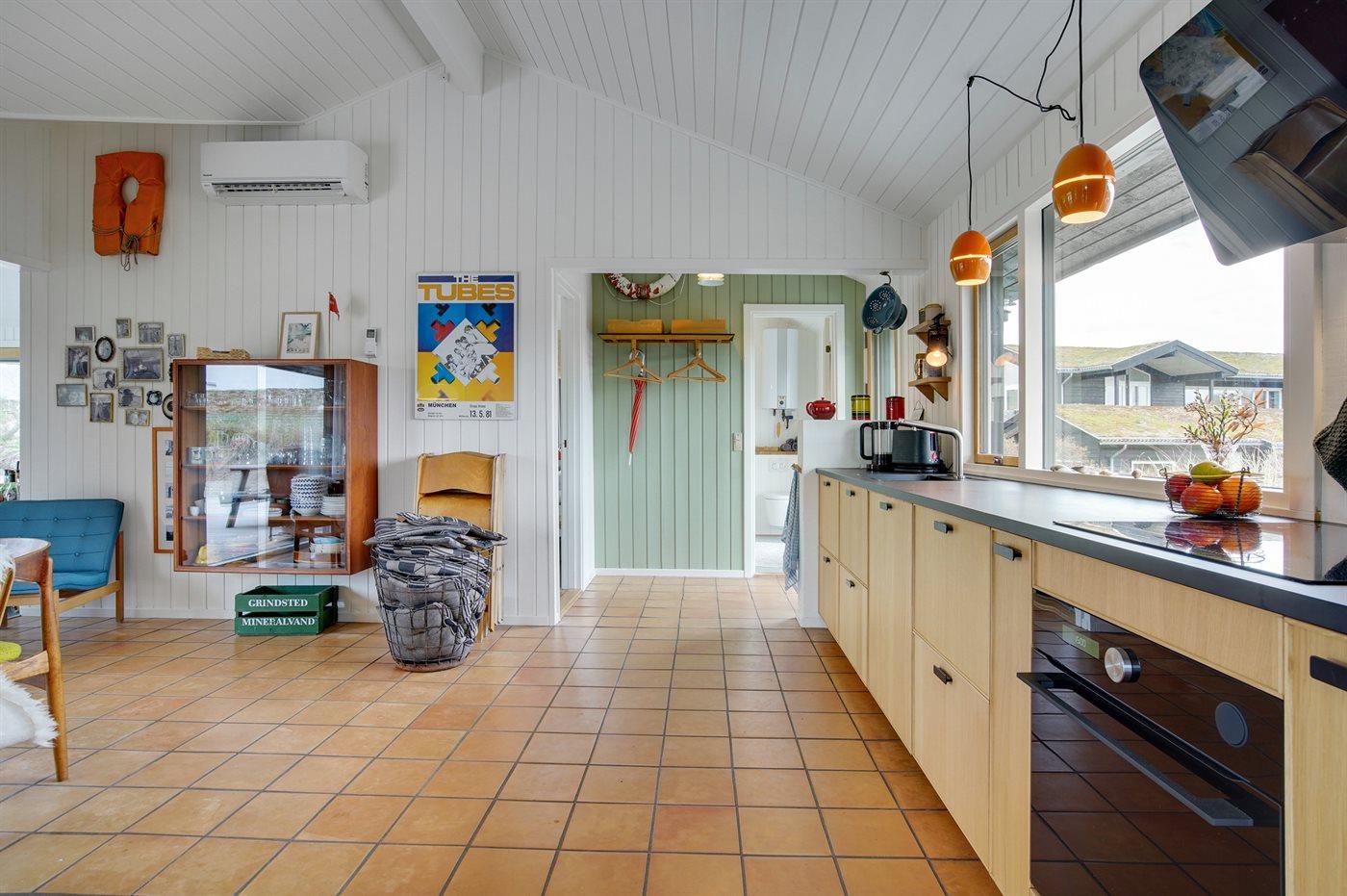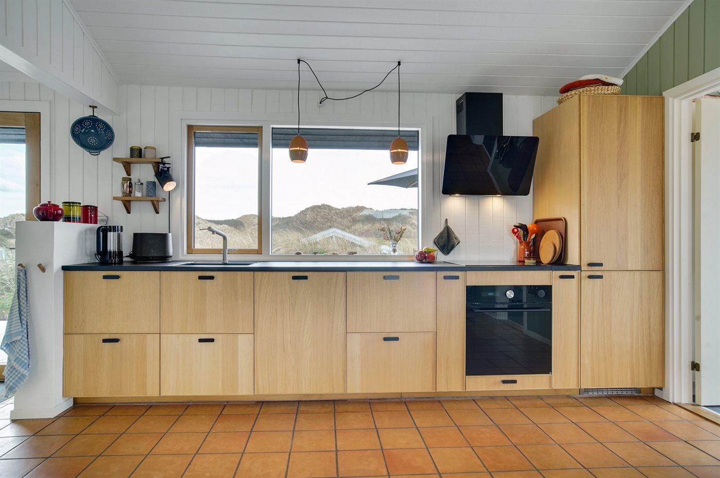 Køkkenet er udstyret med 1 køleskab. Der er 4 induktionskogeplader, varmluftovn samt opvaskemaskine.