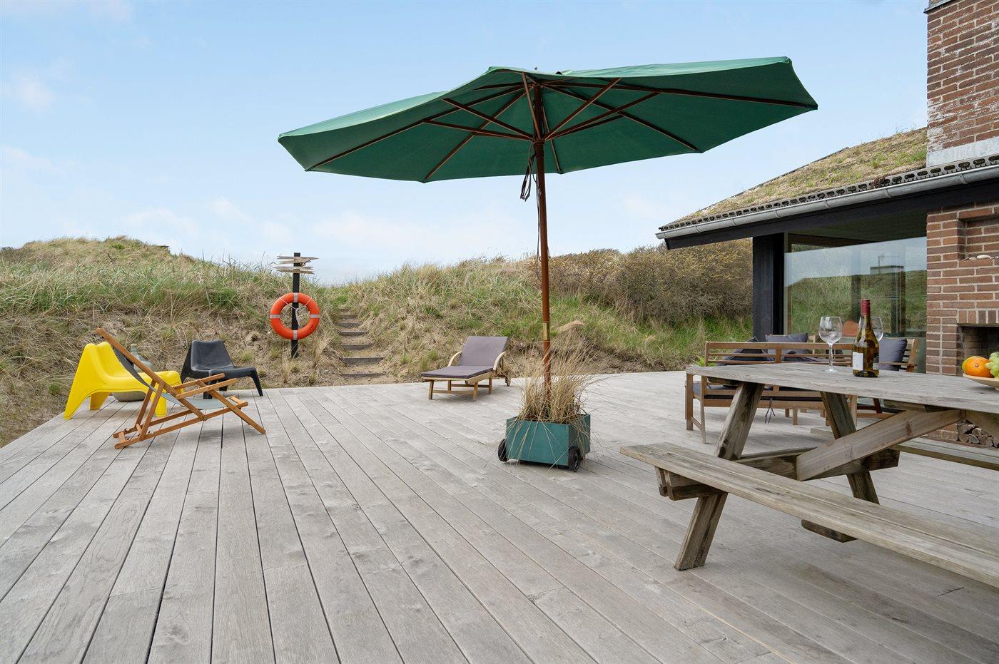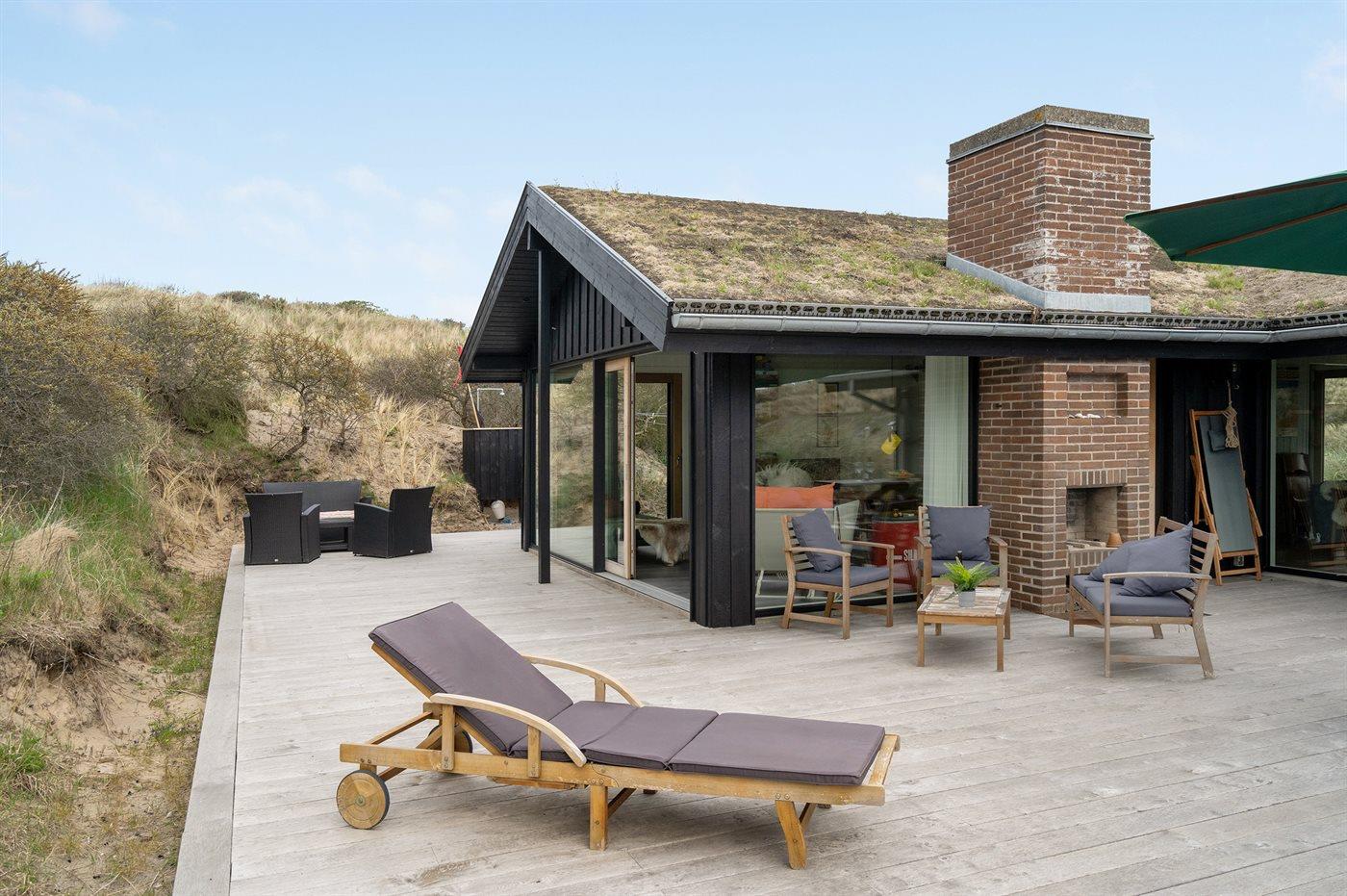 Skønt beliggende sommerhus i yderste klitrække til Vesterhavet på en meget stor kuperet grund i et pragtfuldt, naturskønt ferieområde. Fra grunden er der udsigt til havet, og på terrasserne er der gode læmuligheder.