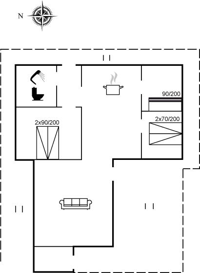 Der er i alt 3 soveværelser. Sovepladserne fordeler sig på: 4 sovepladser i dobbeltsenge. 2 sovepladser i køjeseng. Derudover er der 1 stk. barneseng.