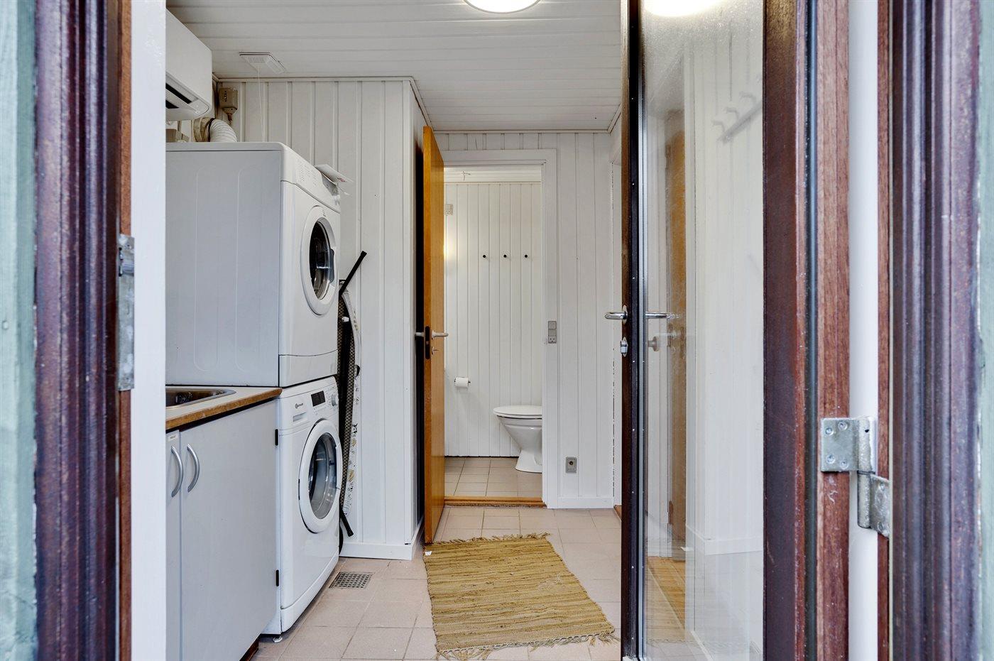 Der er 2 badeværelser med bruseniche og 2 toiletter. Der er gulvvarme på 2 badeværelser. I saunaen er der mulighed for afslapning.