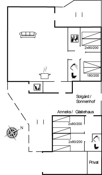 Skønt og velbeliggende sommerhus på en dejlig, kuperet grund tæt på stranden og Vesterhavet. Huset ligger for enden af lukket sidevej i et attraktivt sommerhusområde nær Blokhus med tilhørende anneks med 2 soverum med hver 2 enkeltsenge samt eget bad og toilet.