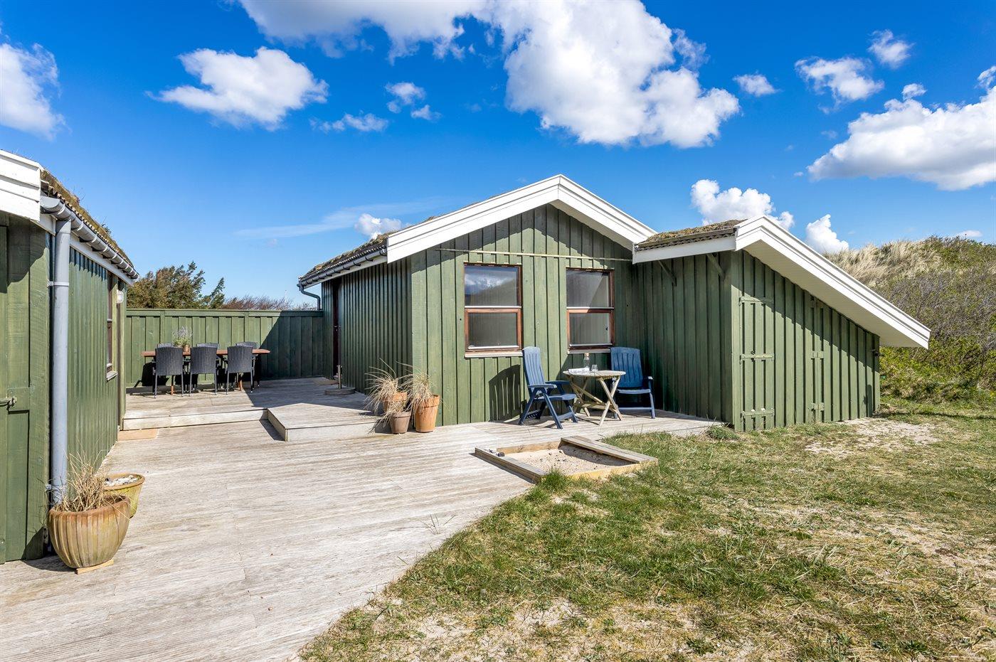 Ferieboligen er beliggende på en 1856 m² stor klitgrund. Der er 150 m til havet. Nærmeste forretning er beliggende i en afstand af 3000 m. Til ferieboligen hører 65 m² terrasseareal. Der er redskabsrum. Gynge. Sandkasse. Parkering ved ferieboligen.