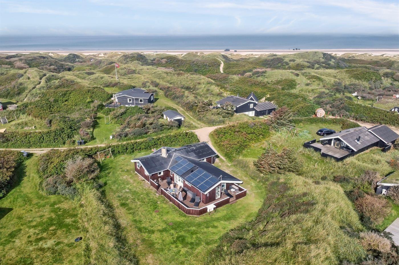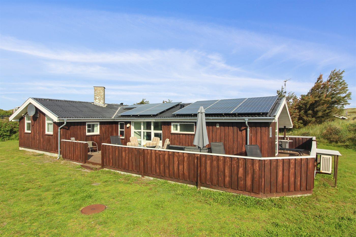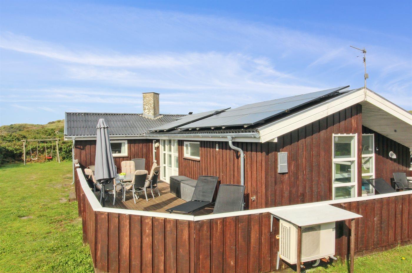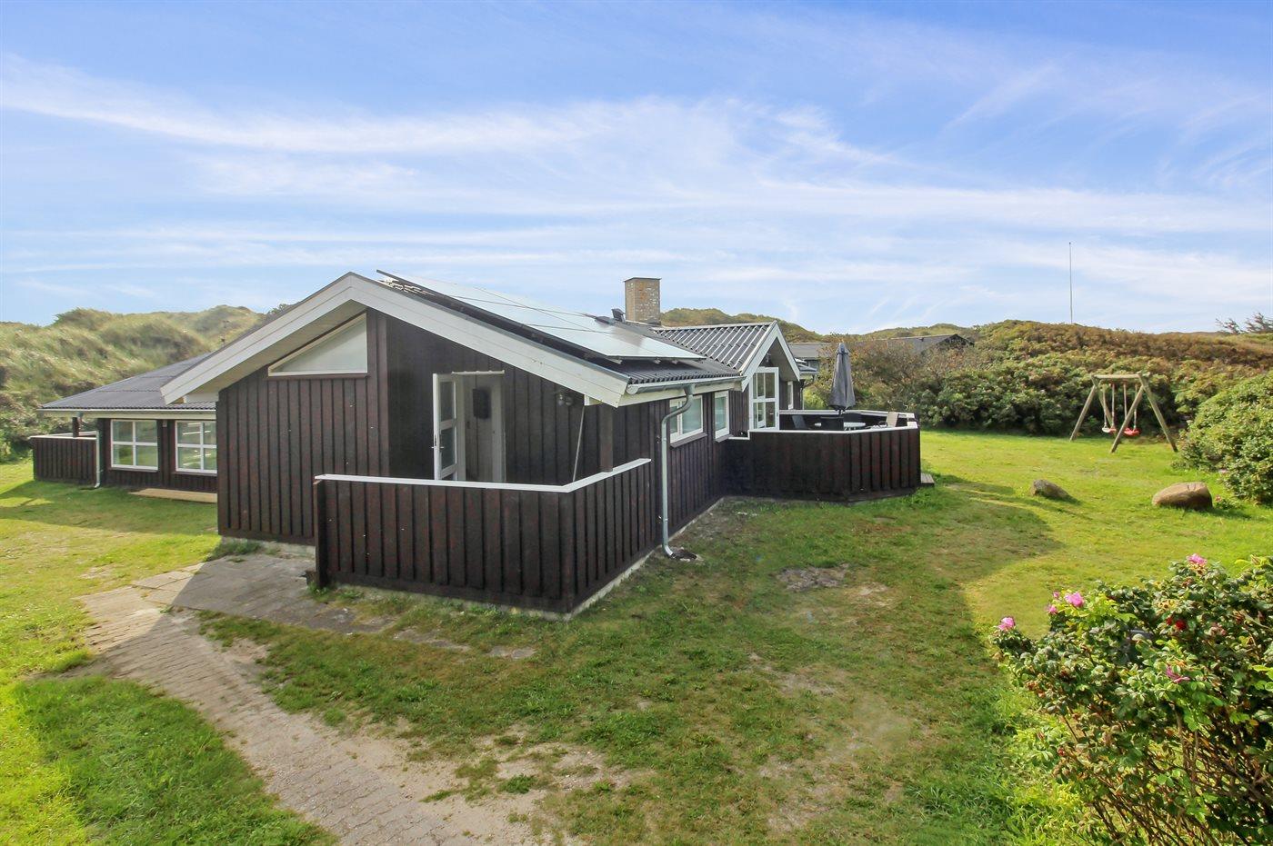 Et virkelig velbeliggende sommerhus på en stor, delvis kuperet grund, lige bag klitterne til stranden og Vesterhavet, hvor der fra grundens højeste punkt er havudsigt. Swimmingpoolen opvarmes af en energibesparende varmepumpe.