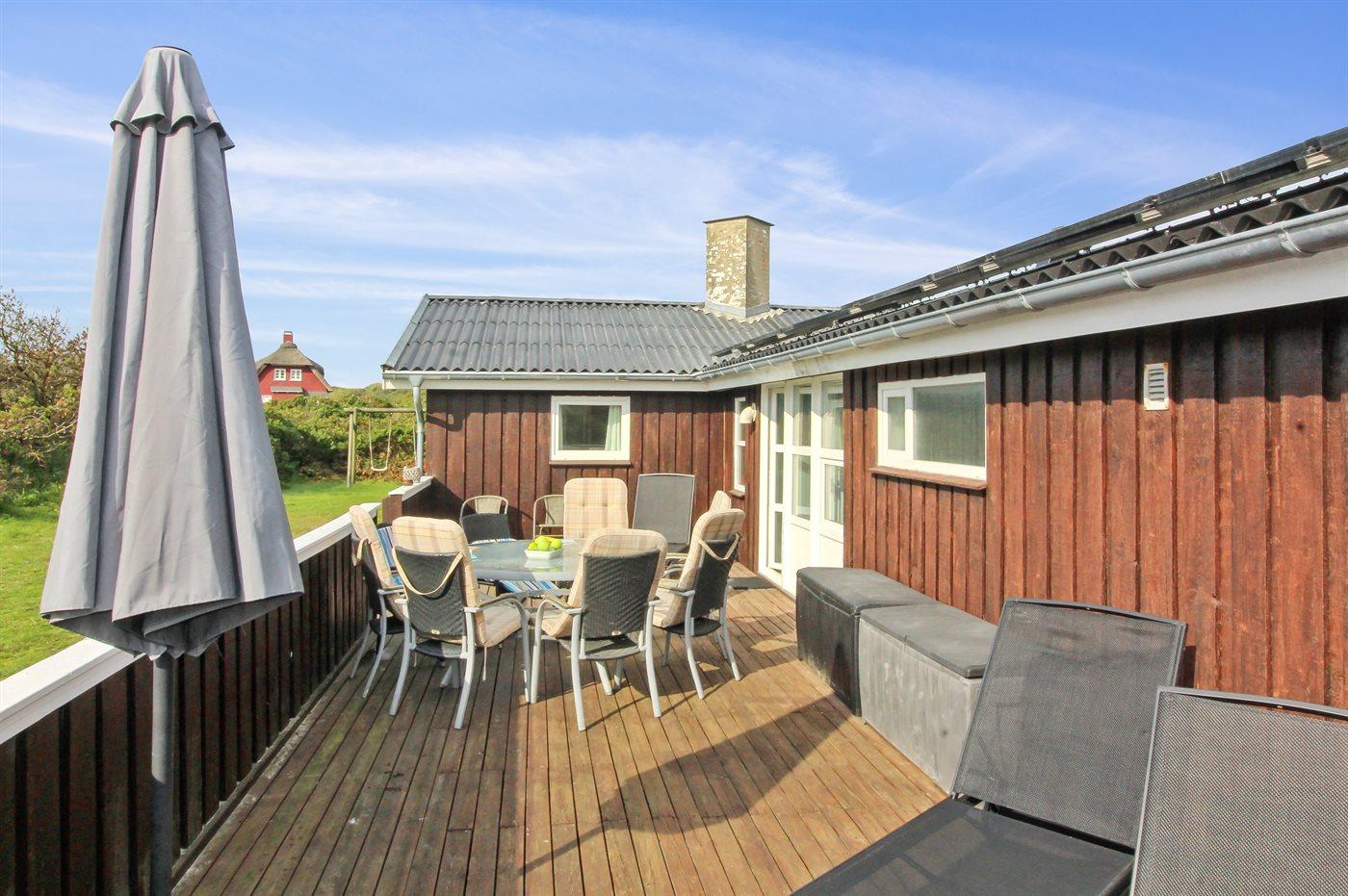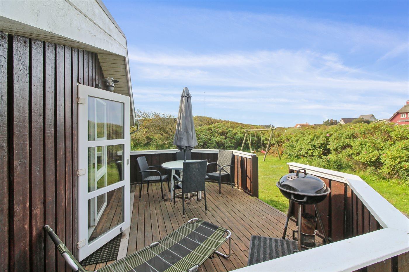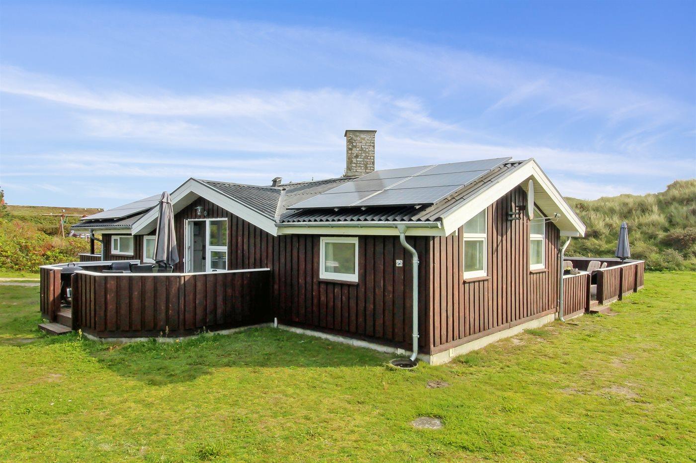 Et virkelig velbeliggende sommerhus på en stor, delvis kuperet grund, lige bag klitterne til stranden og Vesterhavet, hvor der fra grundens højeste punkt er havudsigt. Swimmingpoolen opvarmes af en energibesparende varmepumpe.