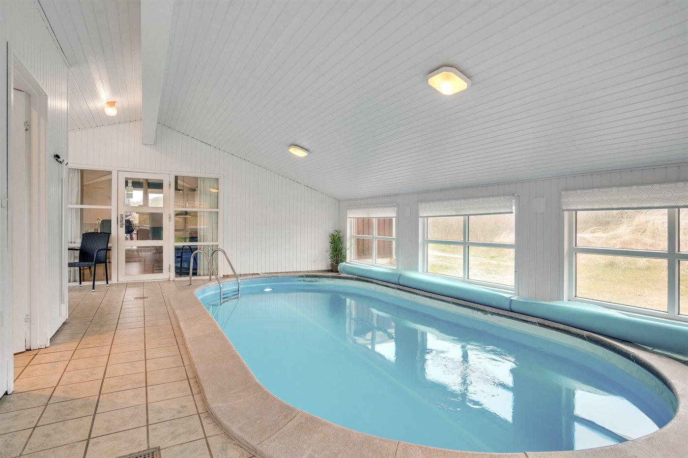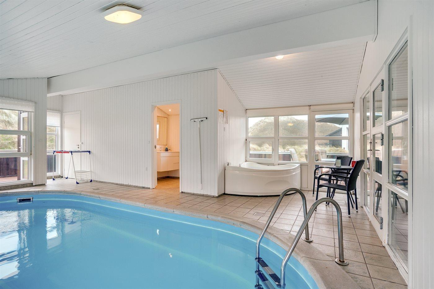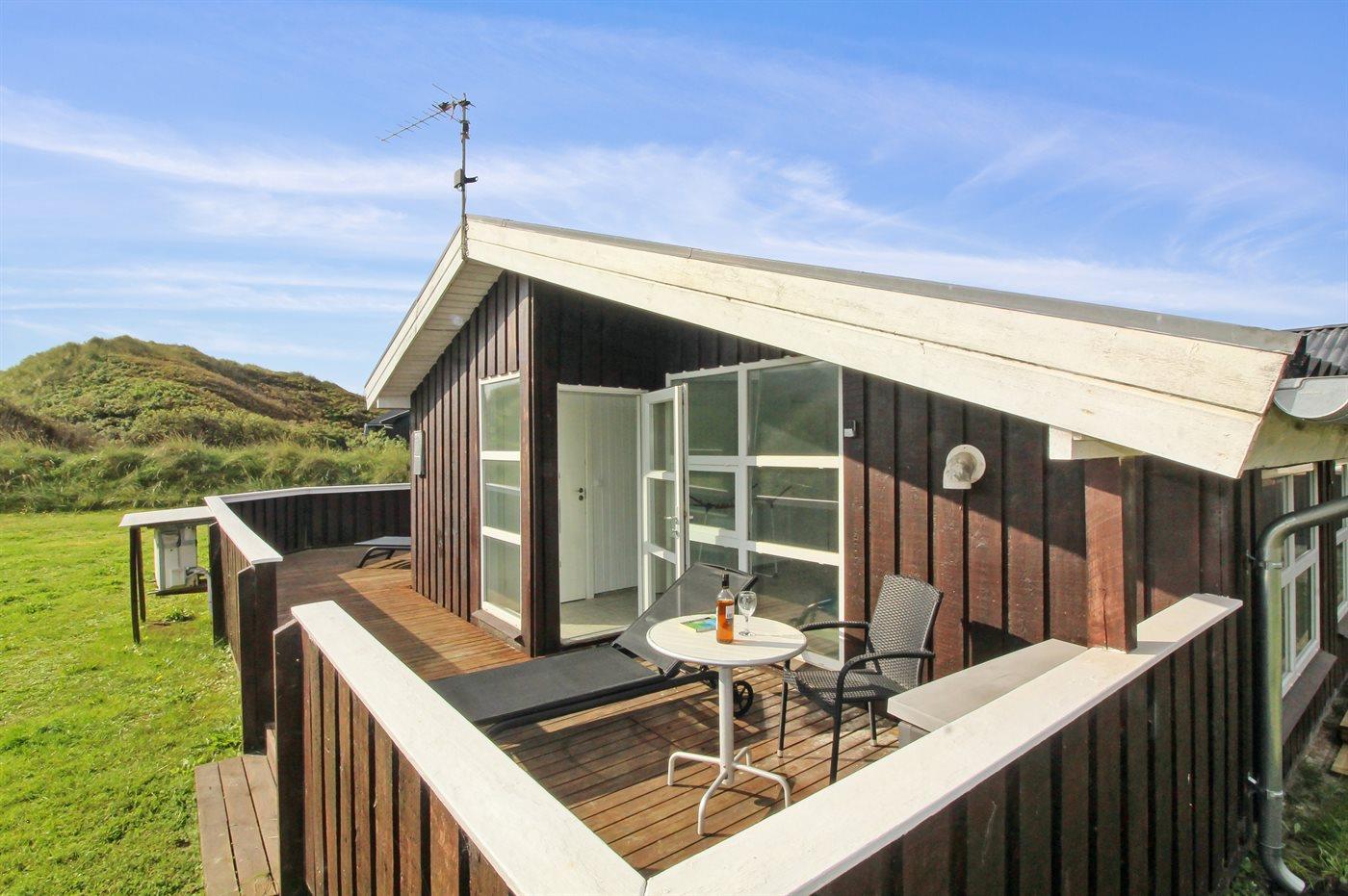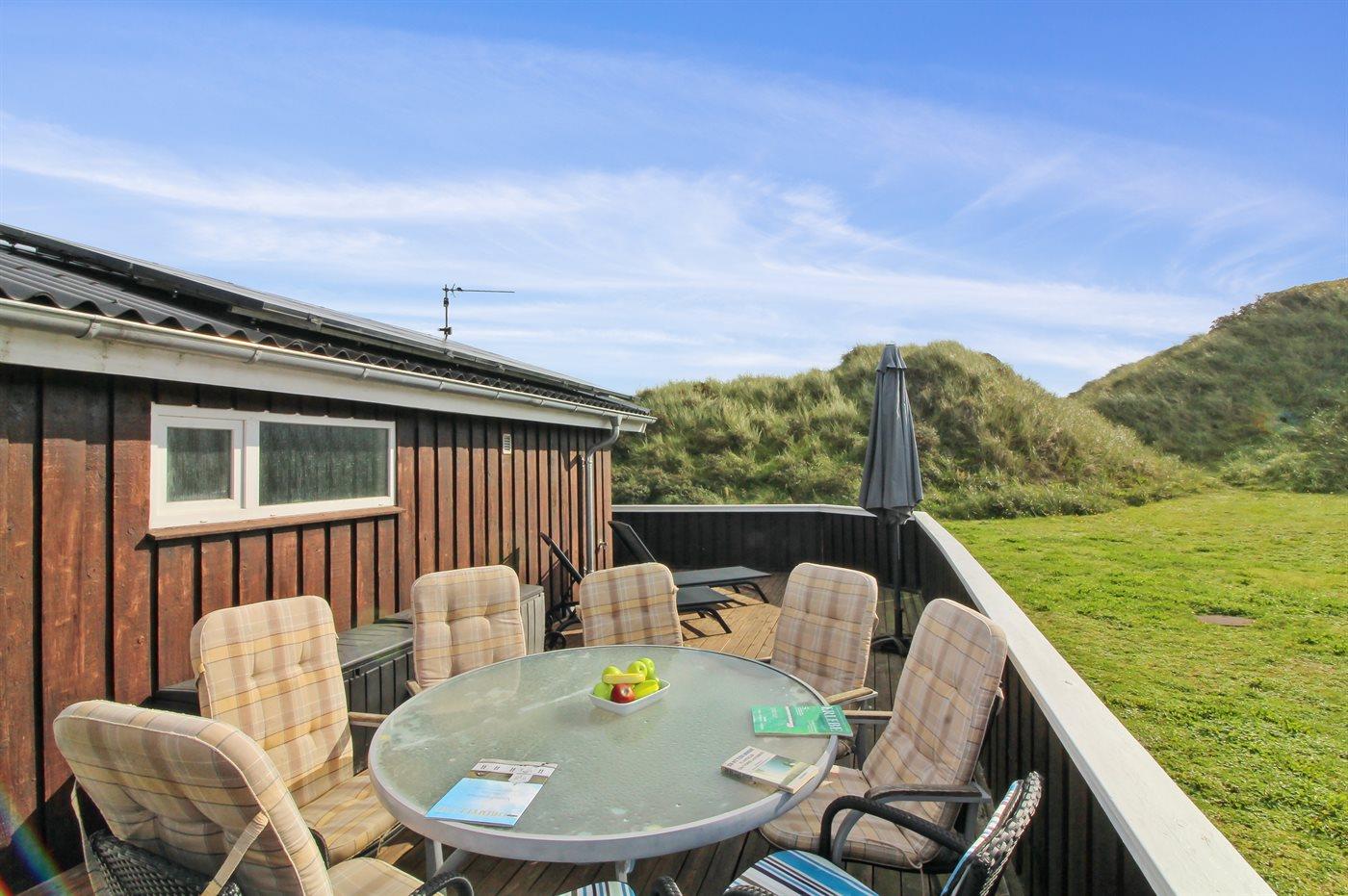 Et virkelig velbeliggende sommerhus på en stor, delvis kuperet grund, lige bag klitterne til stranden og Vesterhavet, hvor der fra grundens højeste punkt er havudsigt. Swimmingpoolen opvarmes af en energibesparende varmepumpe.