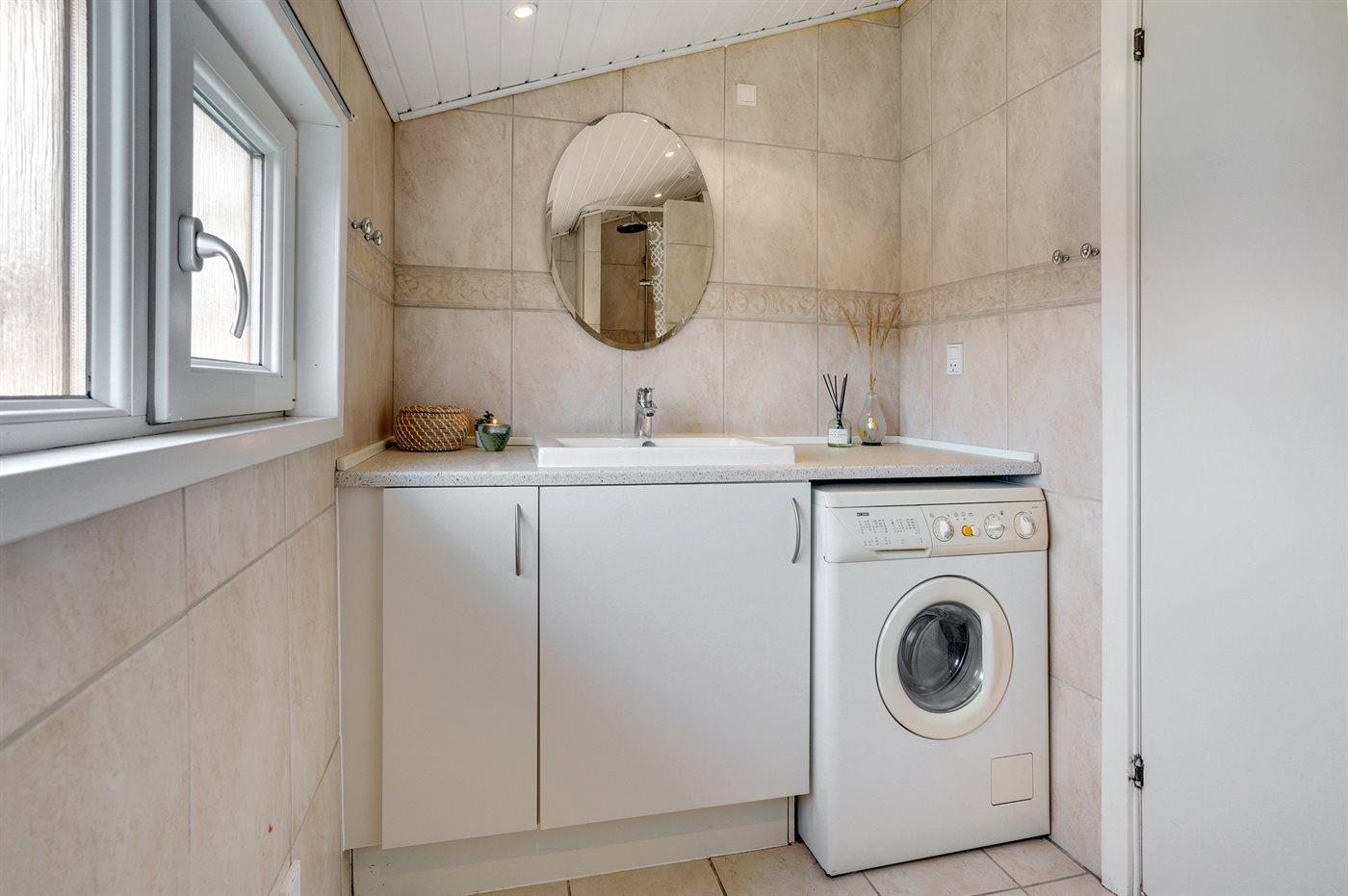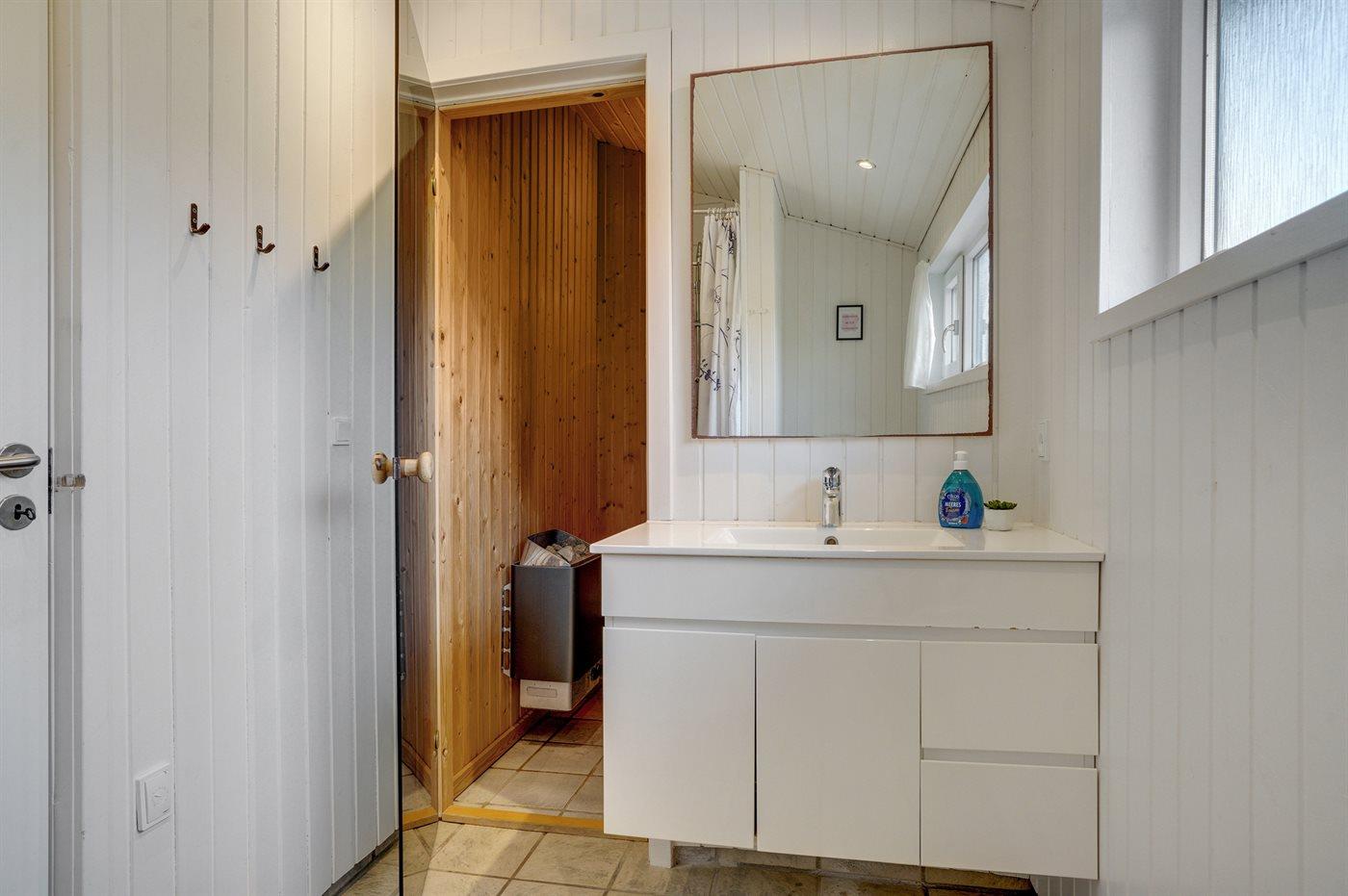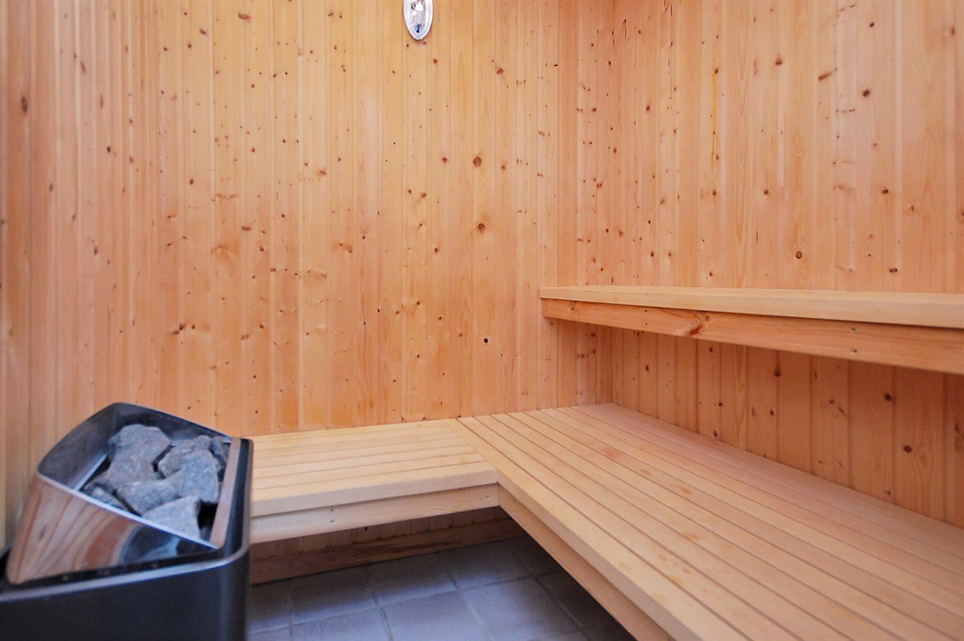 Der er 2 badeværelser med bruser og 2 toiletter. Der er gulvvarme på 1 badeværelse. I saunaen er der mulighed for afslapning.