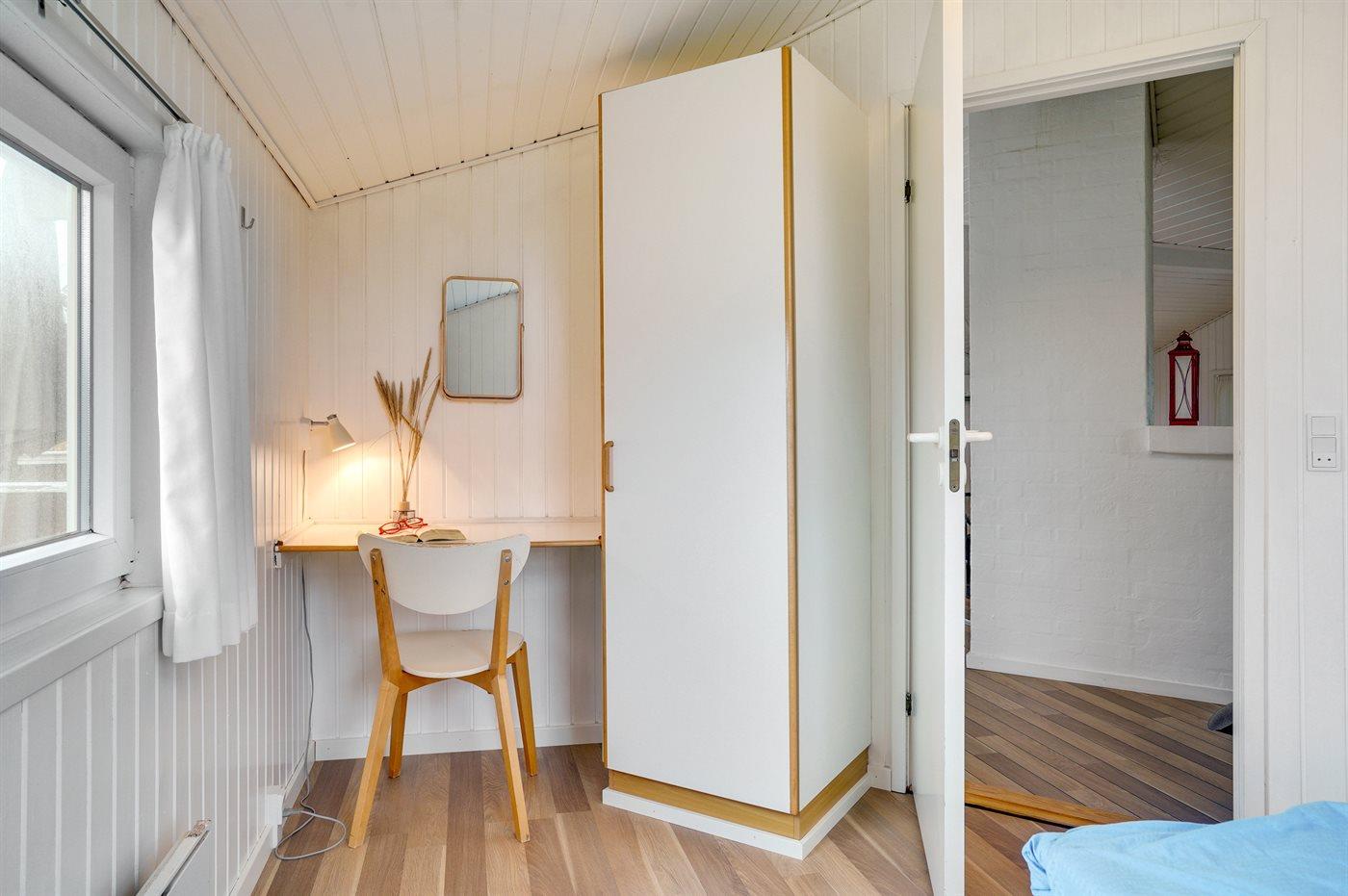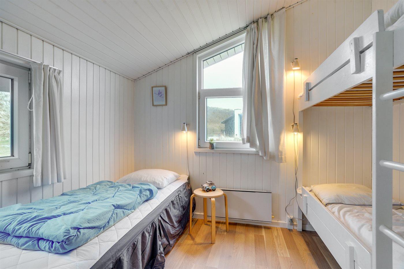 Der er i alt 3 soveværelser. Sovepladserne fordeler sig på: 4 sovepladser i dobbeltsenge. 1 soveplads i enkeltseng. 2 sovepladser i køjeseng. Derudover er der 1 stk. barneseng.