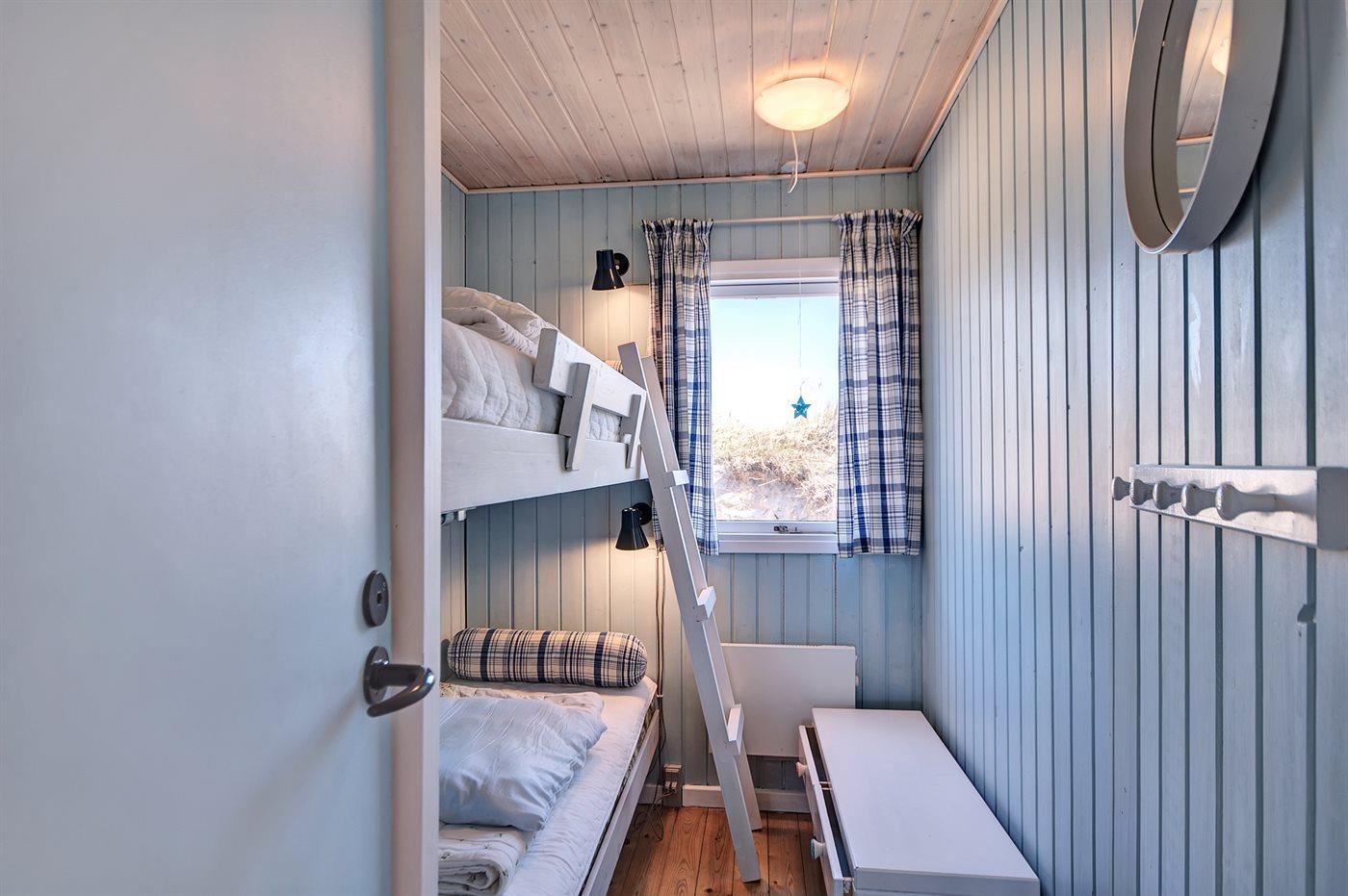 Der er i alt 3 soveværelser. Sovepladserne fordeler sig på: 2 sovepladser i dobbeltseng. 2 sovepladser i enkeltsenge. 2 sovepladser i køjeseng.
