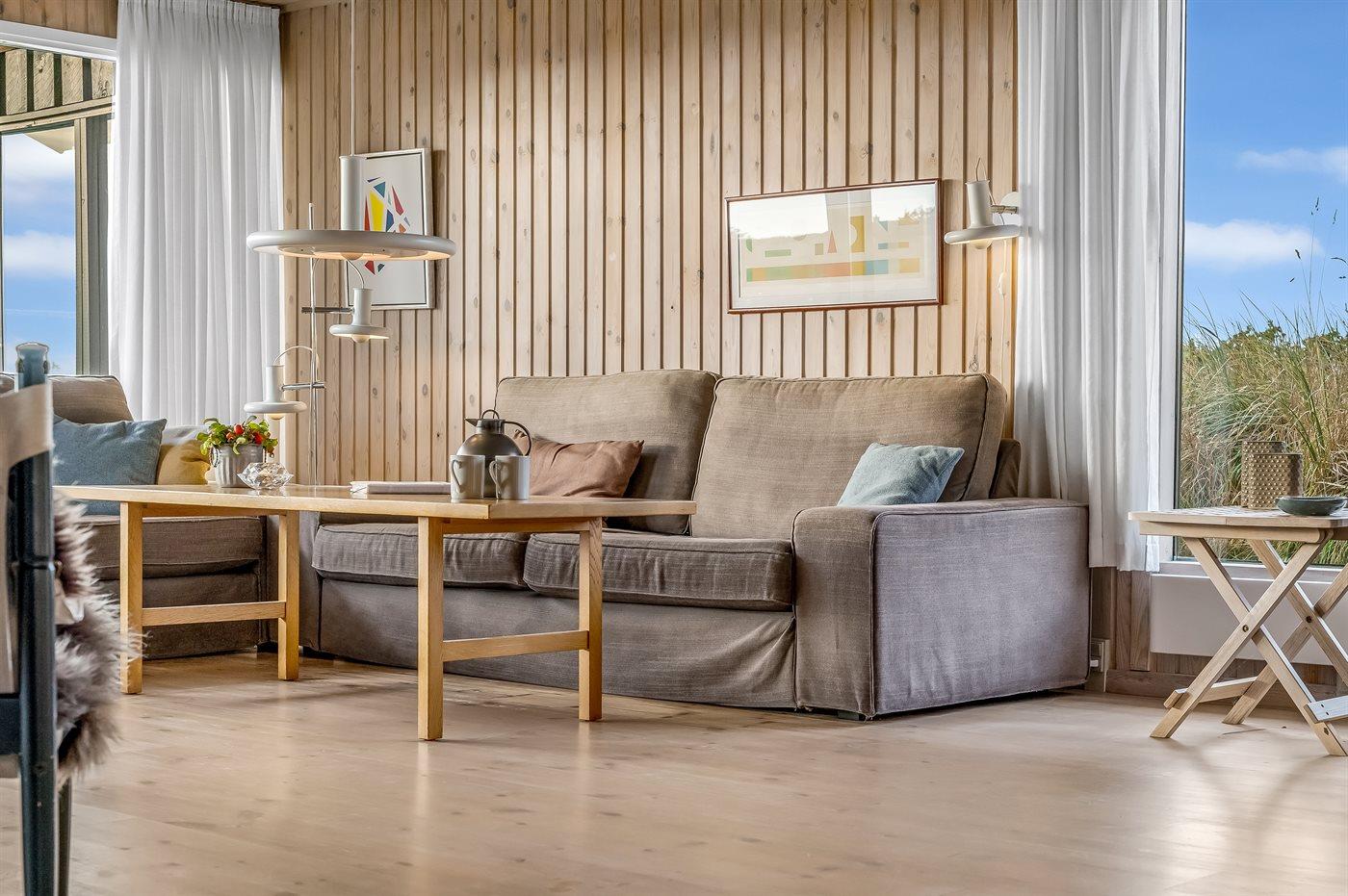 Hyggeligt sommerhus med havudsigt, stor terrasse og roligt naturområde nær Vesterhavet.