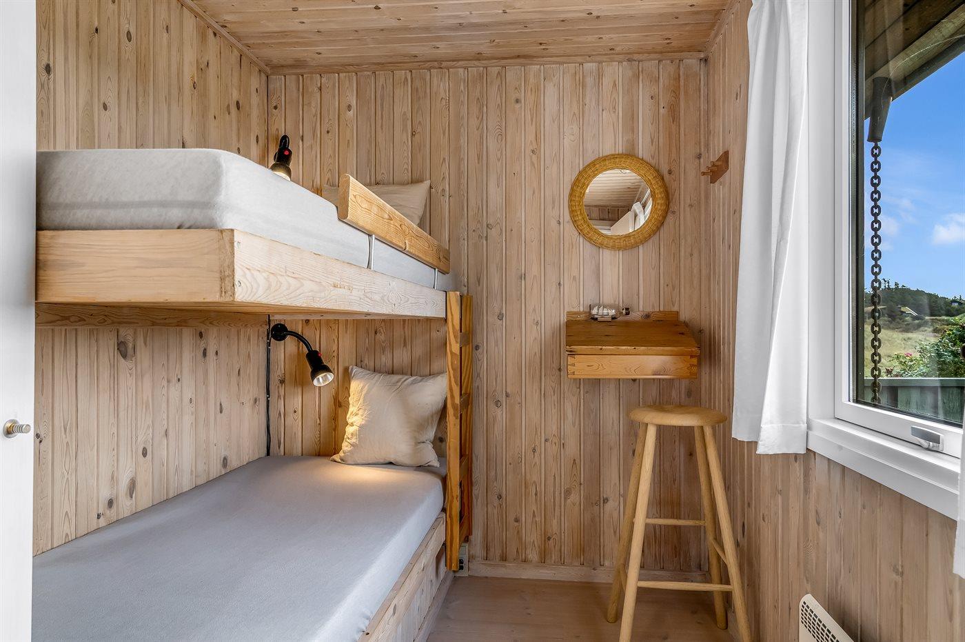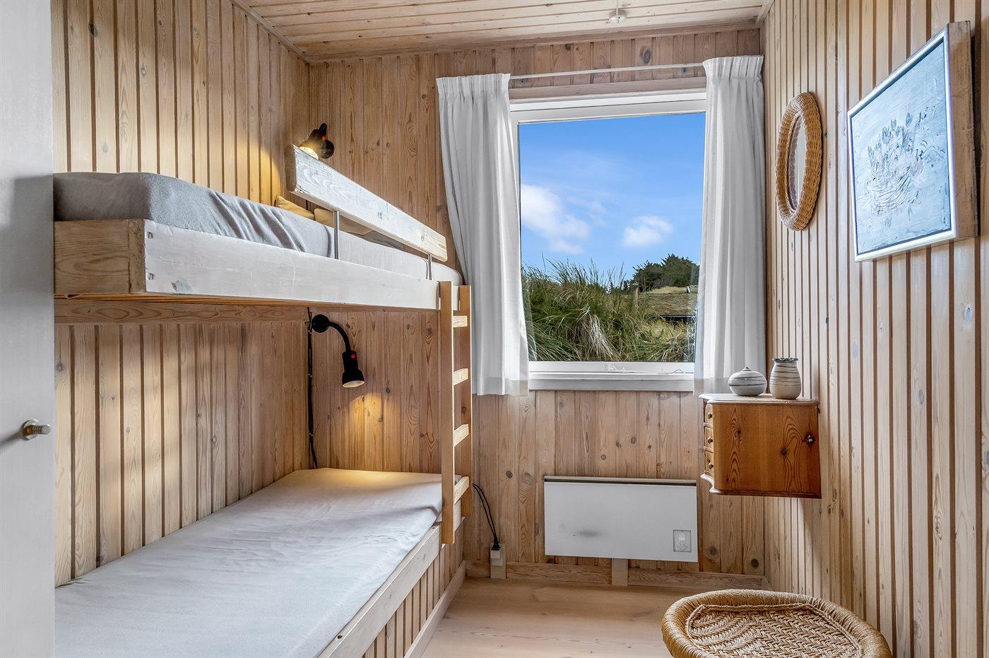 Der er i alt 3 soveværelser. Sovepladserne fordeler sig på: 2 sovepladser i dobbeltseng. 4 sovepladser i køjesenge.