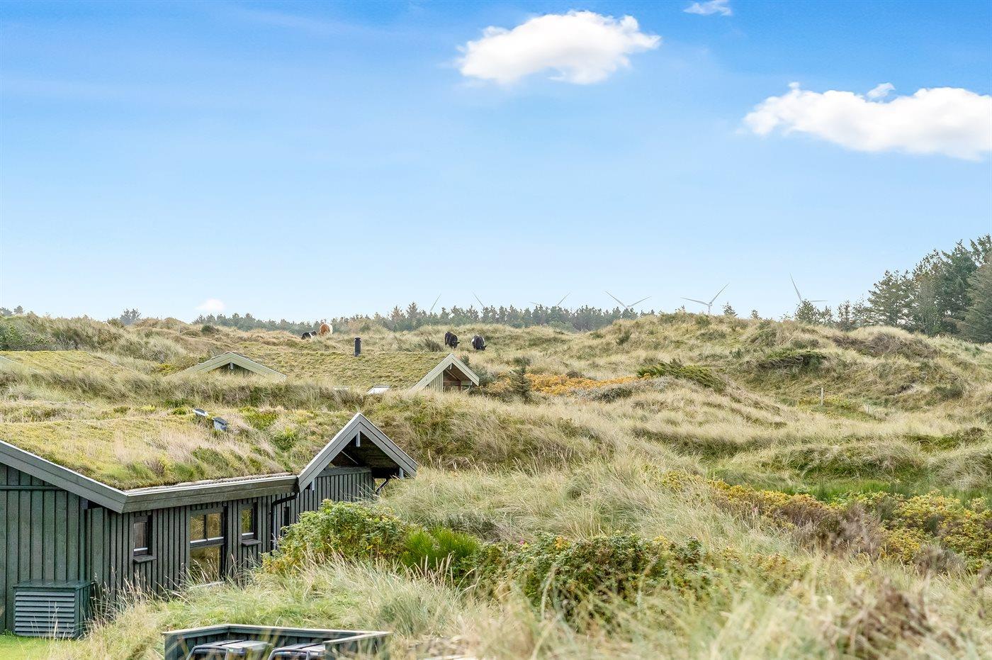 Ferieboligen er beliggende på en 1660 m² stor klitgrund. Der er 480 m til havet. Nærmeste forretning er beliggende i en afstand af 4000 m. Til ferieboligen hører 100 m² terrasseareal. Desuden er der 15 m² overdækket terrasse. Der er redskabsrum. På lune aftener sørger en udendørs pejs for hyggelig stemning. Der er installeret stik til opladning af elbil. Parkering ved ferieboligen.
