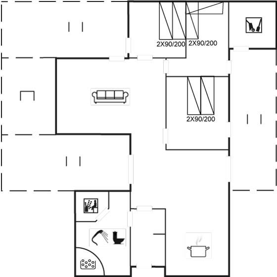 Der er i alt 3 soveværelser. Sovepladserne fordeler sig på: 4 sovepladser i dobbeltsenge. 2 sovepladser i køjeseng. Derudover er der 1 stk. barneseng.