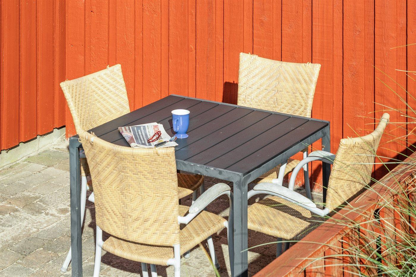 Ferieboligen er beliggende på en 2600 m² stor klitgrund. Der er 290 m til havet. Nærmeste forretning er beliggende i en afstand af 3000 m. Til ferieboligen hører 24 m² terrasseareal. Desuden er der 18 m² overdækket terrasse. Der er garage til rådighed.