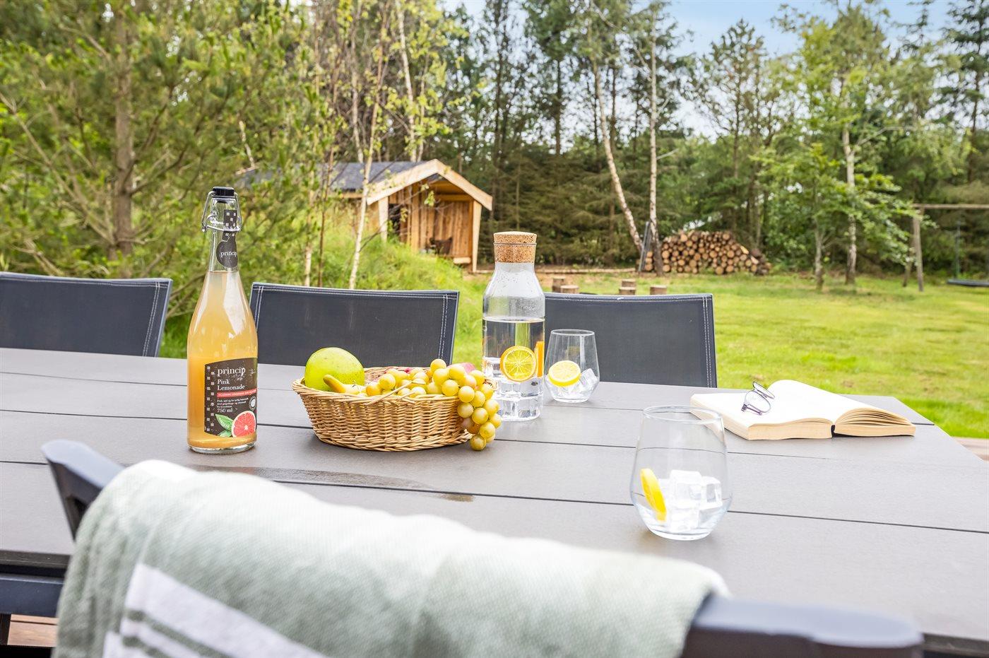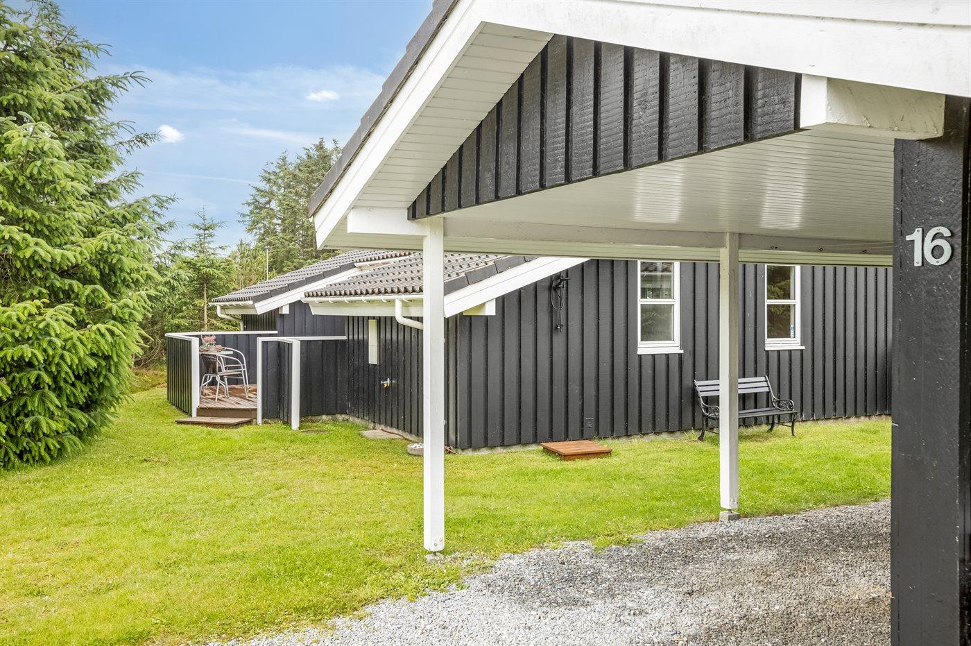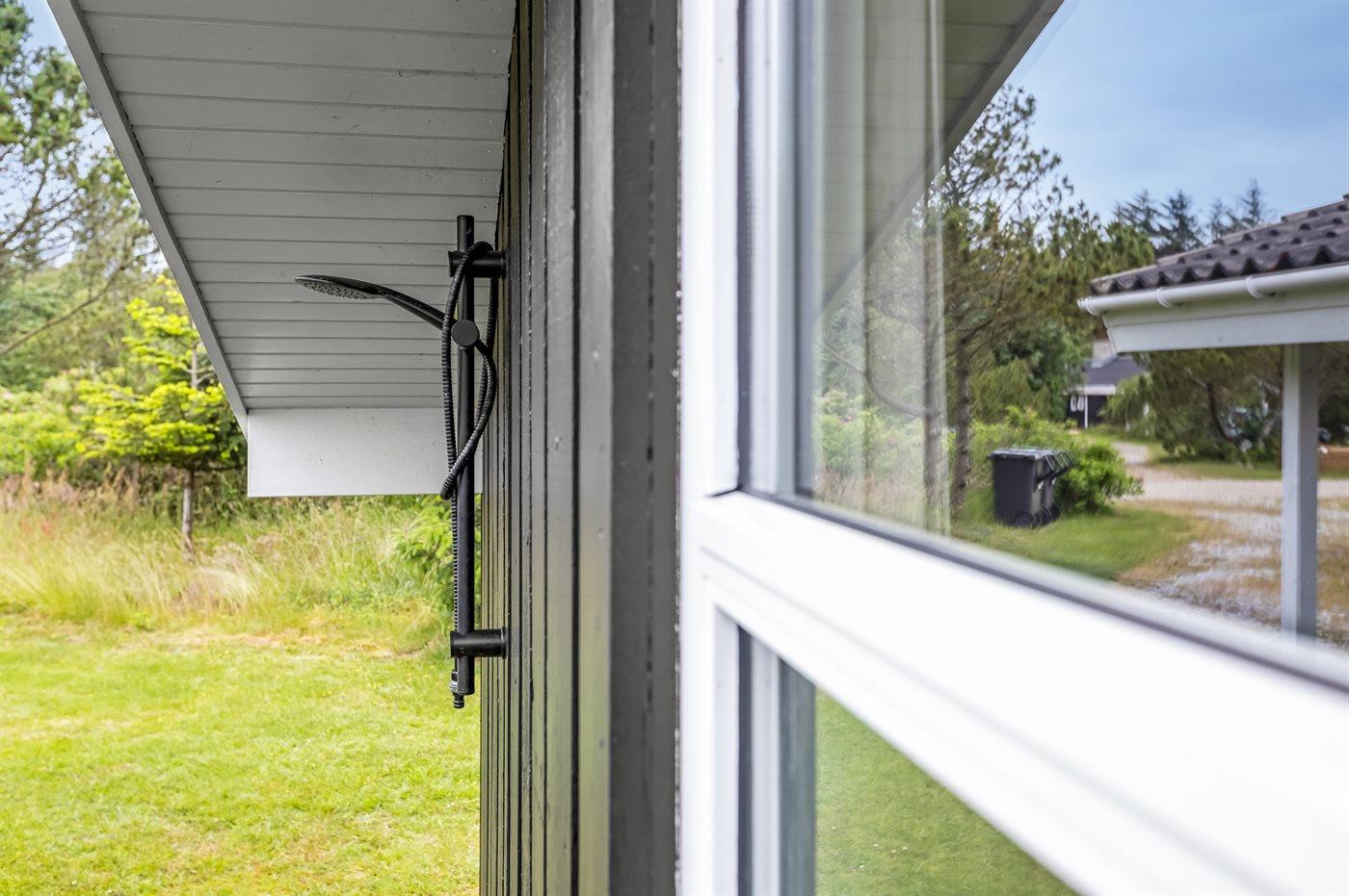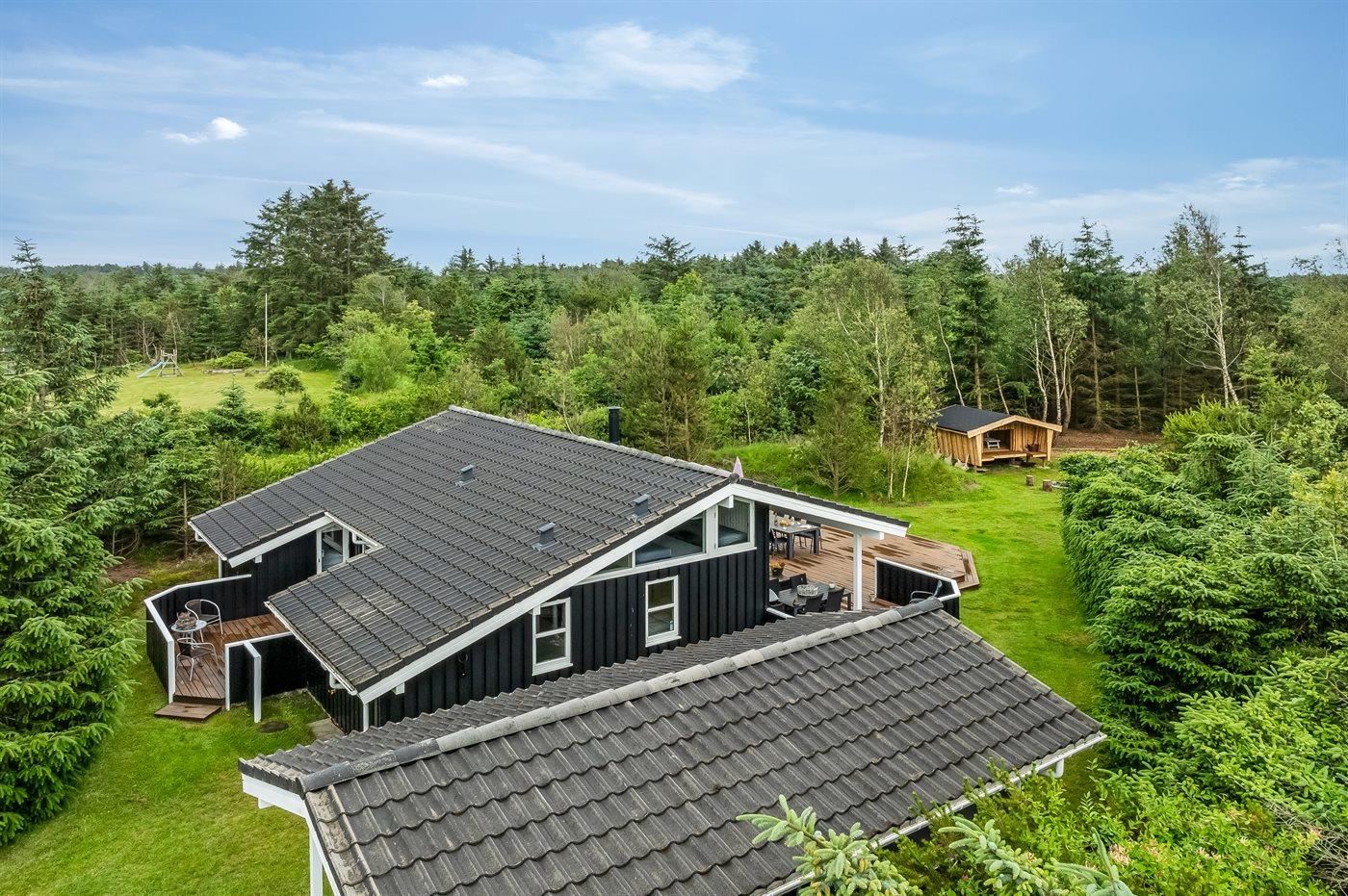 Ferieboligen er beliggende på en 1836 m² stor naturgrund. Der er 2000 m til havet. Nærmeste forretning er beliggende i en afstand af 3000 m. Der er en golfbane i en afstand af 12000 m. Til ferieboligen hører åbent terrasseareal. Desuden er der overdækket terrasse. Der er redskabsrum. Gynge. Fodboldmål. Bålsted. Shelter. Grill til rådighed. Parkering ved ferieboligen.