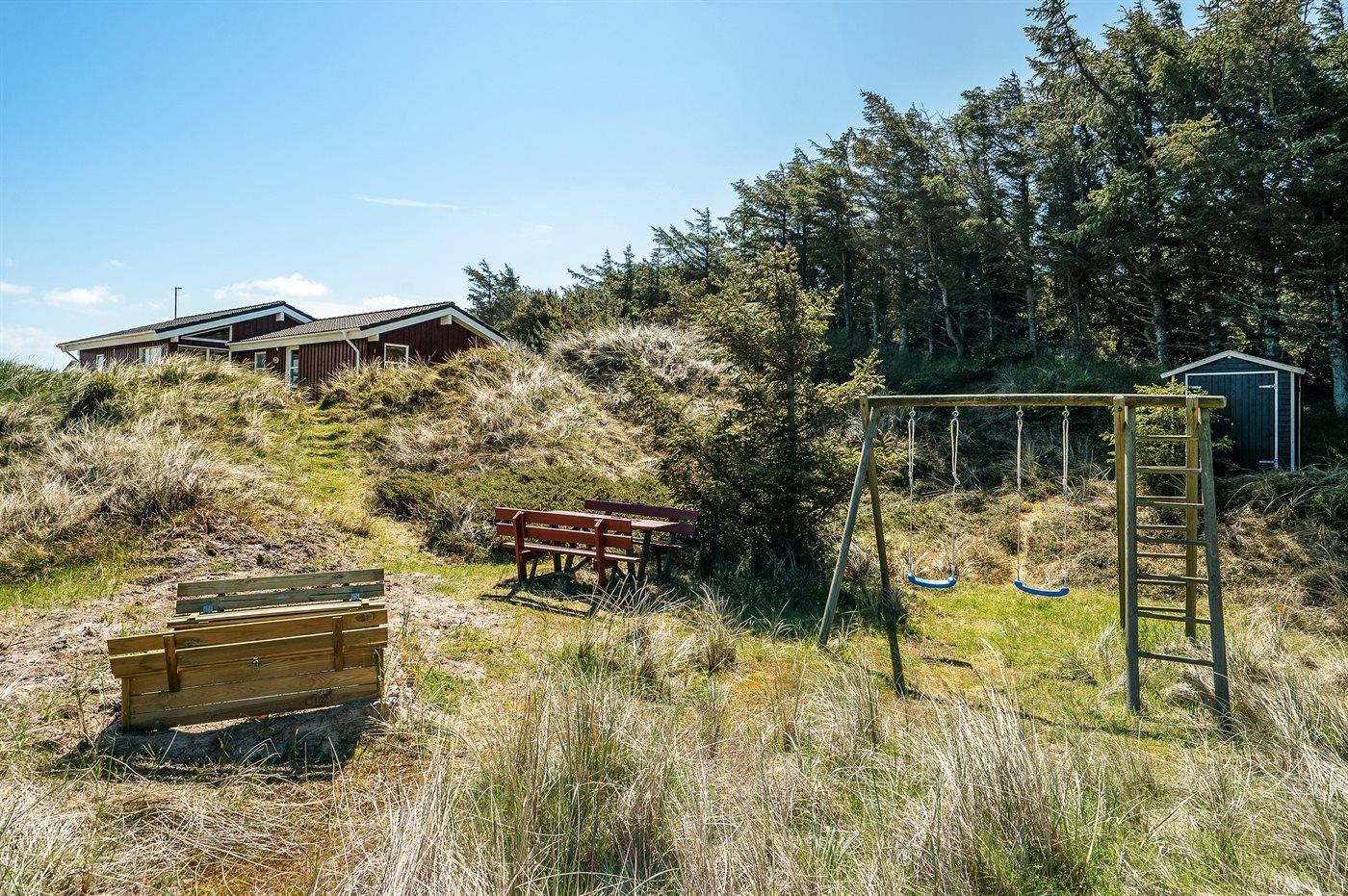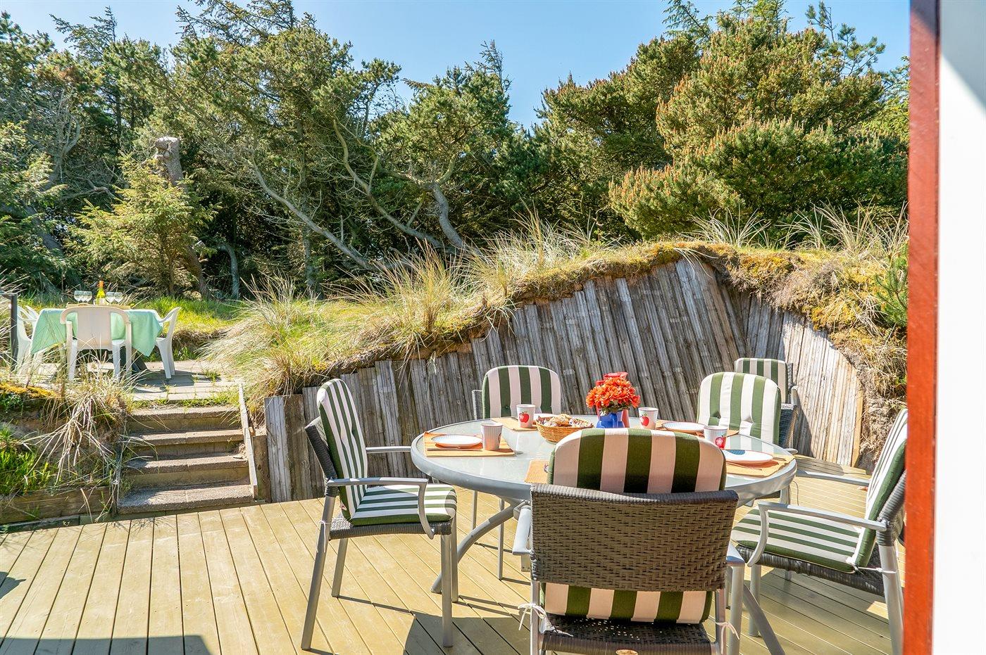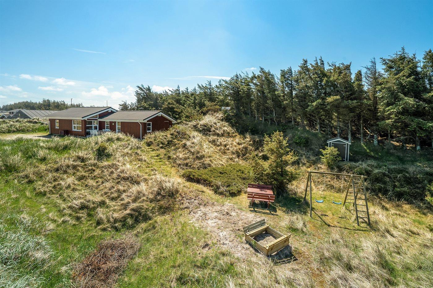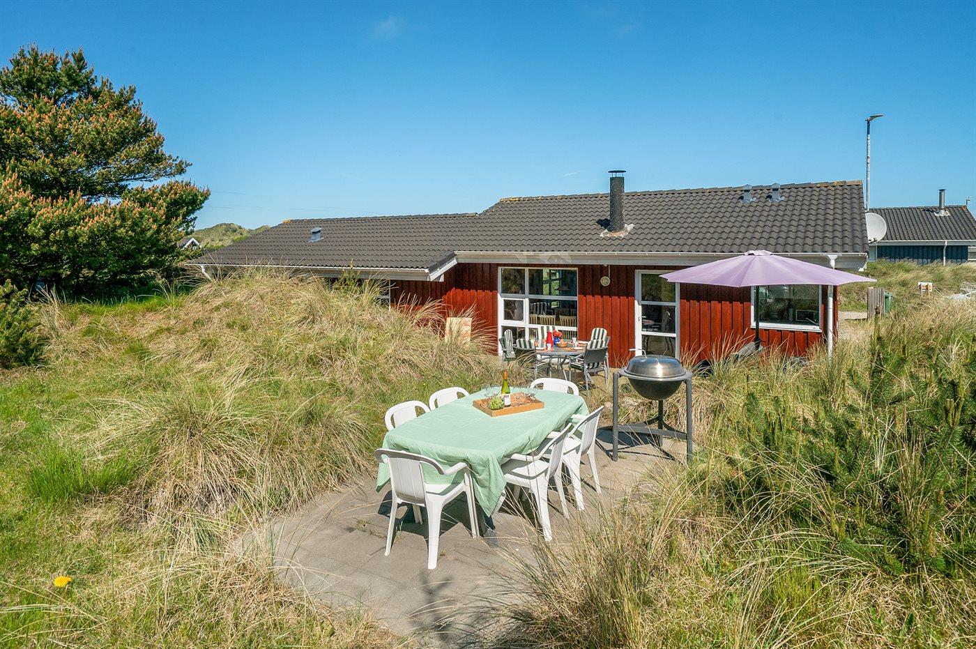 Pragtfuldt beliggende sommerhus i træ, opført i 2002, på en kuperet klitgrund - kun 200 m fra den brede sandstrand ved Saltum. Fra toppen af grunden er der en flot udsigt over området med Vesterhavet i baggrunden. Til huset hører åbne syd- og vestvendte terrasser med havemøbler.
