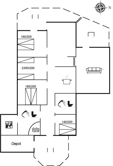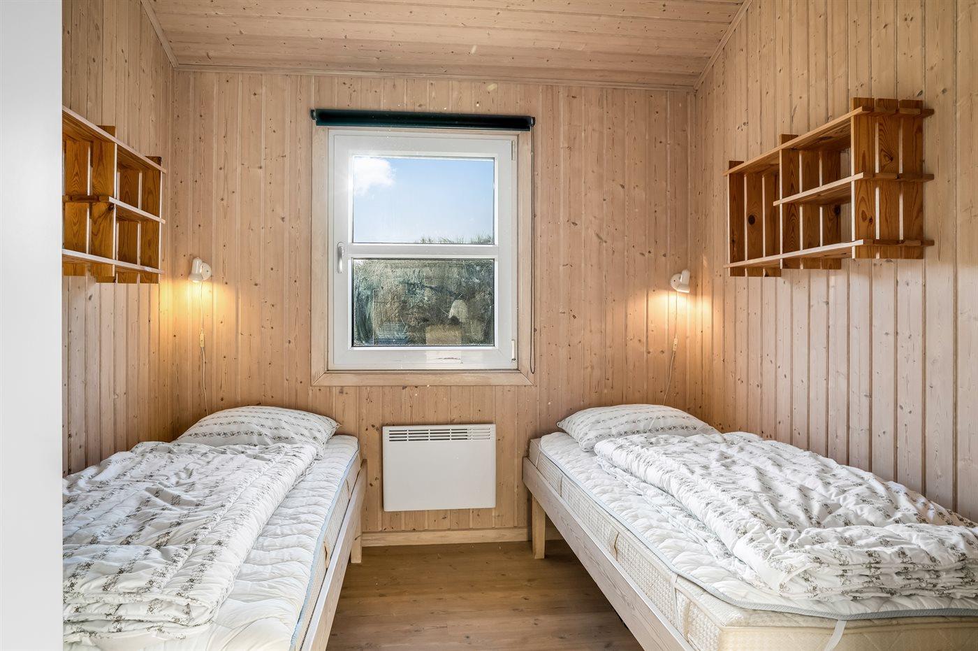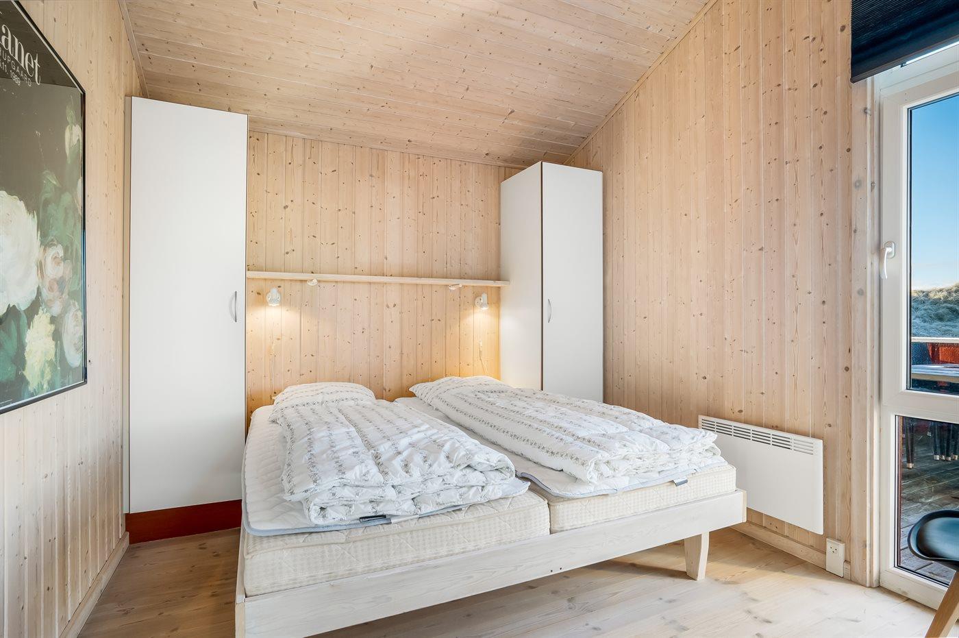 Der er i alt 4 soveværelser. Sovepladserne fordeler sig på: 6 sovepladser i dobbeltsenge. 2 sovepladser i enkeltsenge. Derudover er der 1 stk. barneseng.