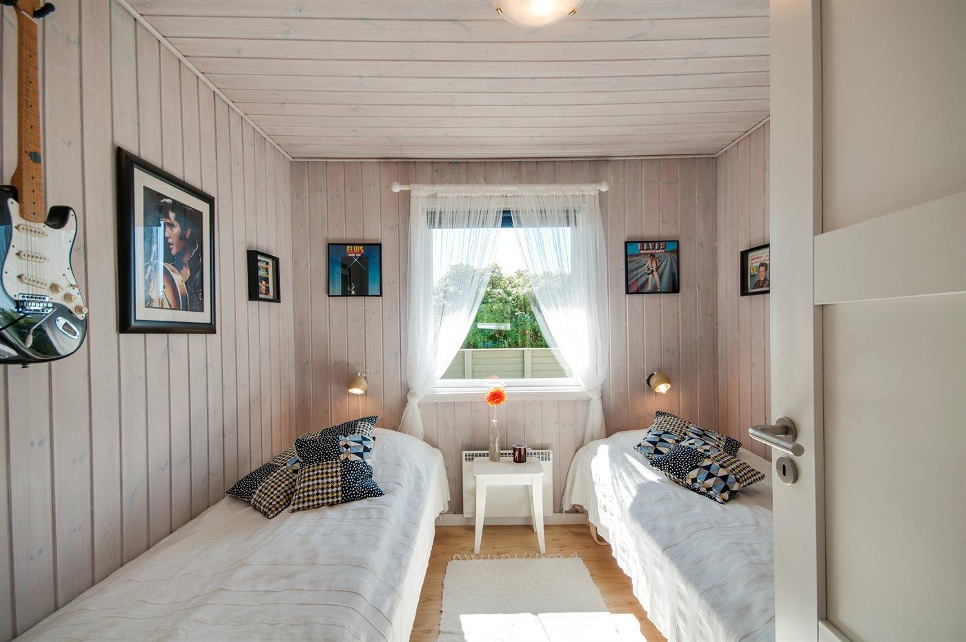 Der er i alt 3 soveværelser. Sovepladserne fordeler sig på: 2 sovepladser i dobbeltseng. 4 sovepladser i enkeltsenge. Derudover er der 1 stk. barneseng.