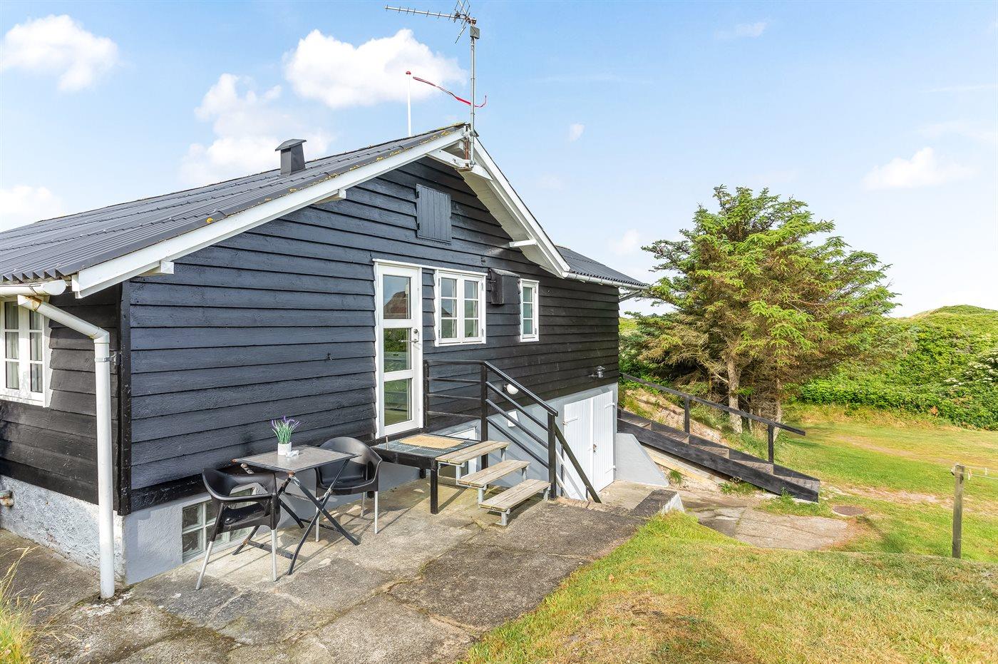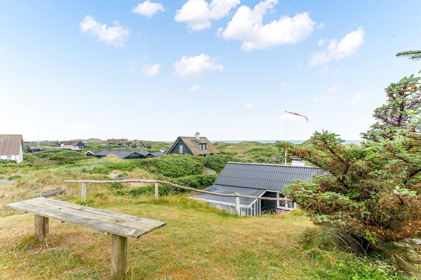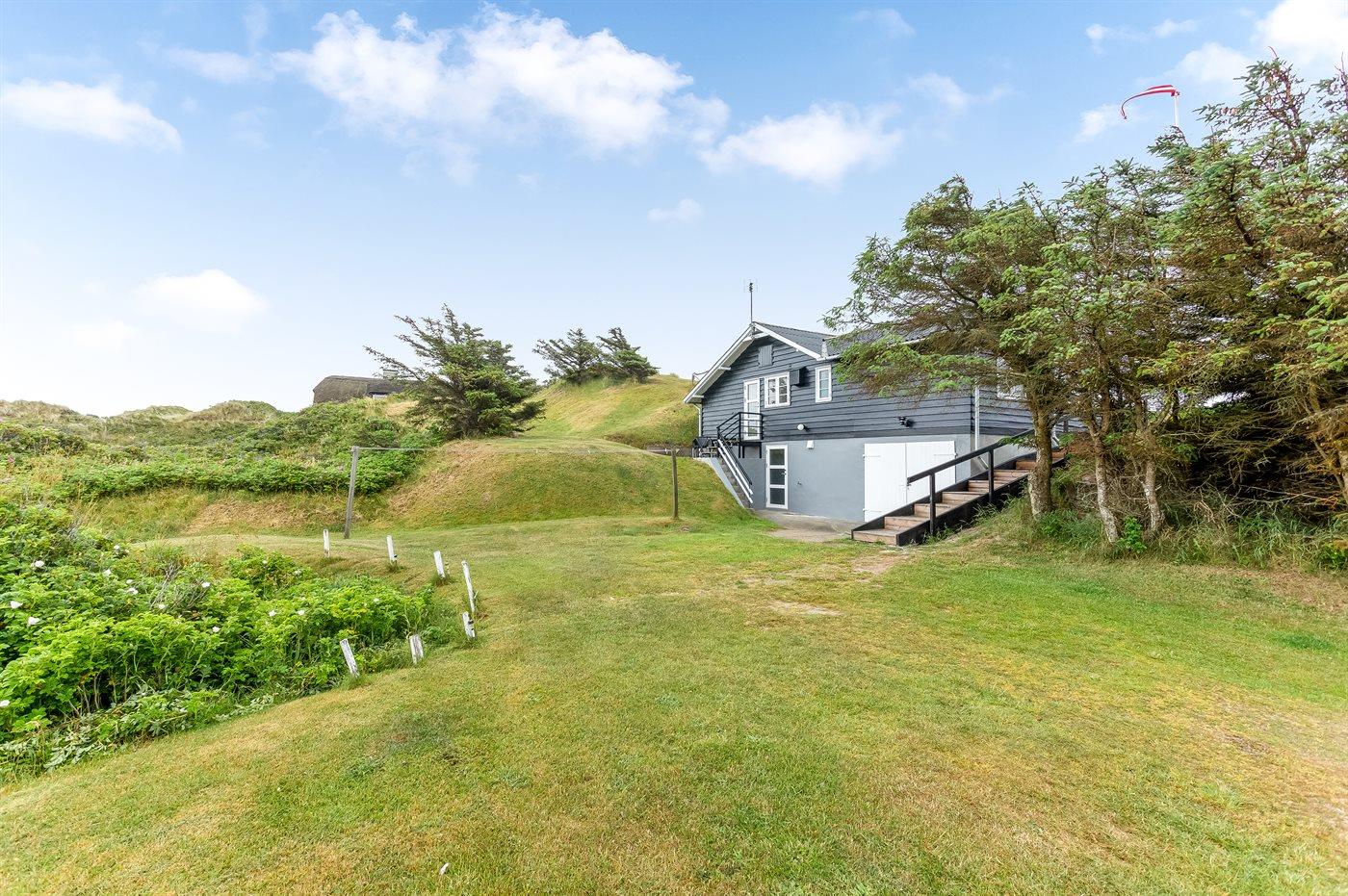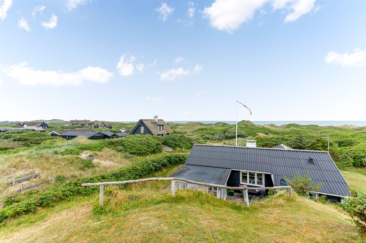 Dette utroligt idylliske og klassiske sommerhus er løbende vedligeholdt i den originale stil, og er beliggende på en særdeles stor og skøn, kuperet og hybenbevokset natur-/klitgrund i 1. række tæt på vandet. Huset har egen grund til stranden, der nås ved få minutters gang ad offentlig sti. På grundens højeste punkt umiddelbart bag huset er der en fremragende udsigt over det smukke område, klitterne og Vesterhavet.