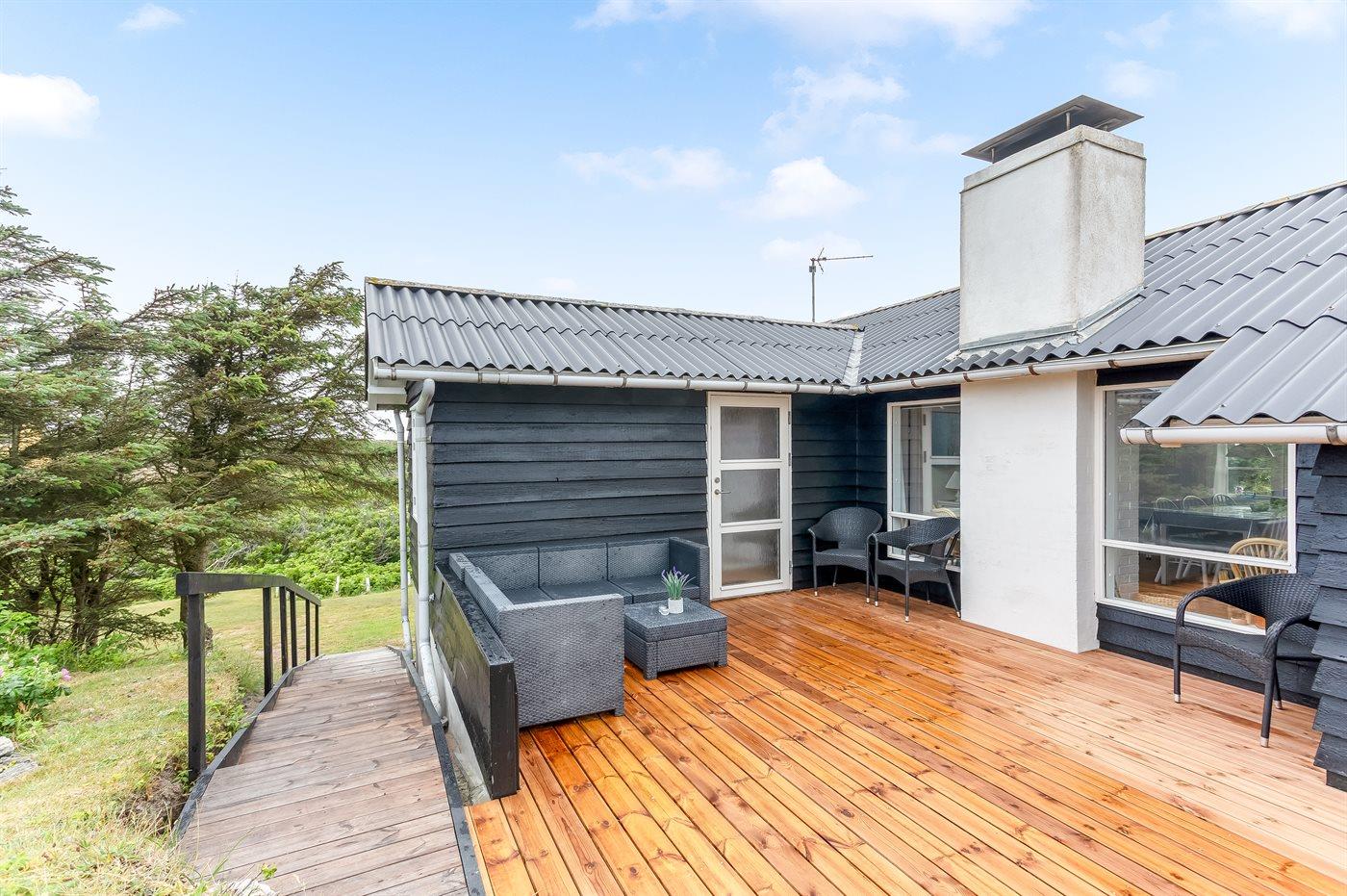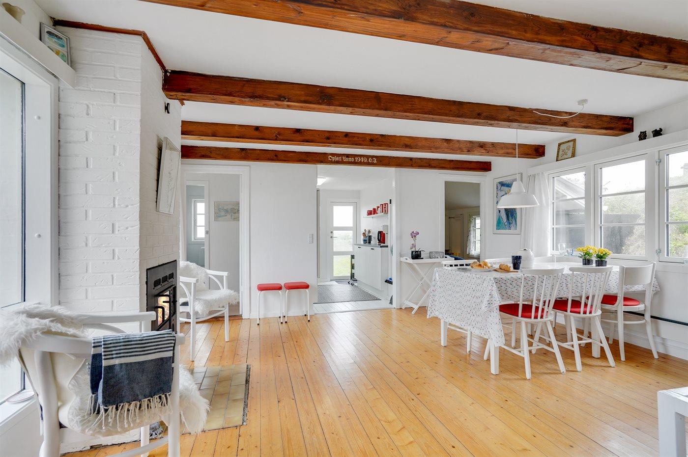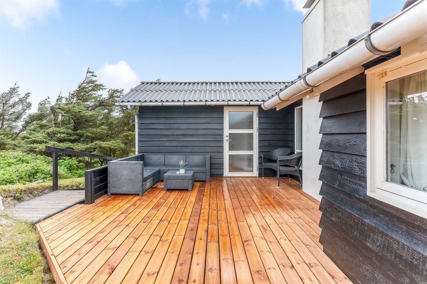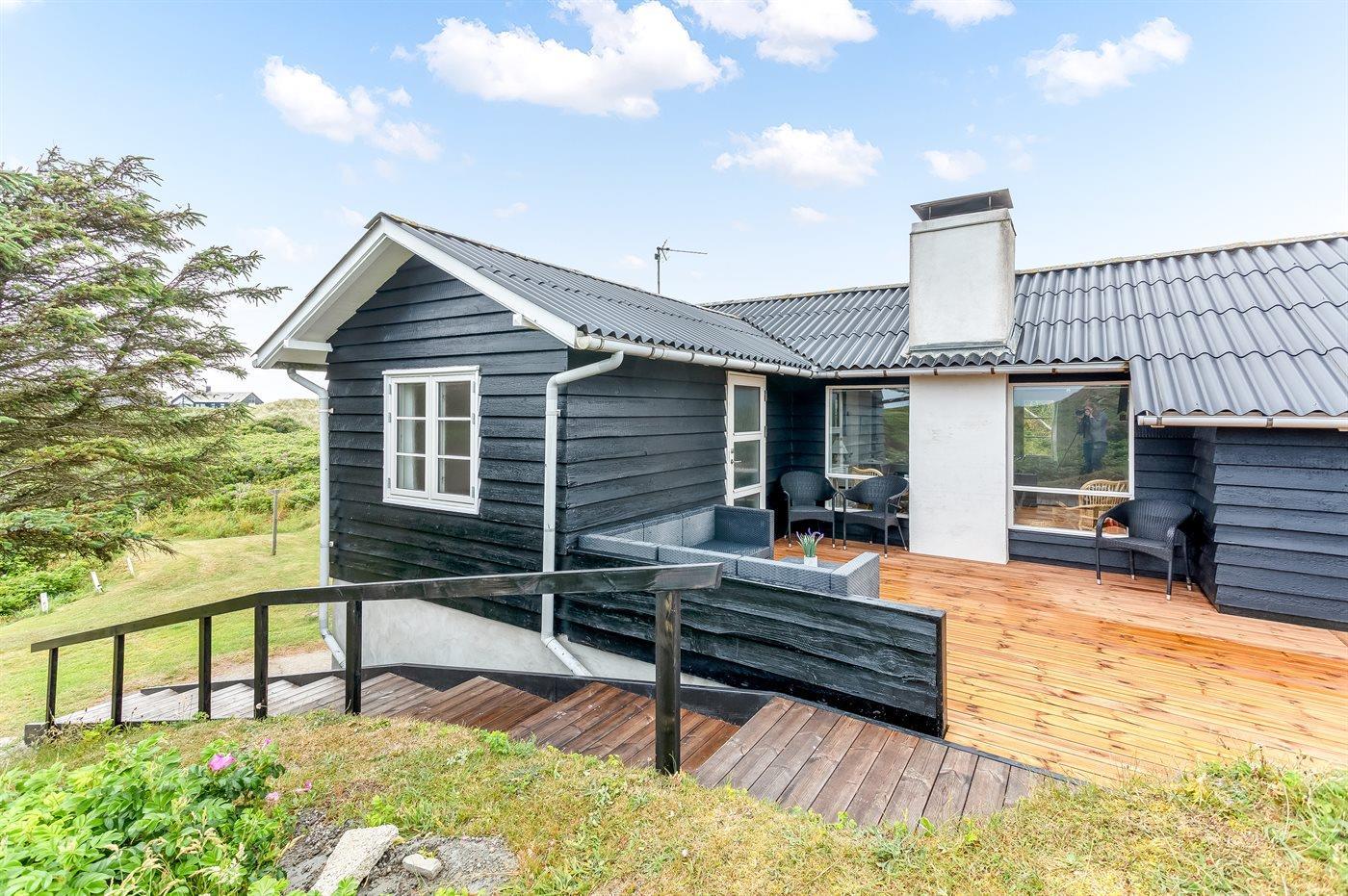 Dette utroligt idylliske og klassiske sommerhus er løbende vedligeholdt i den originale stil, og er beliggende på en særdeles stor og skøn, kuperet og hybenbevokset natur-/klitgrund i 1. række tæt på vandet. Huset har egen grund til stranden, der nås ved få minutters gang ad offentlig sti. På grundens højeste punkt umiddelbart bag huset er der en fremragende udsigt over det smukke område, klitterne og Vesterhavet.