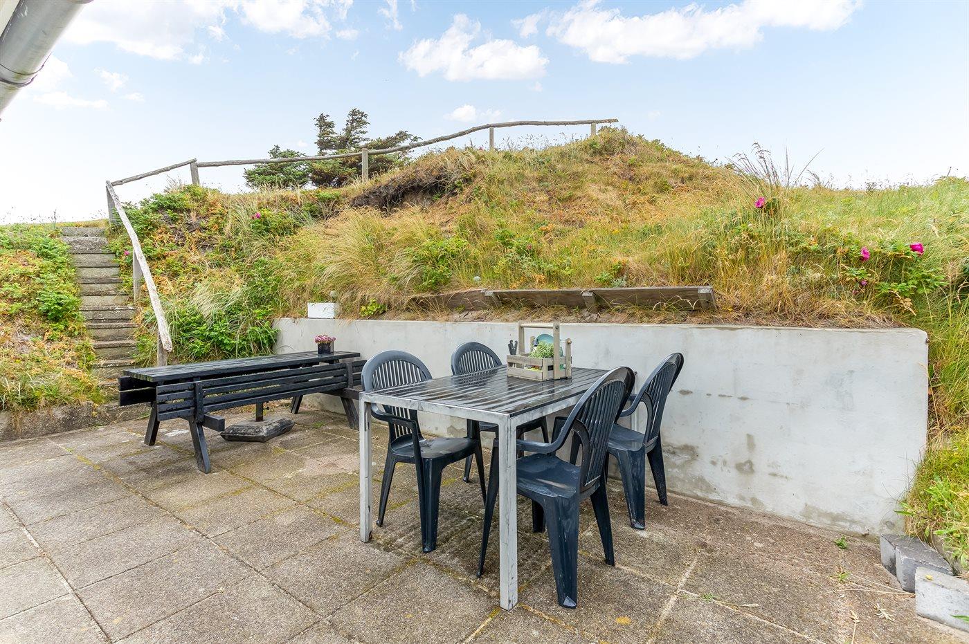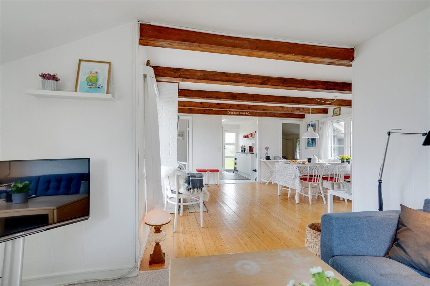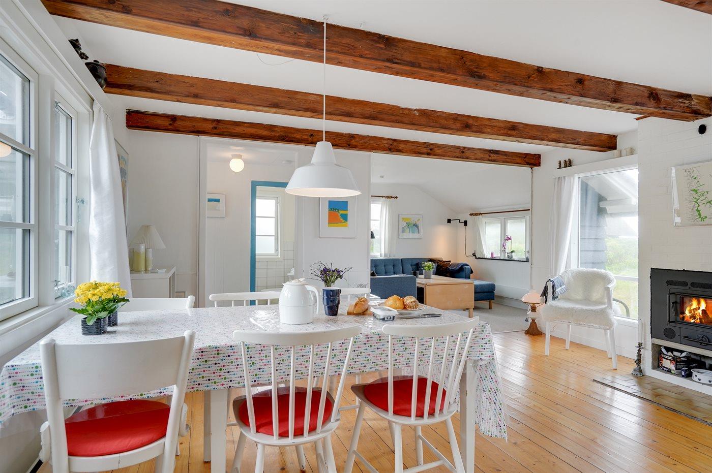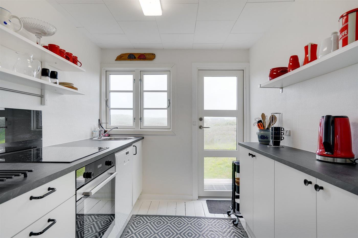 Dette utroligt idylliske og klassiske sommerhus er løbende vedligeholdt i den originale stil, og er beliggende på en særdeles stor og skøn, kuperet og hybenbevokset natur-/klitgrund i 1. række tæt på vandet. Huset har egen grund til stranden, der nås ved få minutters gang ad offentlig sti. På grundens højeste punkt umiddelbart bag huset er der en fremragende udsigt over det smukke område, klitterne og Vesterhavet.