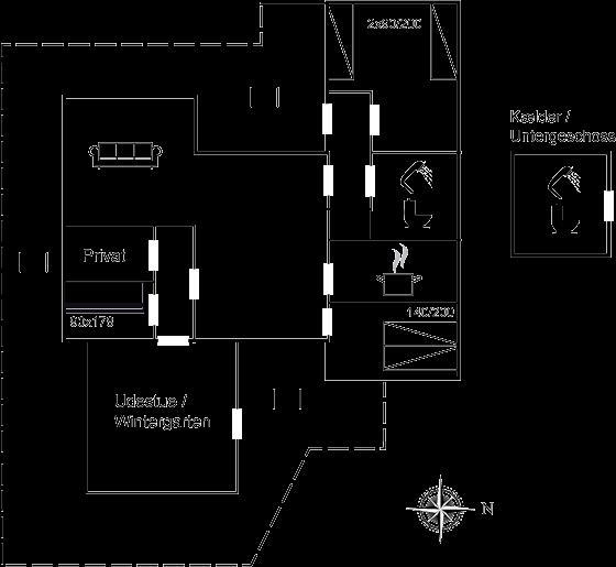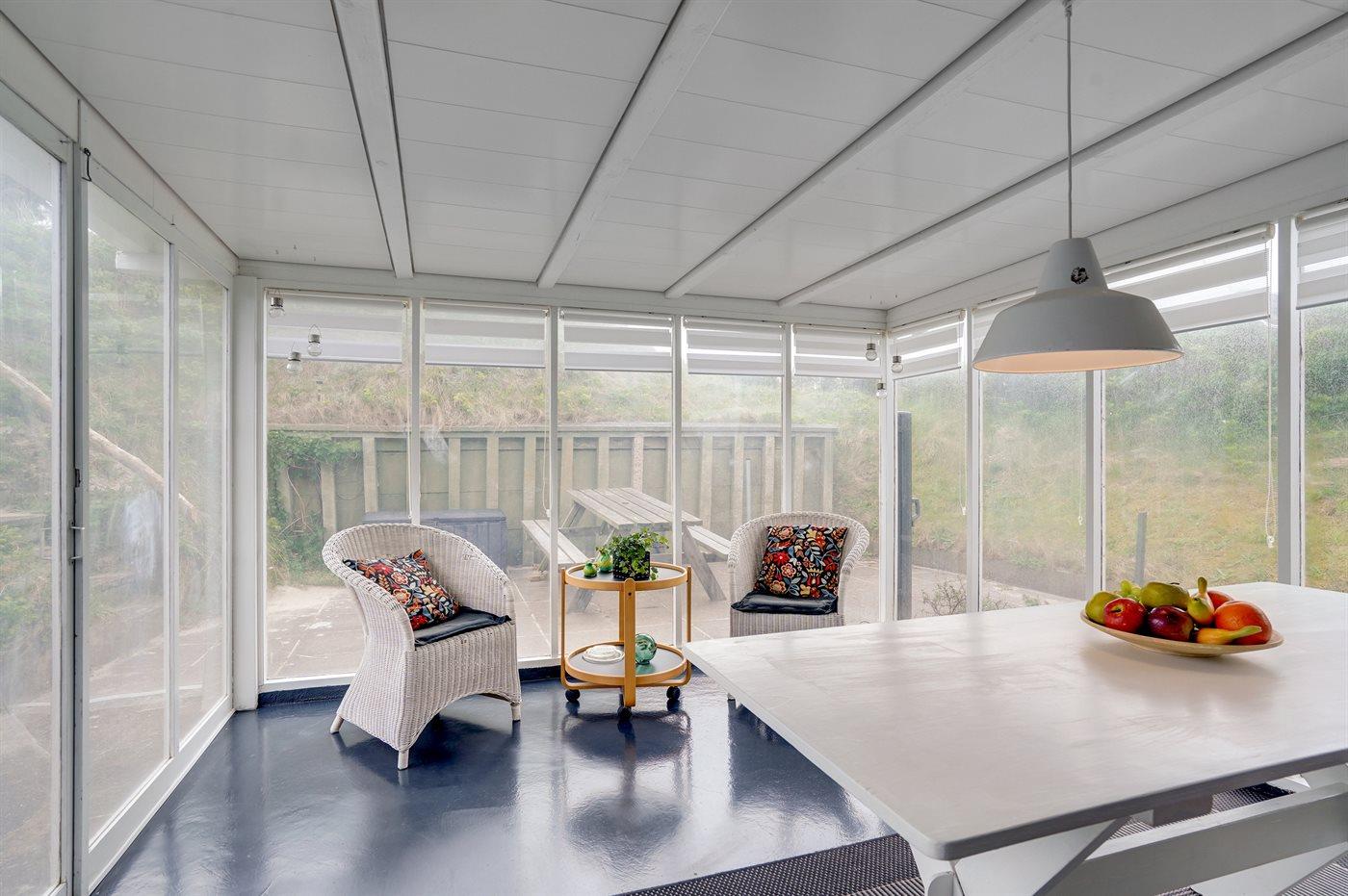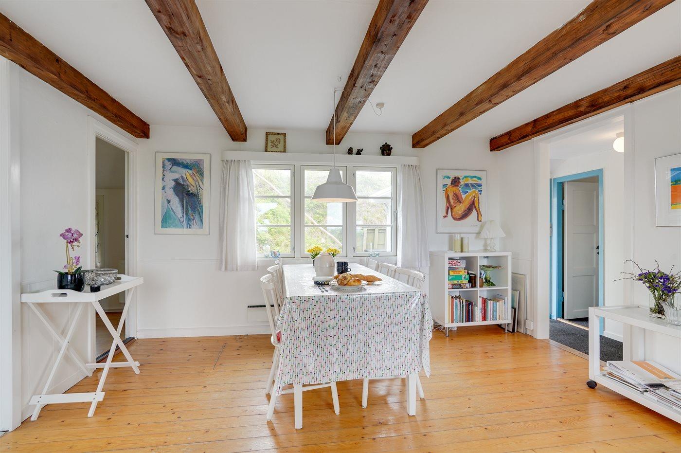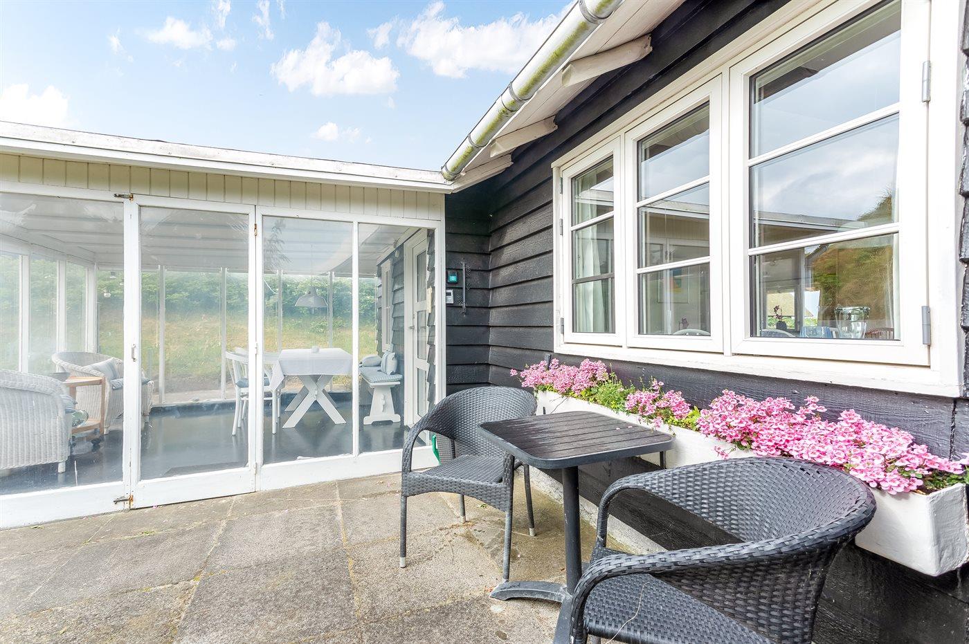 Mod øst er der en dejlig, overdækket glasterrasse og en skøn ugenert terrasse med morgen- og eftermiddagssol. Ligeledes en skøn terrasse mod vest med havemøbler. Et virkelig charmerende sommerhus, der emmer af den klassiske sommerhusstemning. På husets nordlige side er der et lille græsareal med plads til boldspil. Trapper op til huset, der ligger højt på grunden, hvilket gør huset uegnet for gangbesværede.