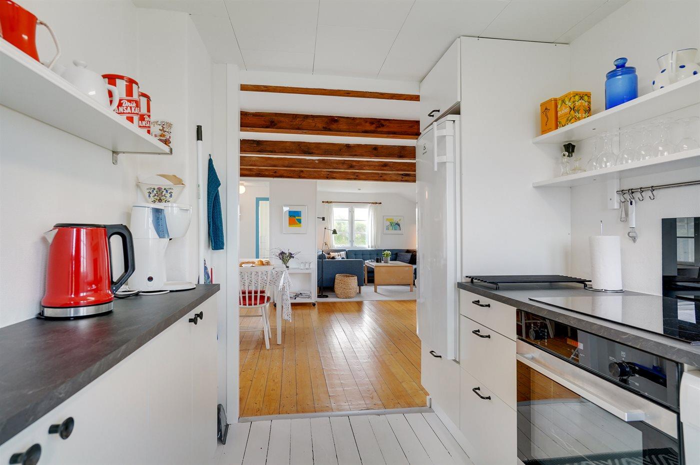 Køkkenet er udstyret med 1 køleskab. Der er 4 induktionskogeplader, bageovn, mikrobølgeovn samt opvaskemaskine.