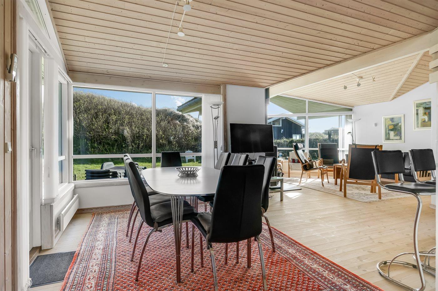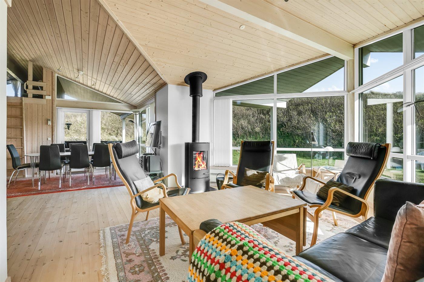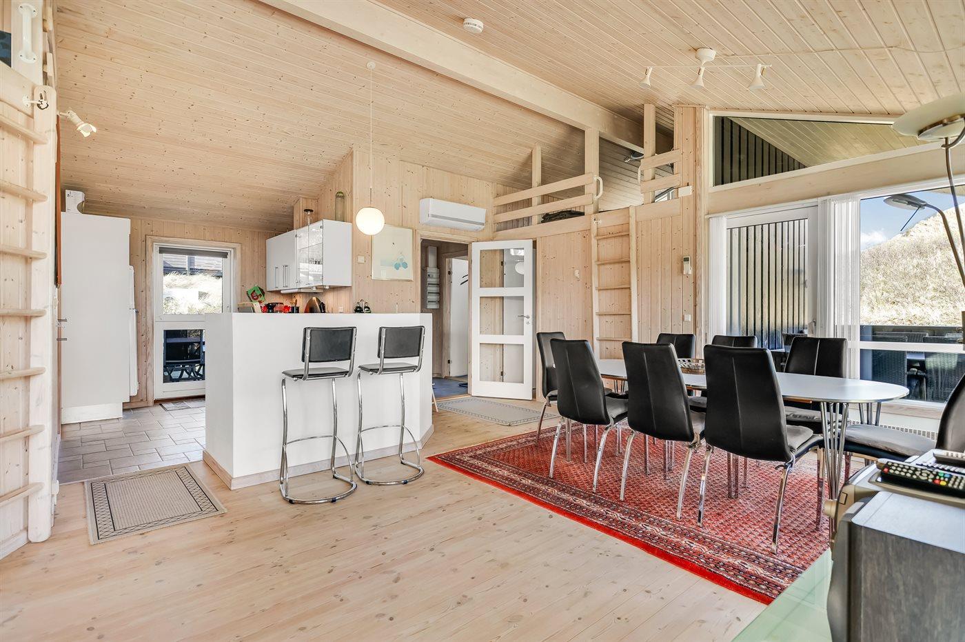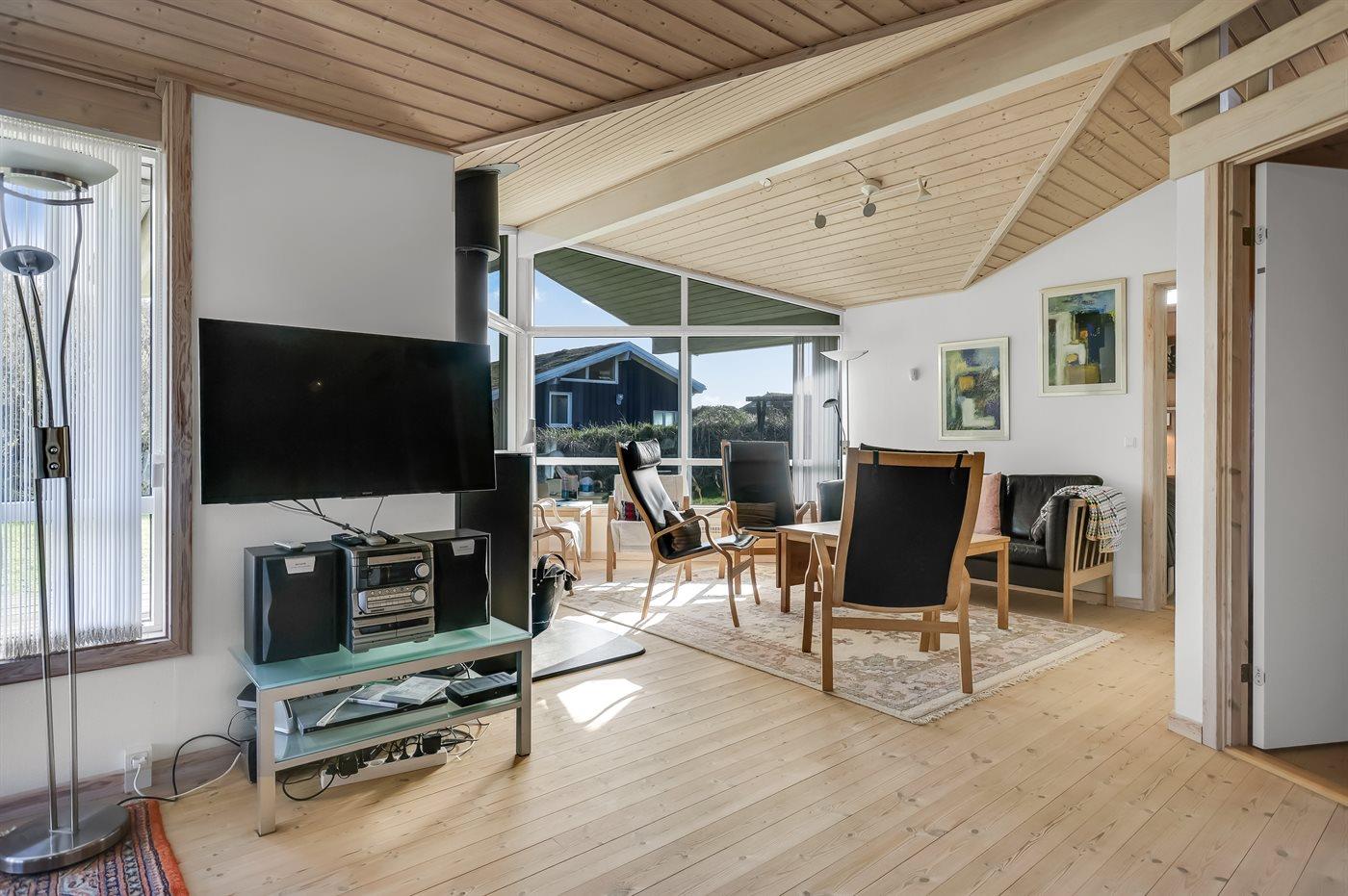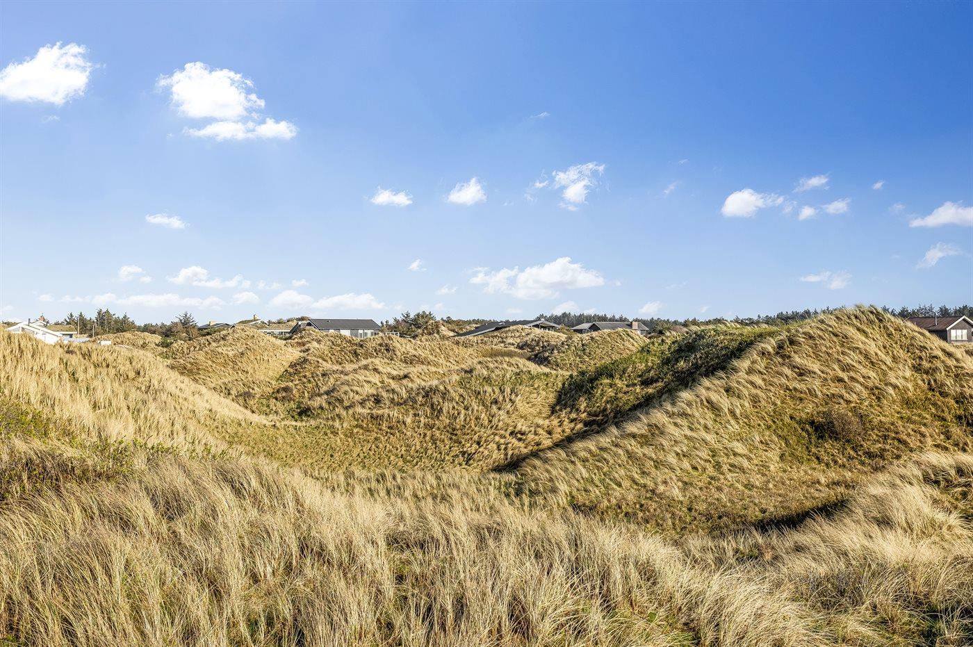 Et skønt sommerhus i træ, opført 2006, beliggende på en dejlig natur- og klitgrund, kun 100 m fra en af Danmarks bedste badestrande. Fra grundens højeste punkt er der en flot udsigt over området og Vesterhavet. Såvel åben som overdækket terrasse.