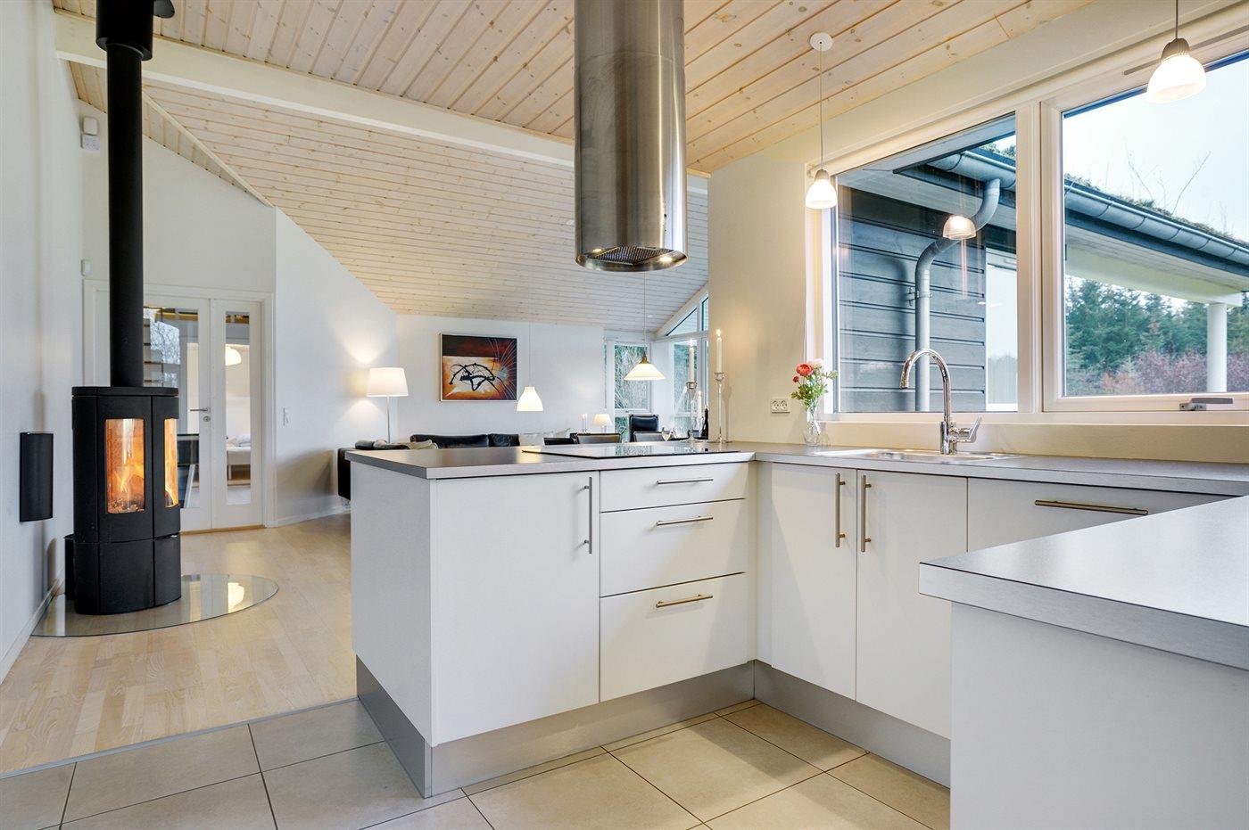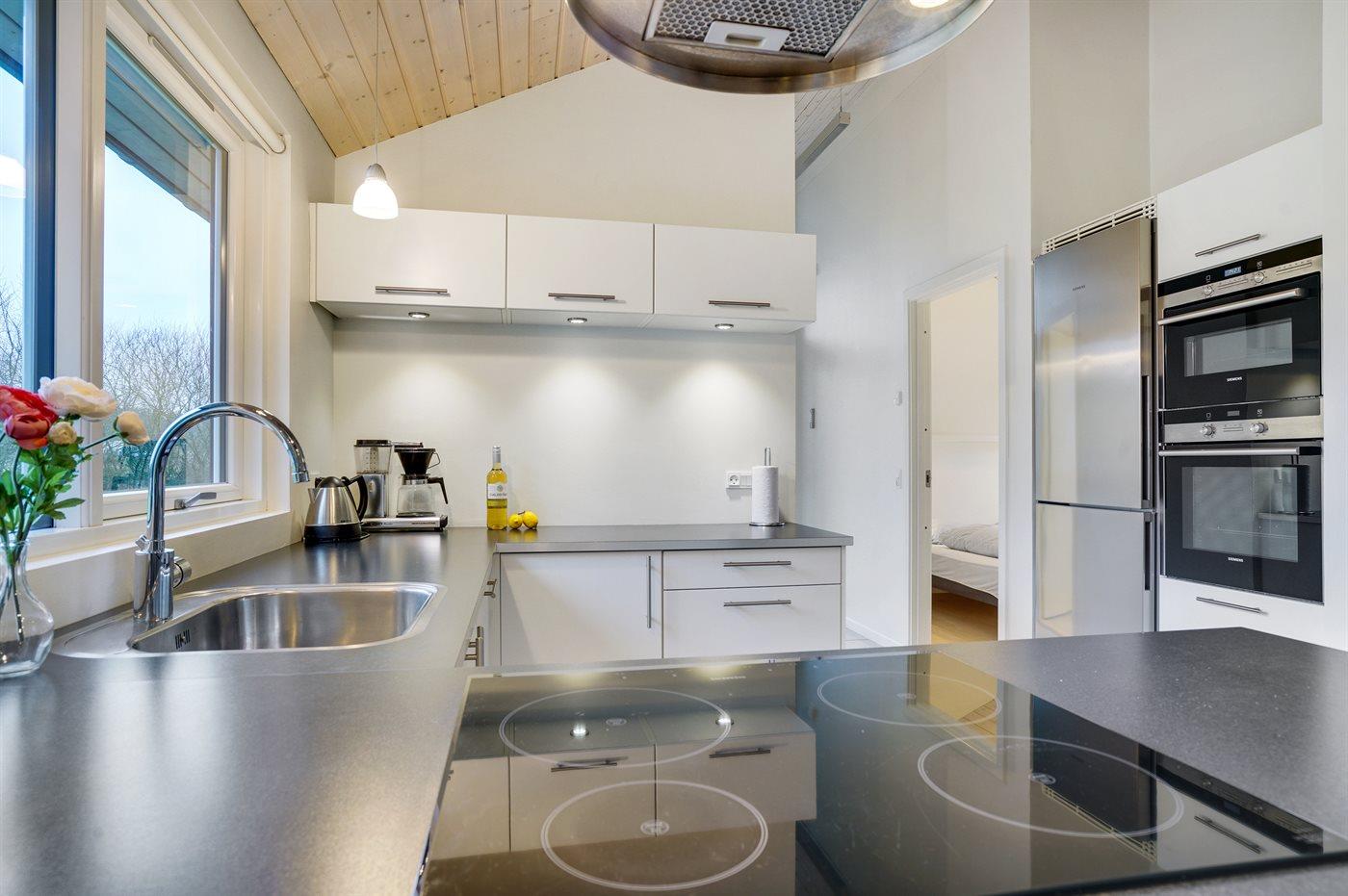 Køkkenet er udstyret med 1 køleskab. Der er 4 keramiske kogeplader, 2 varmluftovne, mikrobølgeovn samt opvaskemaskine.