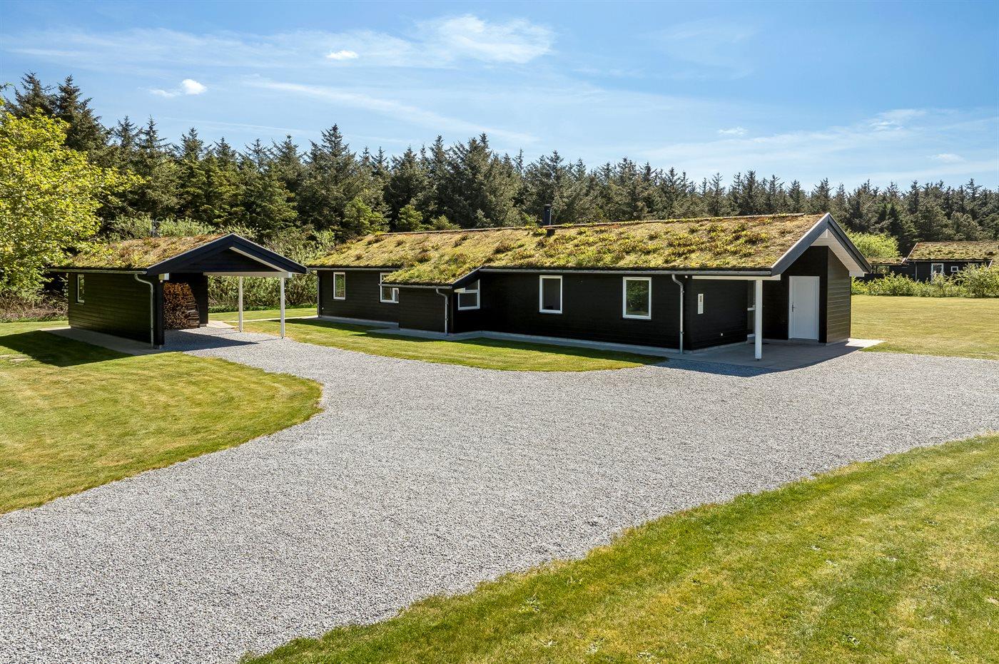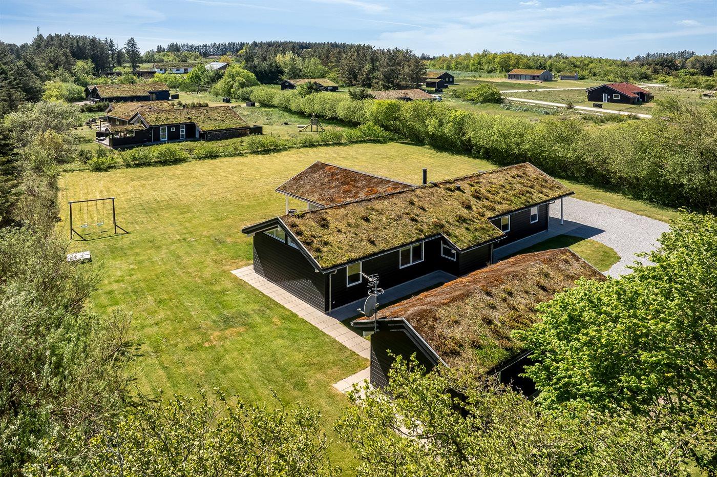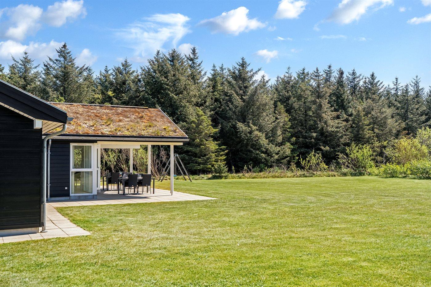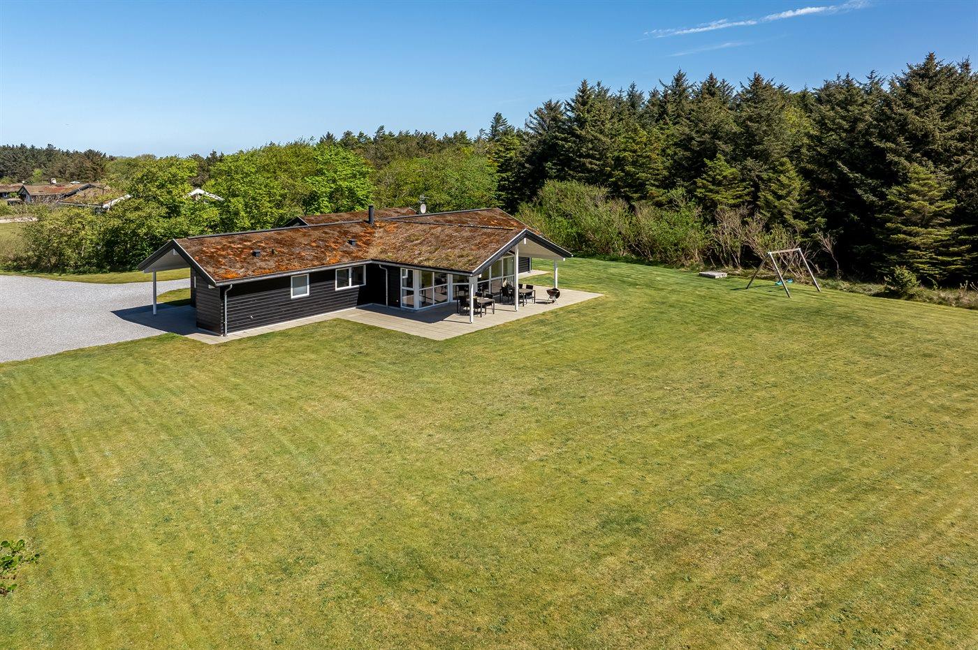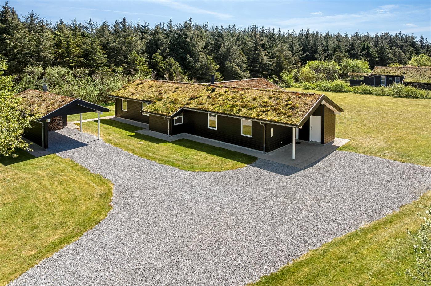 Ferieboligen er beliggende på en 2600 m² stor naturgrund. Der er 1800 m til havet. Nærmeste forretning er beliggende i en afstand af 1500 m. Til ferieboligen hører 35 m² terrasseareal. Desuden er der 35 m² overdækket terrasse. Der er redskabsrum. Sandkasse. Der er carport til rådighed. Parkering ved ferieboligen.