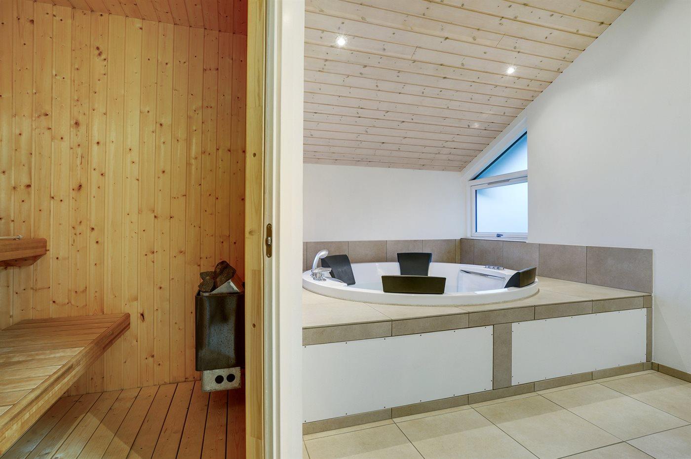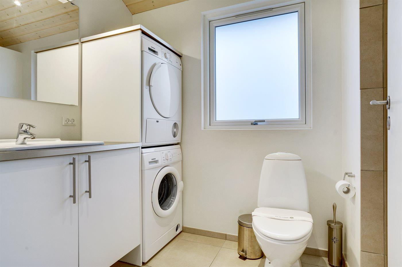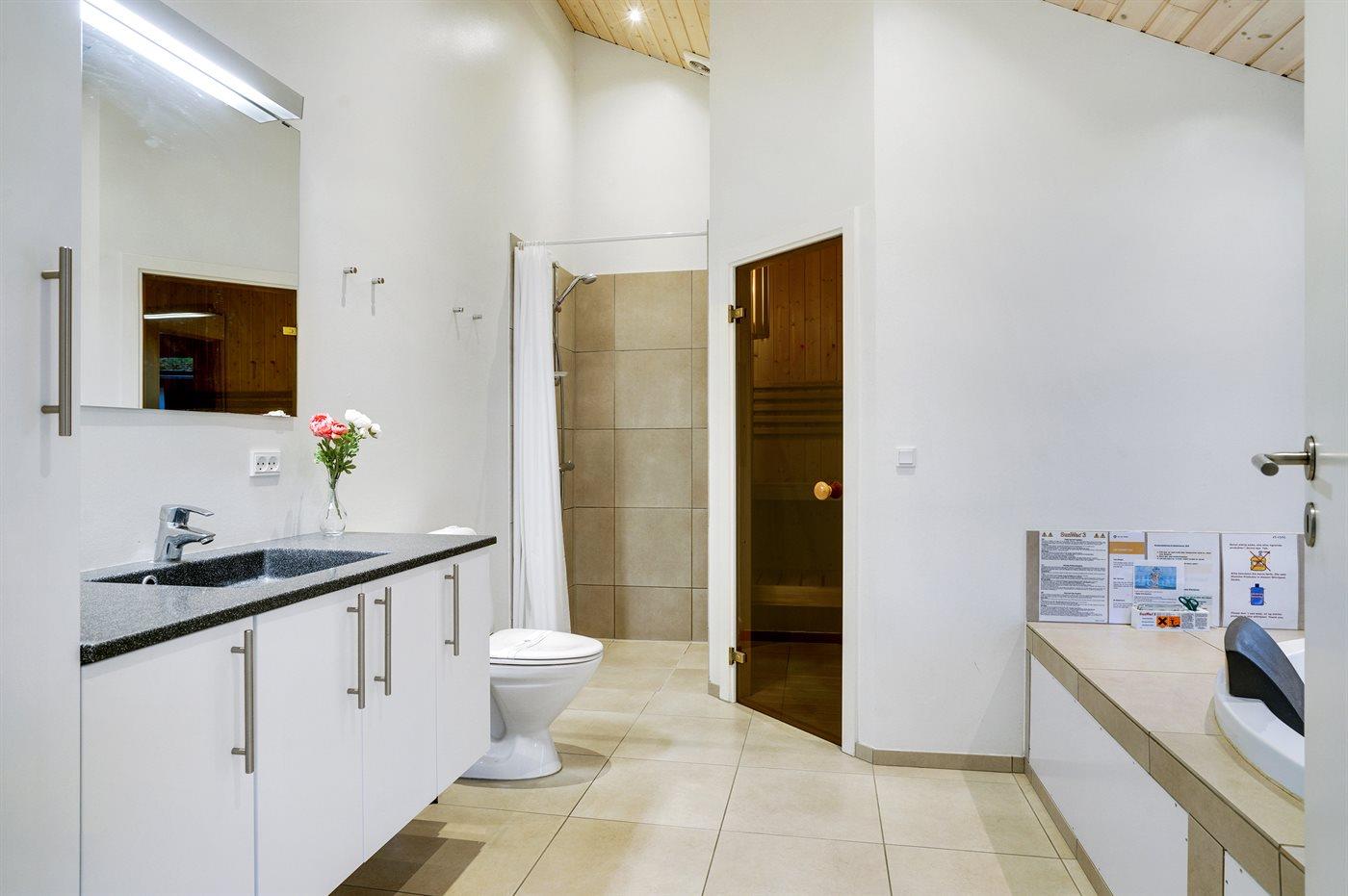 Der er 2 badeværelser med bruseniche og 2 toiletter I saunaen er der mulighed for afslapning.
