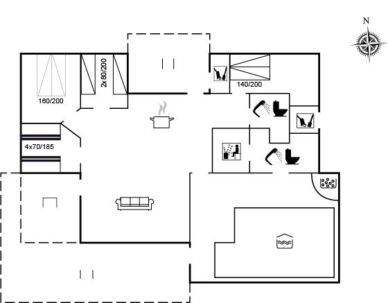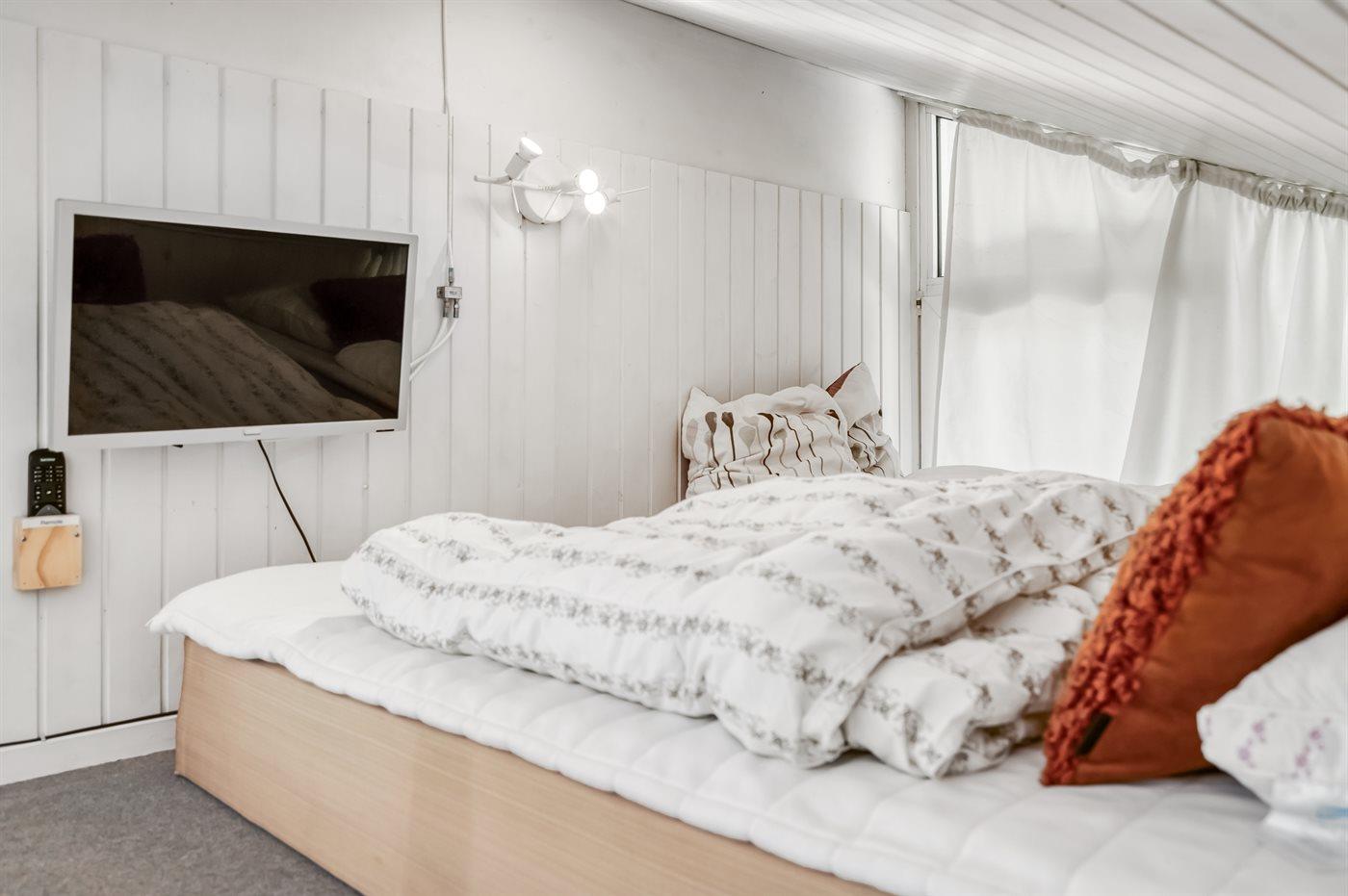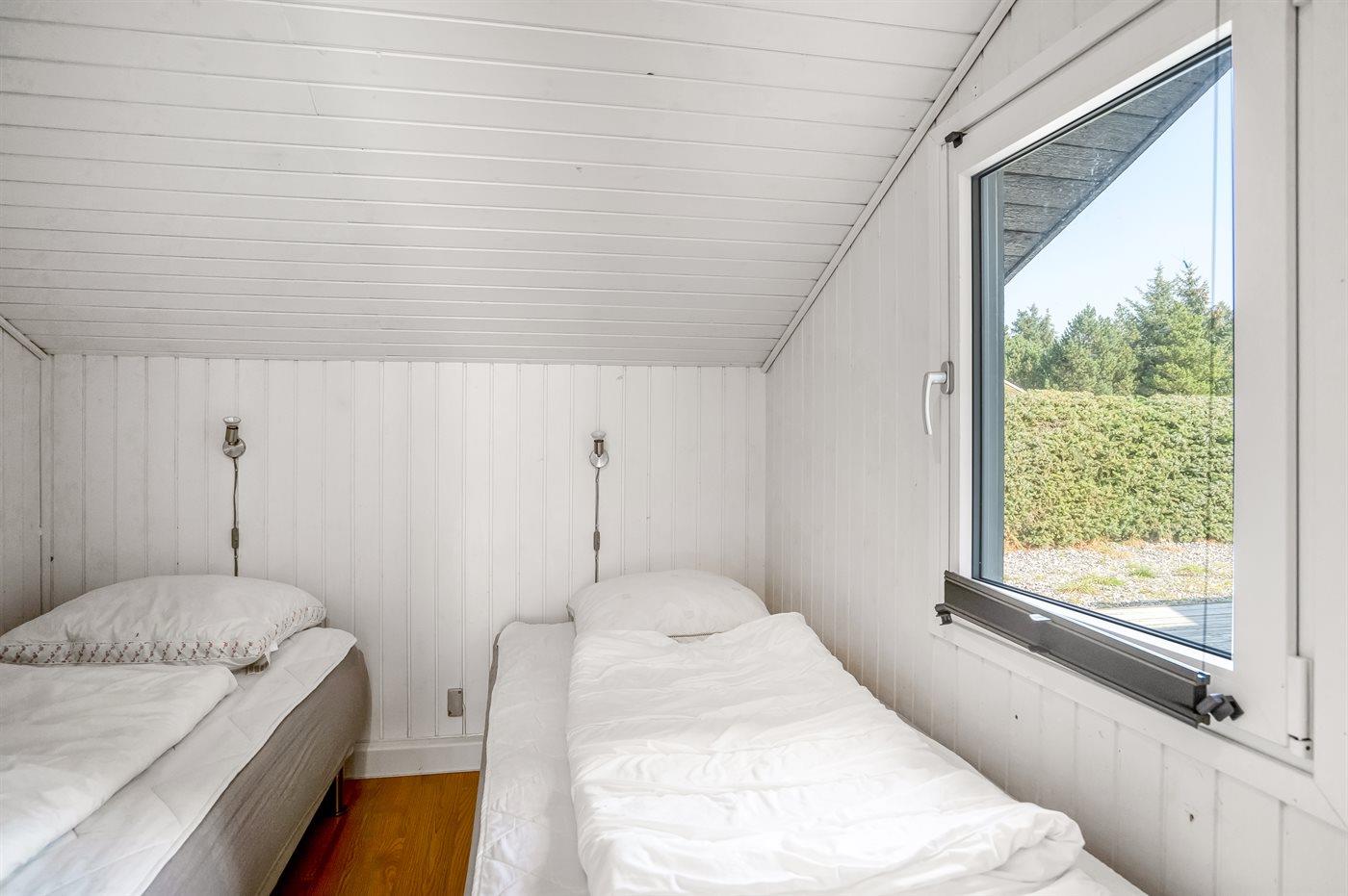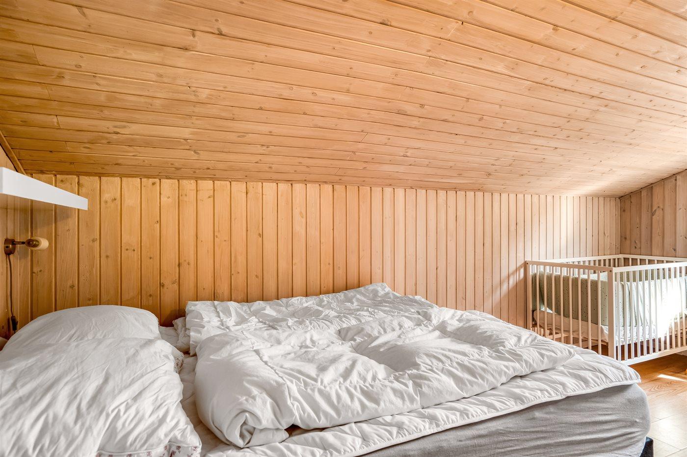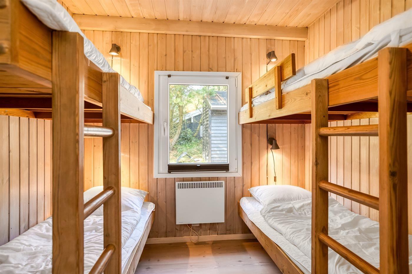 Der er i alt 4 soveværelser. Sovepladserne fordeler sig på: 4 sovepladser i dobbeltsenge. 2 sovepladser i enkeltsenge. 4 sovepladser i køjesenge. Derudover er der 1 stk. barneseng.