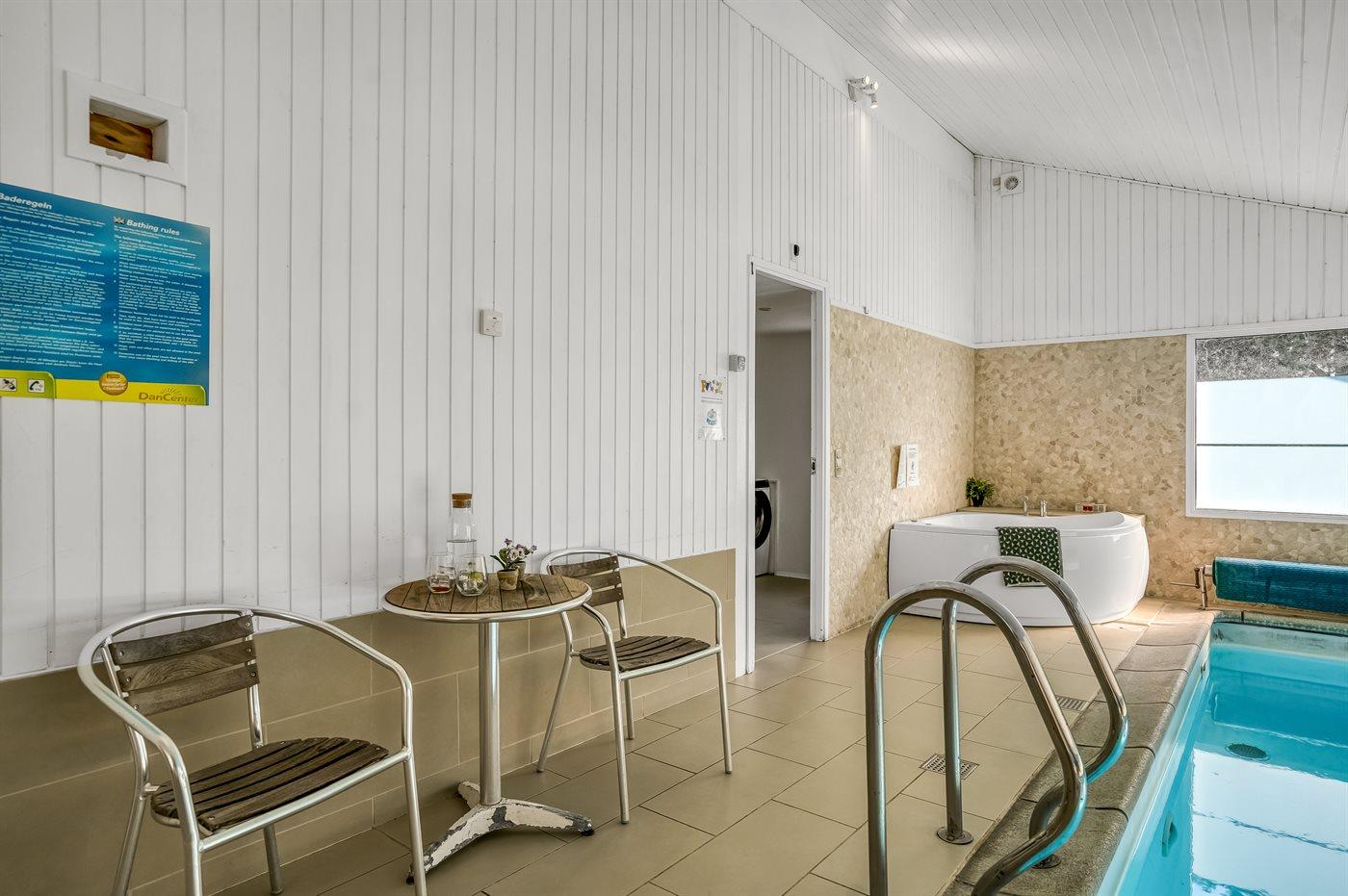 I den indendørs swimmingpool er der mulighed for leg og hyggeligt samvær. Swimmingpoolen måler op til 3,5 m i bredden, 5 m i længden og den er op til 1,4 m dyb. Vandet er mellem 24 og 28° C varmt. Swimmingpoolen har modstrømsanlæg. Der er gulvvarme i swimmingpoolområdet.