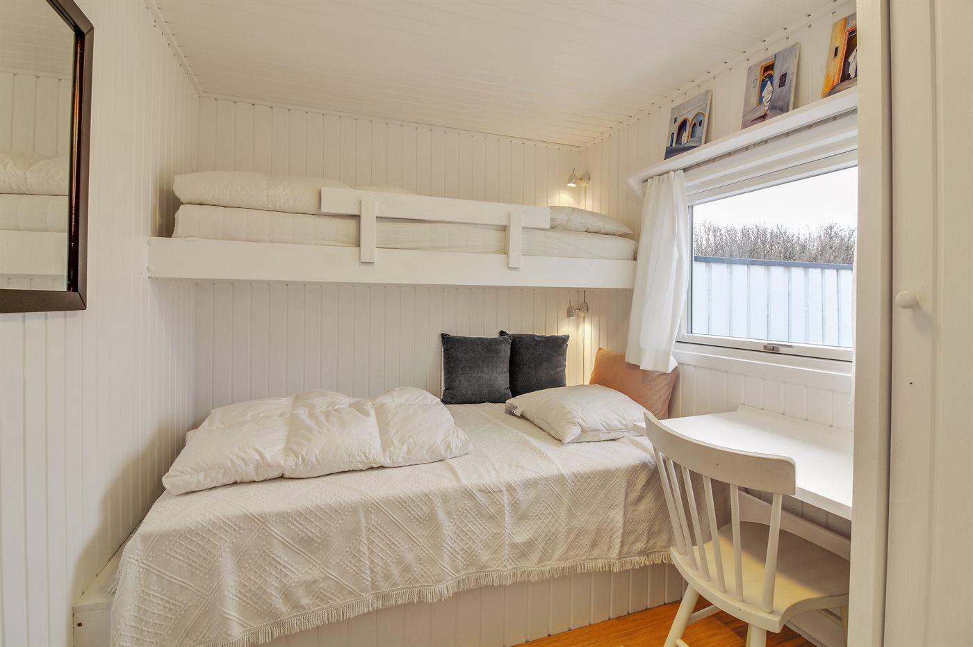 Der er i alt 4 soveværelser. Sovepladserne fordeler sig på: 4 sovepladser i dobbeltsenge. 4 sovepladser i køjesenge.
