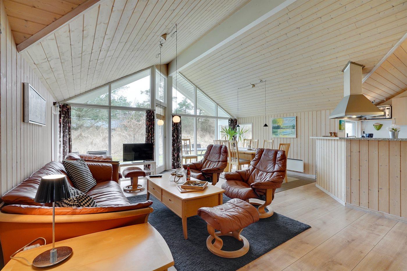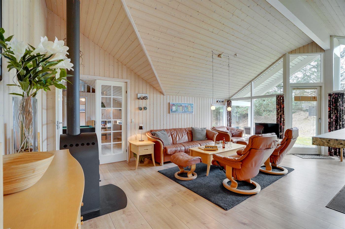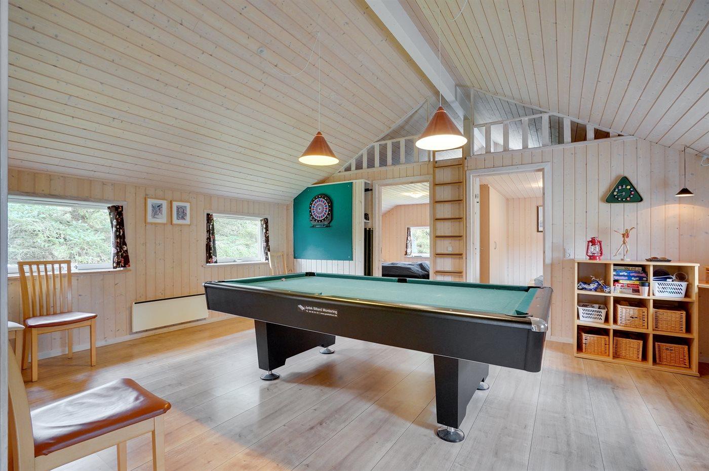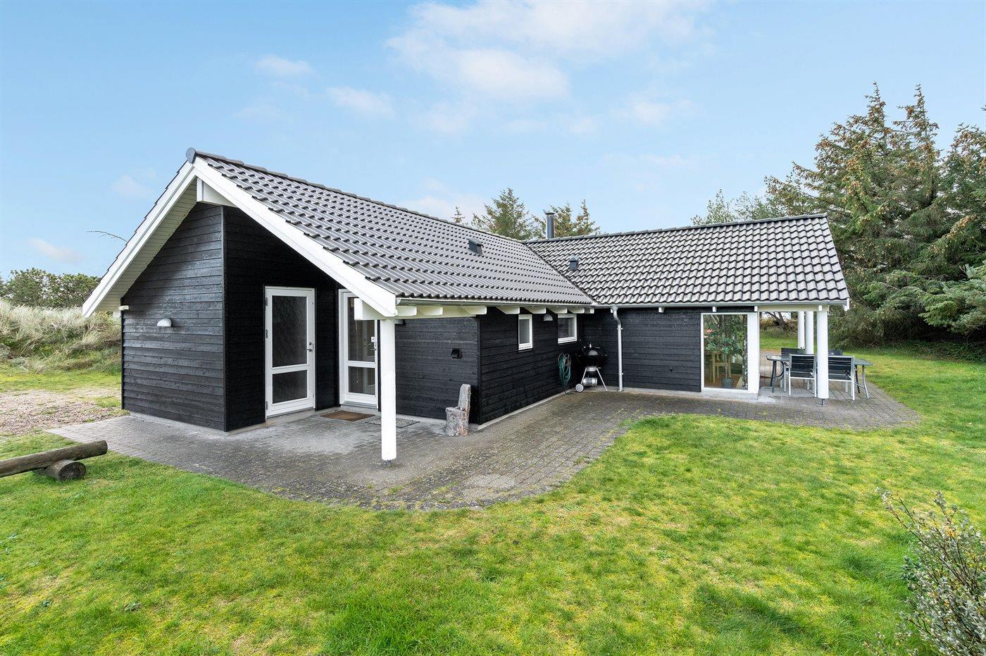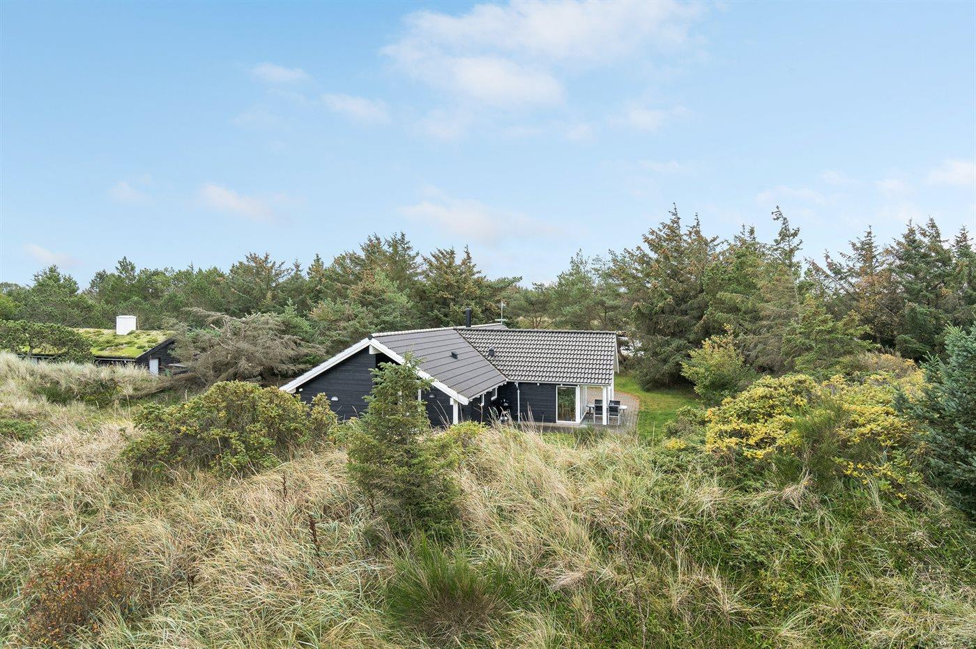 Dejligt sommerhus med aktivitetsrum beliggende på en dejlig lukket naturgrund i et af de naturskønneste områder langs den jyske vestkyst mellem Blokhus og Løkken. Bemærk: Huset er indrettet med hems, hvor 2 af sovepladserne befinder sig.