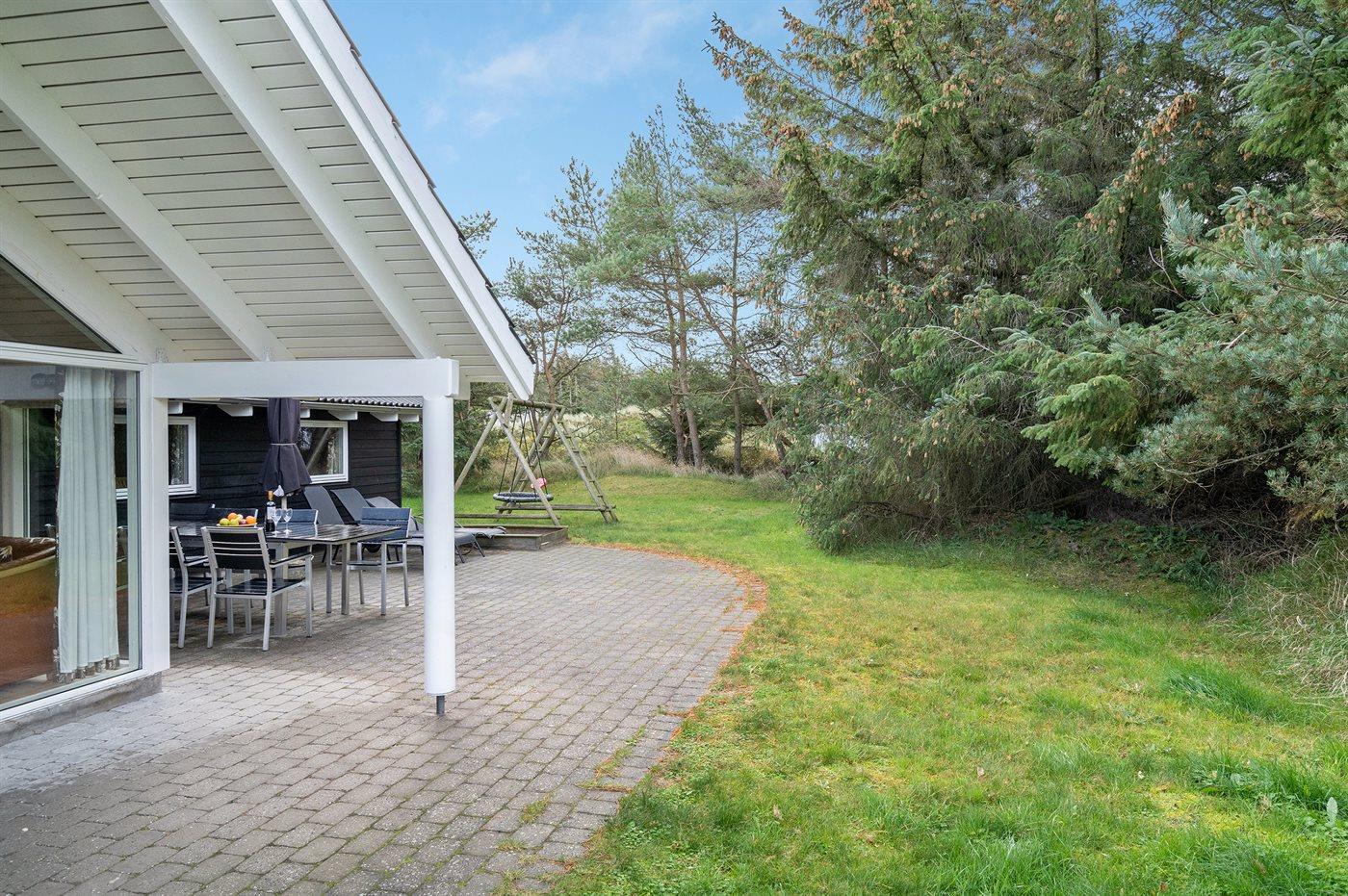 Ferieboligen er beliggende på en 1362 m² stor naturgrund. Der er 650 m til havet. Nærmeste forretning er beliggende i en afstand af 1200 m. Til ferieboligen hører 96 m² terrasseareal. Desuden er der 10 m² overdækket terrasse. Gynge. Sandkasse. Grill til rådighed. Der er installeret stik til opladning af elbil.