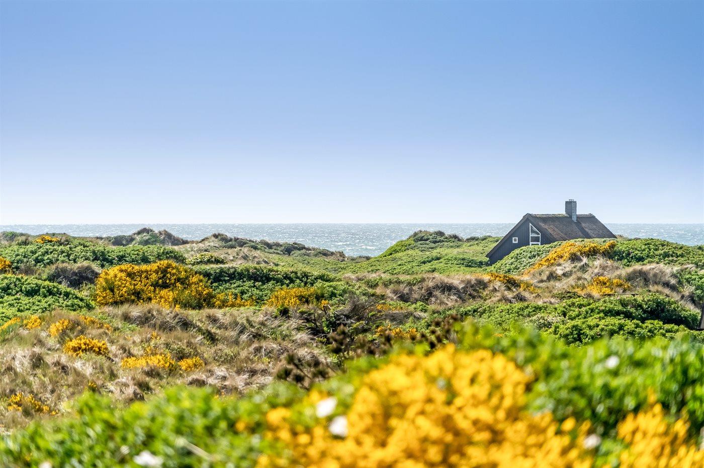 Ældre sommerhus med en fantastisk beliggenhed på en meget stor kuperet grund med skøn udsigt til havet og det omkringliggende klitlandskab fra såvel hus som grund. Huset ligger i rolige og naturskønne omgivelser lige op til et fredet naturareal, på en lukket vej, med god afstand til de nærmeste naboer.