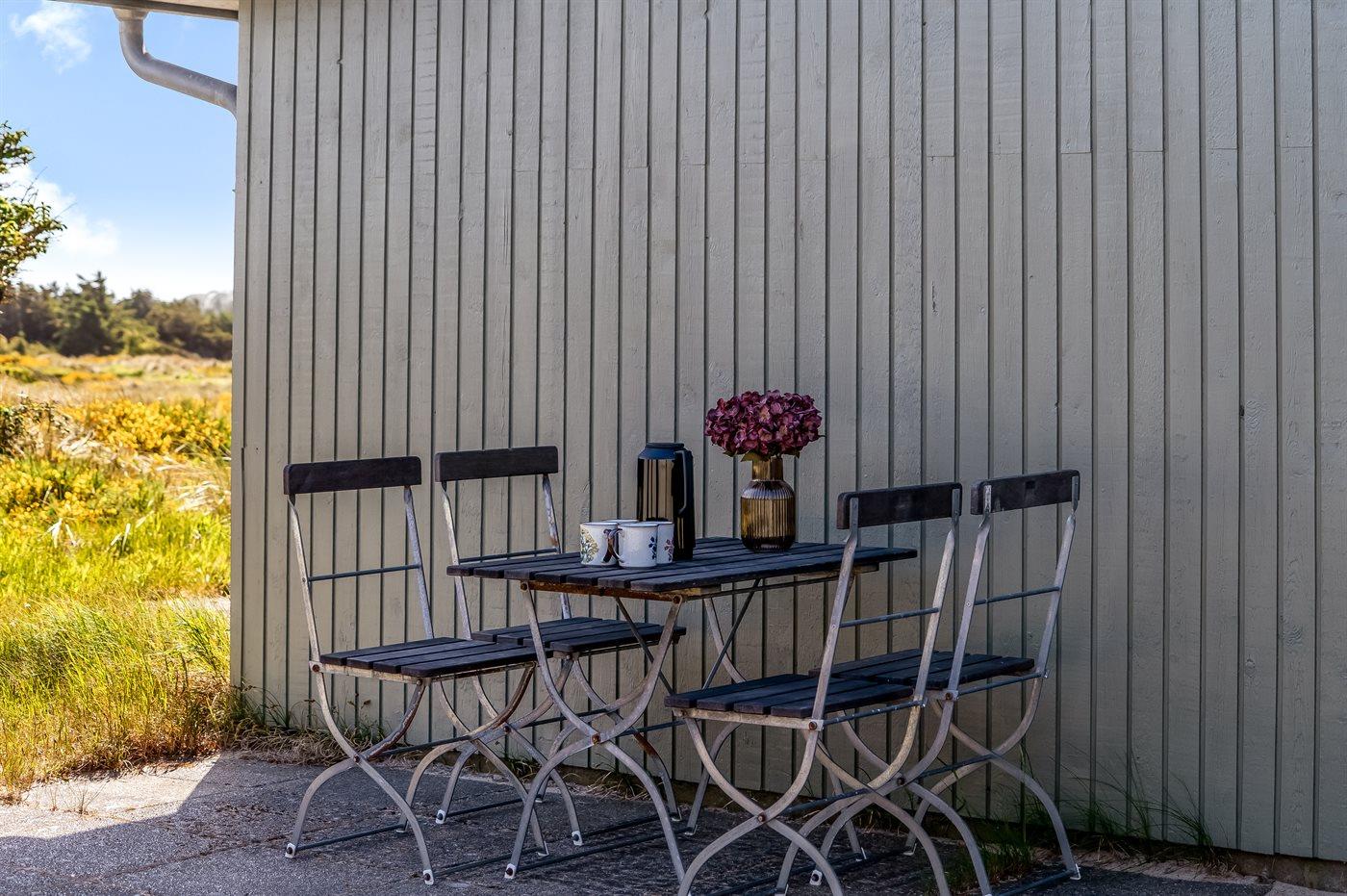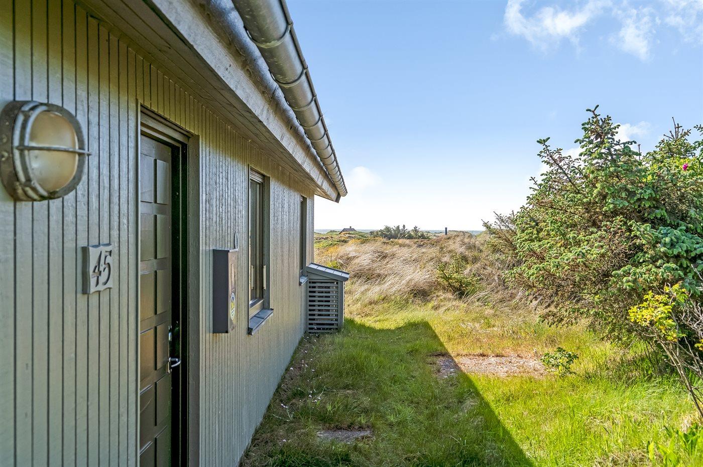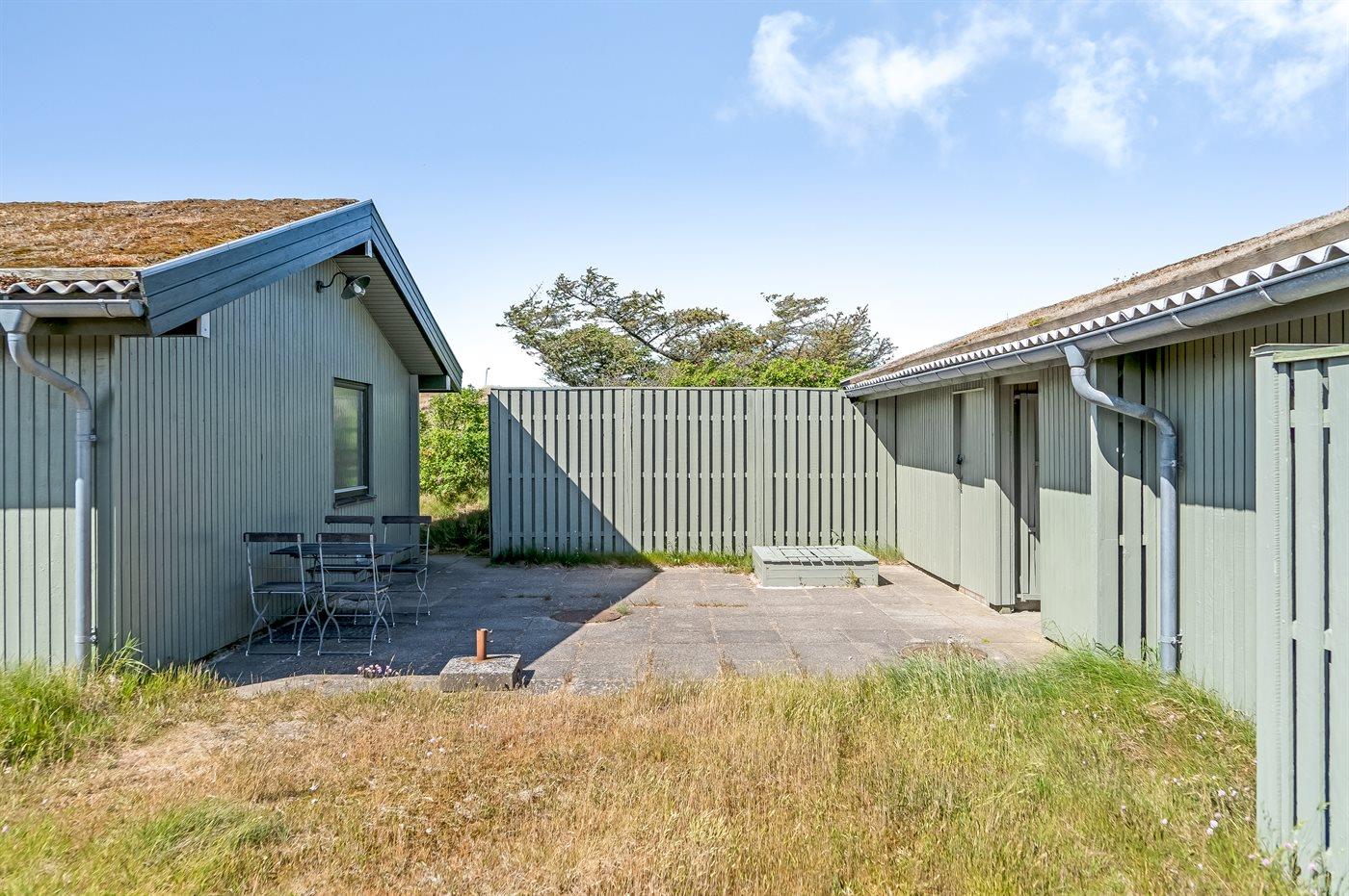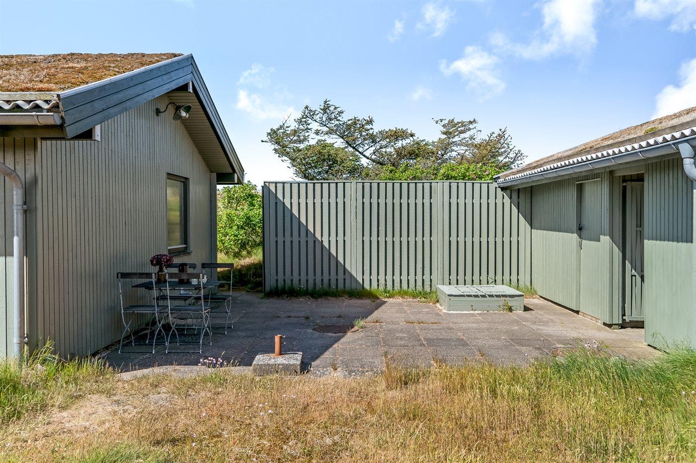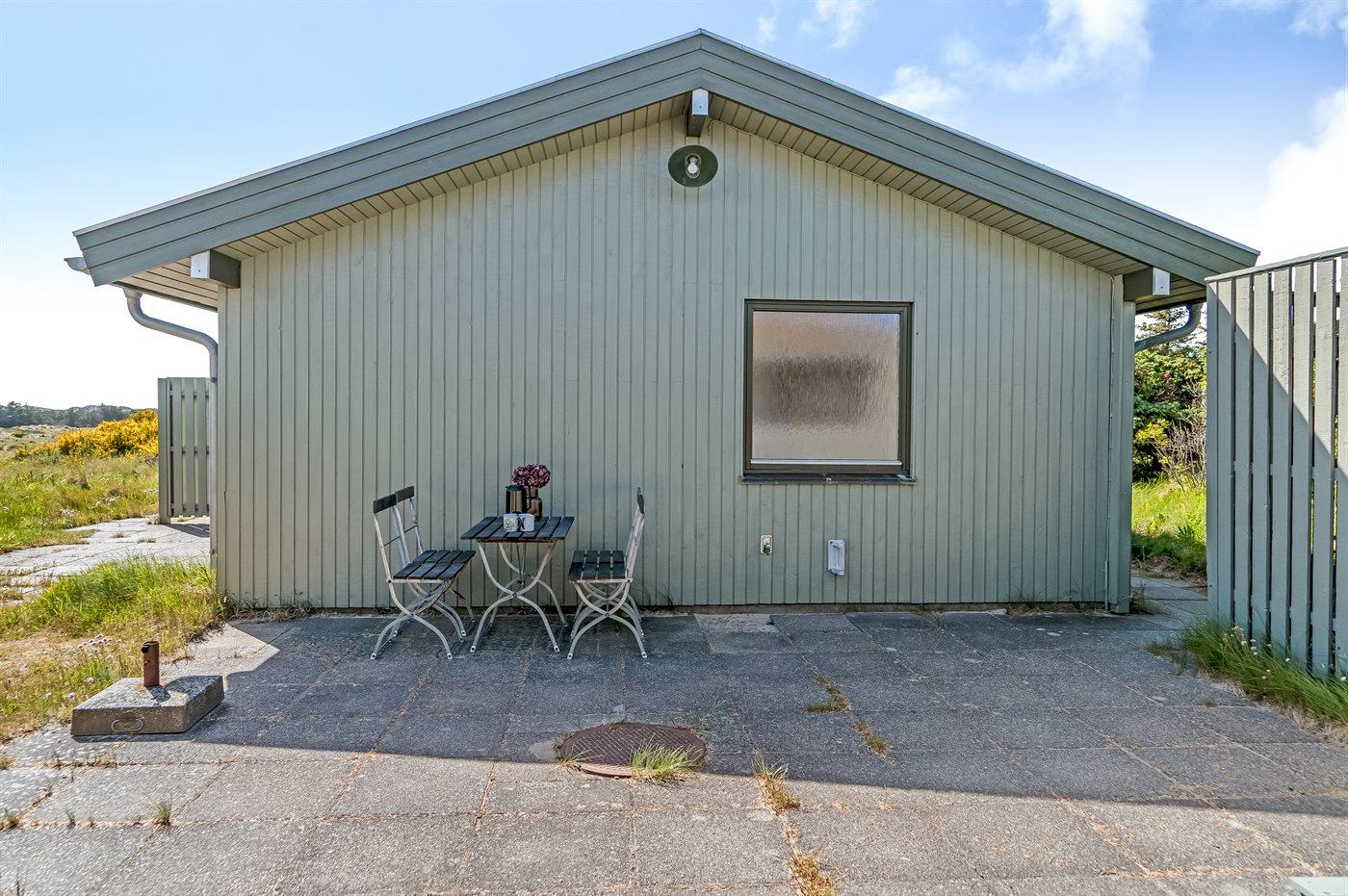Ferieboligen er beliggende på en 3185 m² stor klitgrund. Der er 350 m til havet. Nærmeste forretning er beliggende i en afstand af 2500 m. Til ferieboligen hører 86 m² terrasseareal. Der er redskabsrum. Sandkasse. Der er carport til rådighed. Parkering ved ferieboligen.