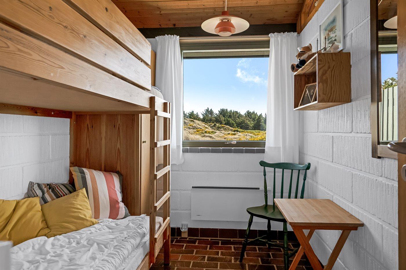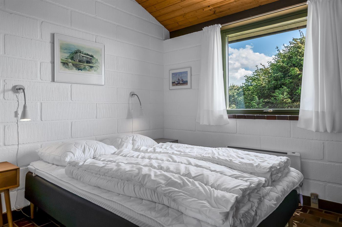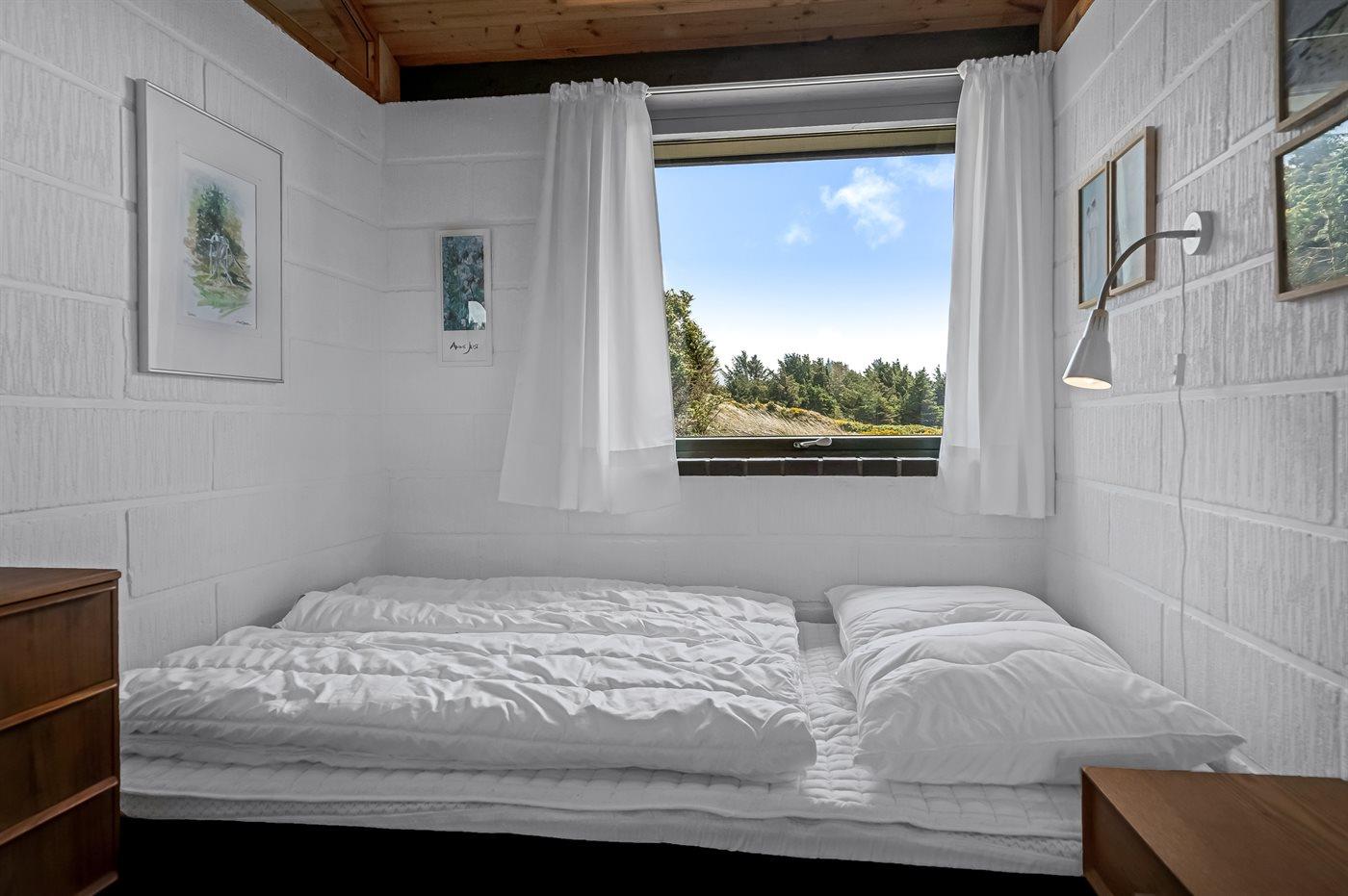 Der er i alt 3 soveværelser. Sovepladserne fordeler sig på: 2 sovepladser i dobbeltseng. 2 sovepladser i køjeseng. 1 soveplads i sovesofa (enkelt). Derudover er der 1 stk. barneseng.