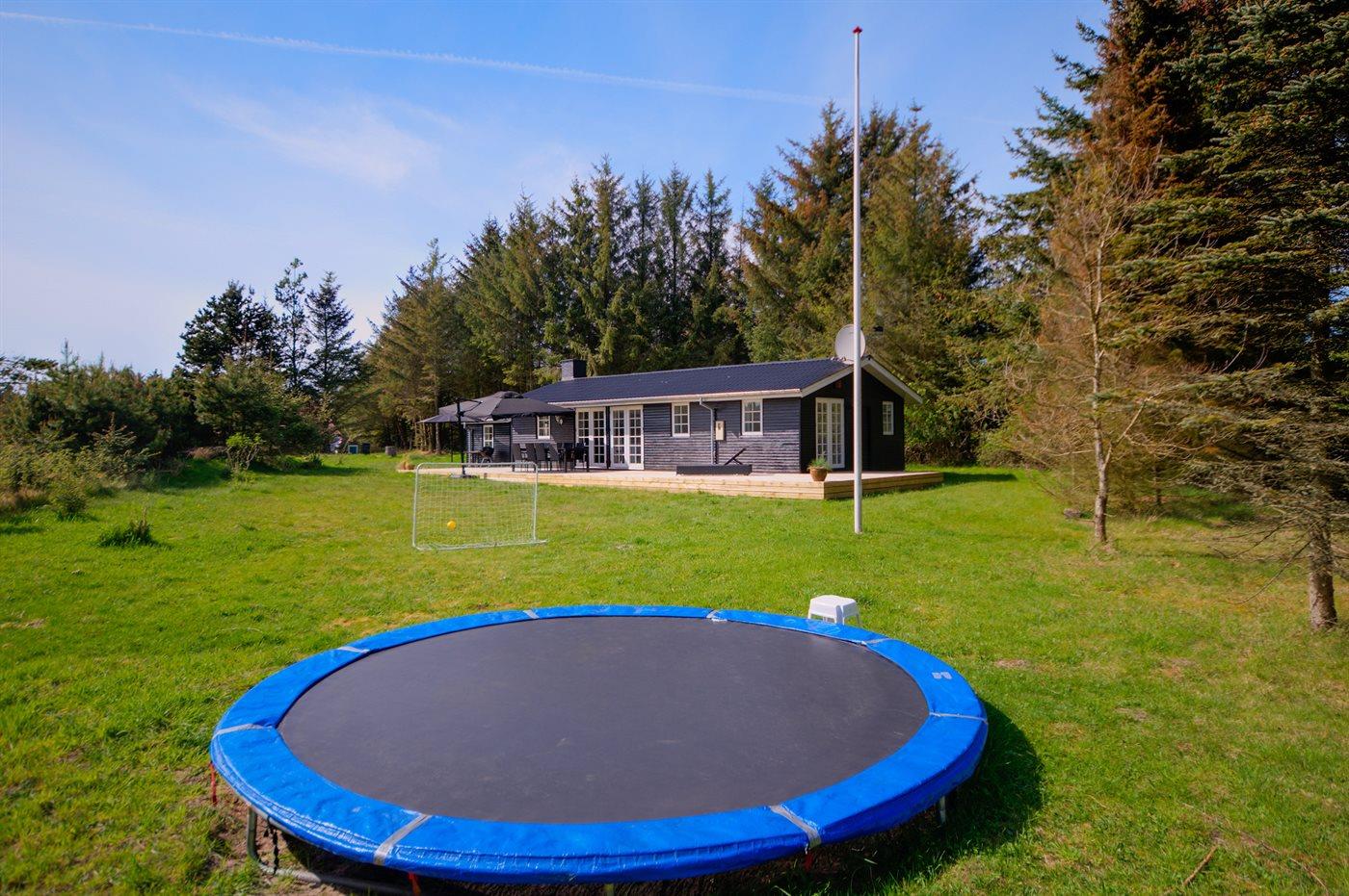 Ferieboligen er beliggende på en 2130 m² stor naturgrund. Der er 1200 m til havet. Nærmeste forretning er beliggende i en afstand af 2000 m. Til ferieboligen hører 55 m² terrasseareal. Trampolin. Parkering ved ferieboligen.