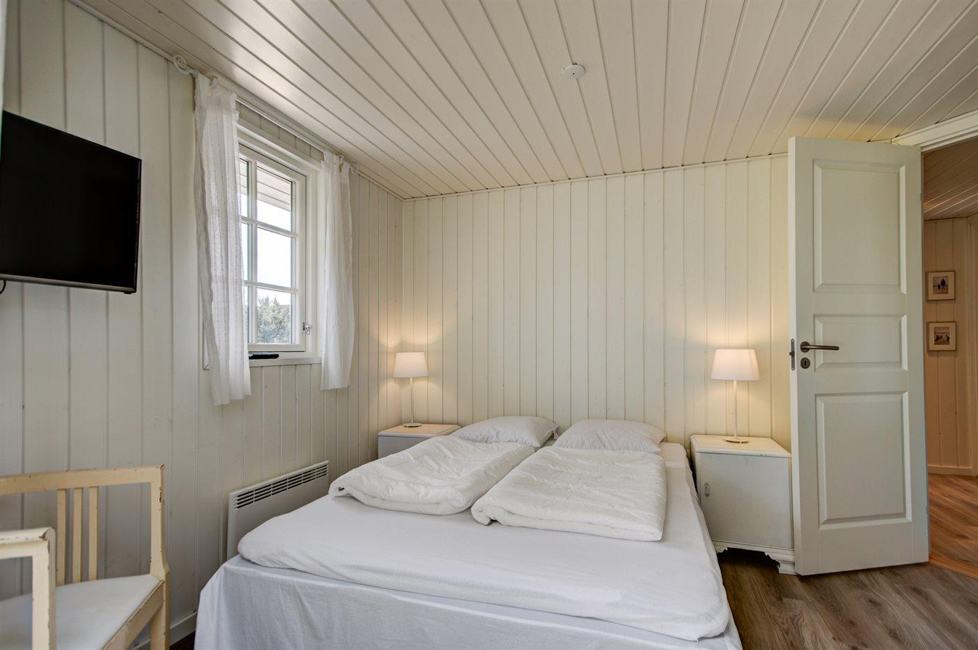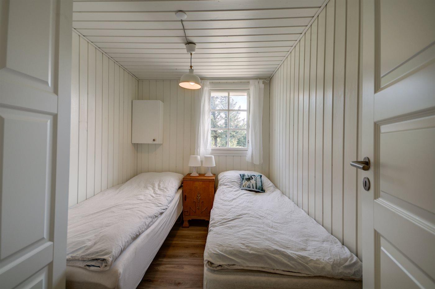 Der er i alt 5 soveværelser. Sovepladserne fordeler sig på: 4 sovepladser i dobbeltsenge. 3 sovepladser i enkeltsenge. 3 sovepladser i køjesenge. 2 af disse sovepladser befinder sig i et anneks. Derudover er der 1 stk. barneseng.