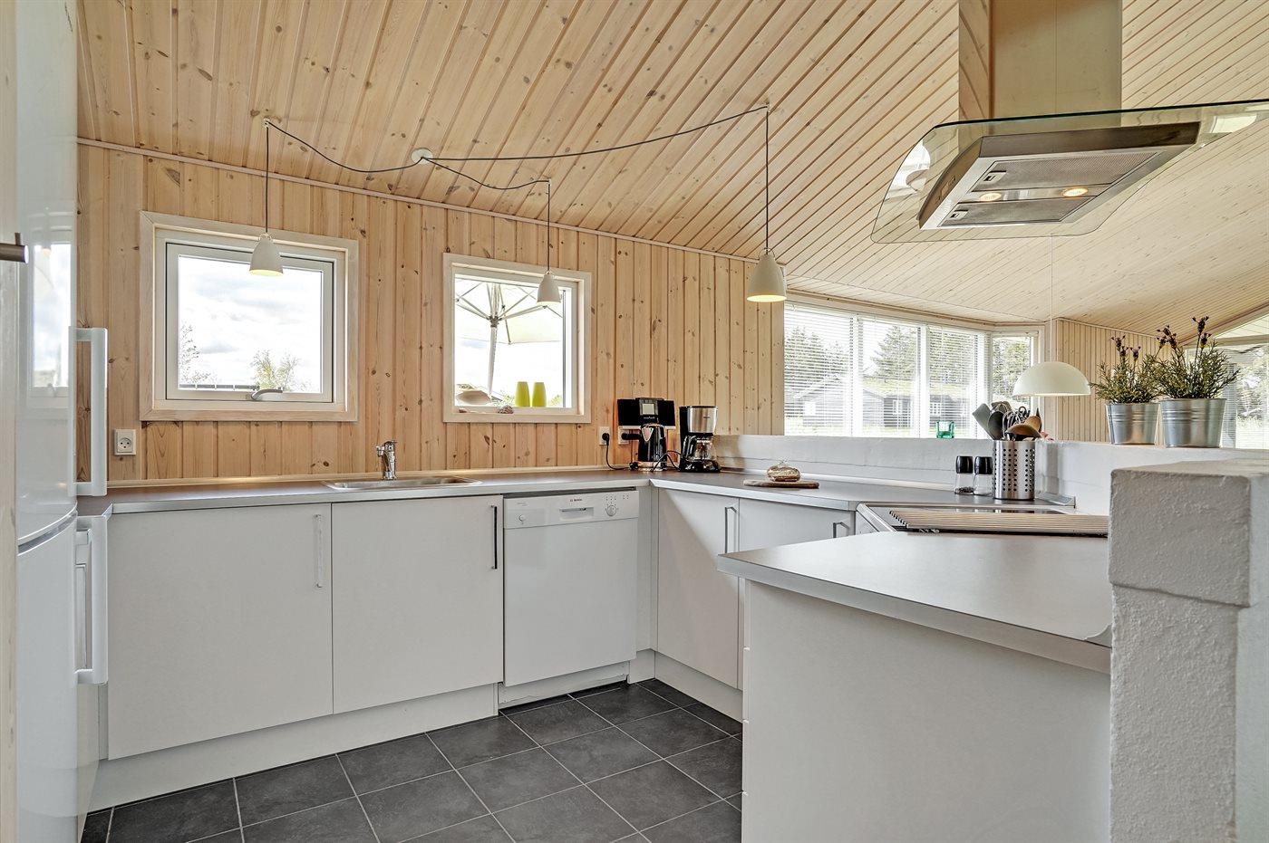 Køkkenet er udstyret med 1 køleskab. Der er 4 keramiske kogeplader, varmluftovn, mikrobølgeovn samt opvaskemaskine.