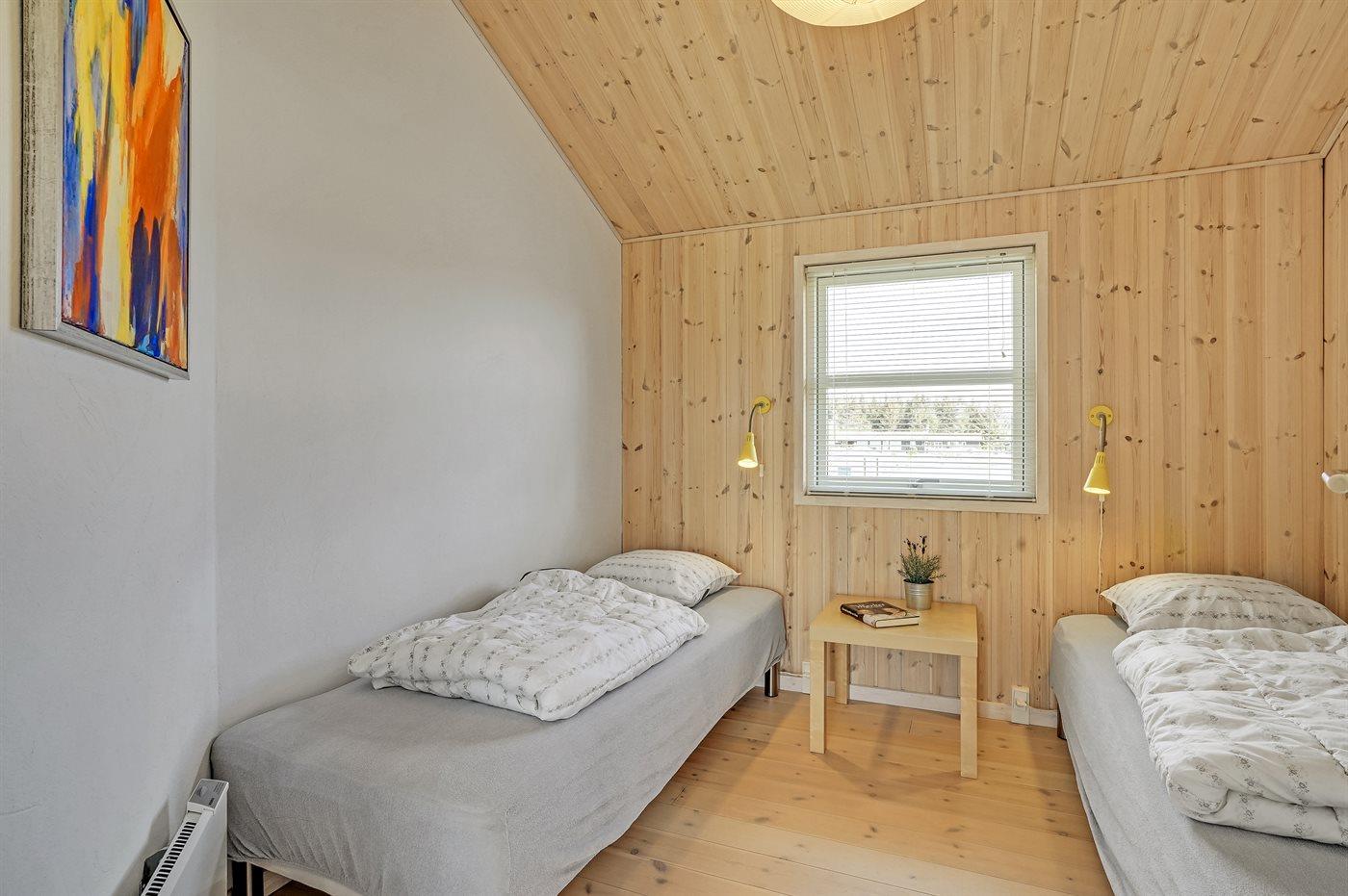 Der er i alt 4 soveværelser. Sovepladserne fordeler sig på: 4 sovepladser i dobbeltsenge. 4 sovepladser i enkeltsenge. Derudover er der 1 stk. barneseng.