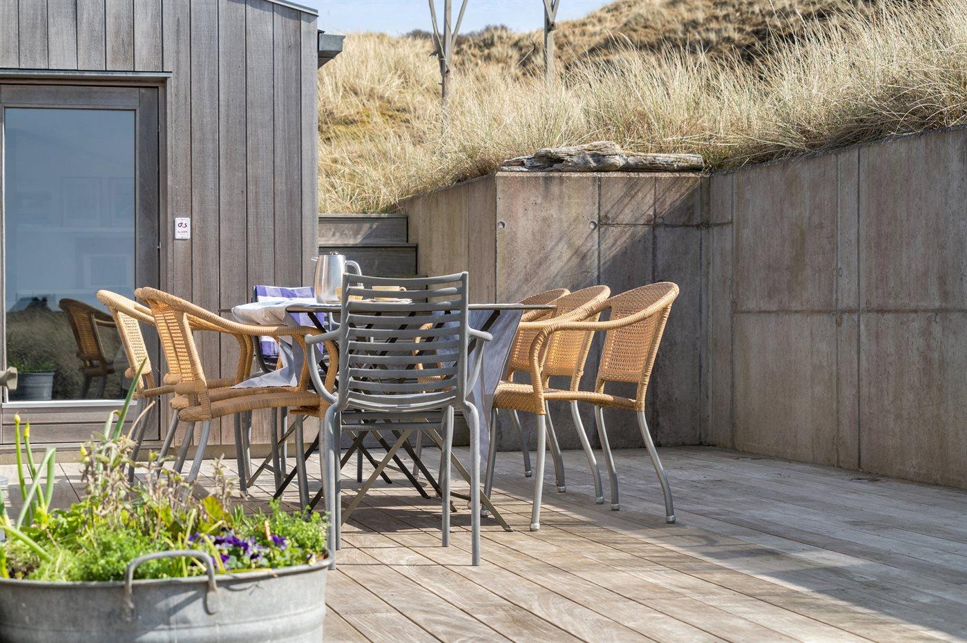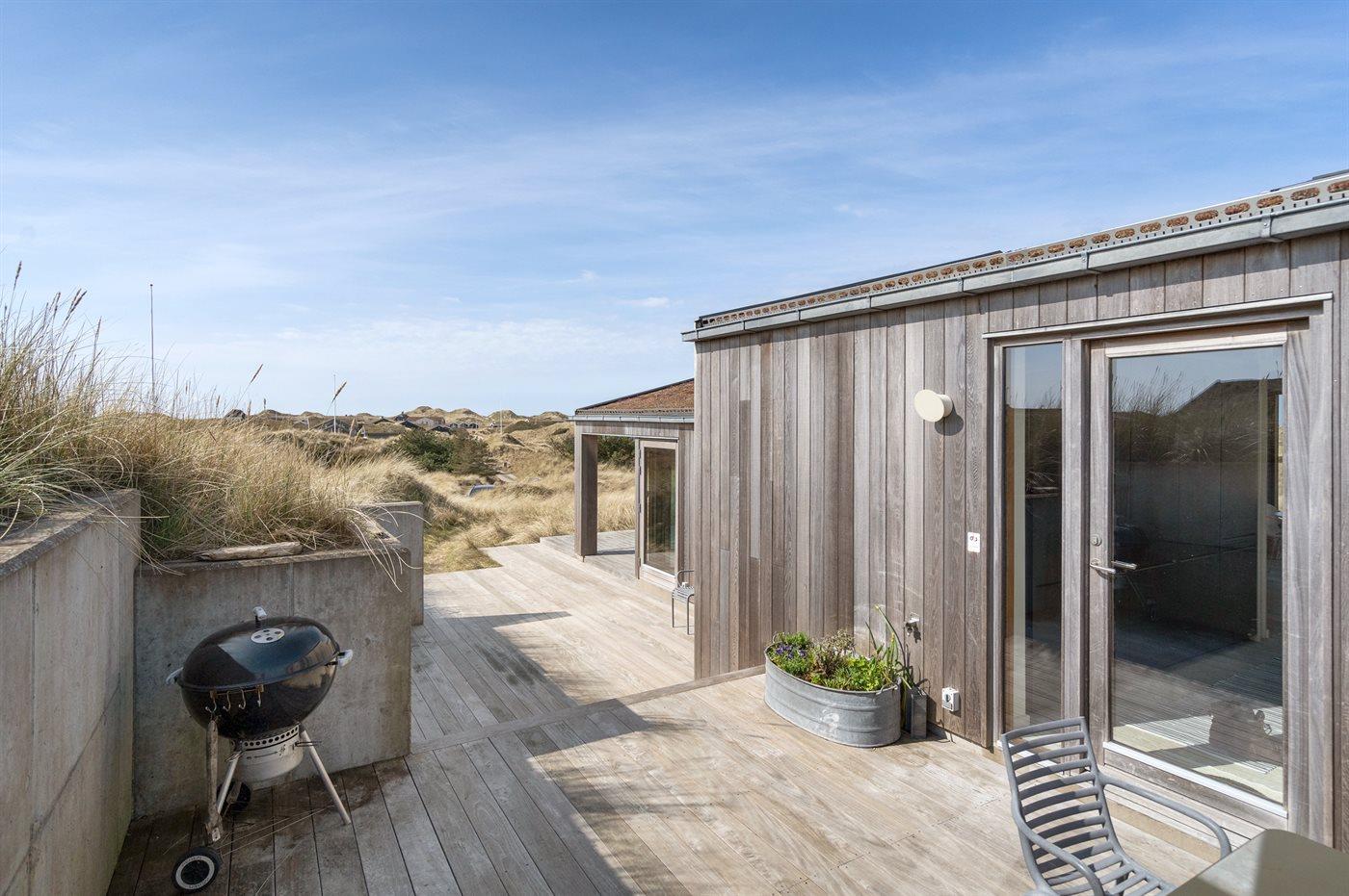 Ferieboligen er beliggende på en 3563 m² stor klitgrund. Der er 400 m til havet. Nærmeste forretning er beliggende i en afstand af 3500 m. Til ferieboligen hører 110 m² terrasseareal. Desuden er der 10 m² overdækket terrasse. Der er redskabsrum. Grill til rådighed. Parkering ved ferieboligen.